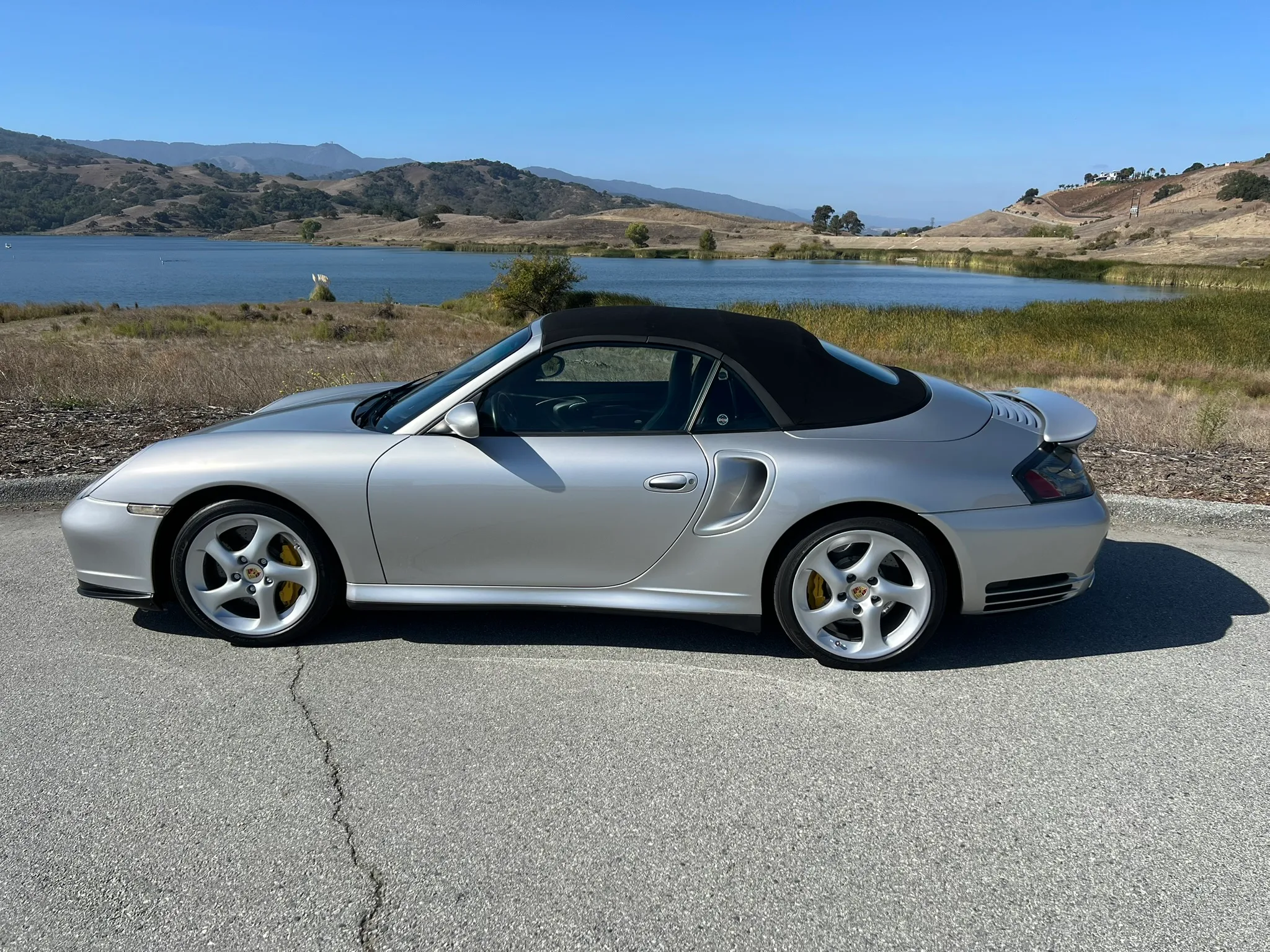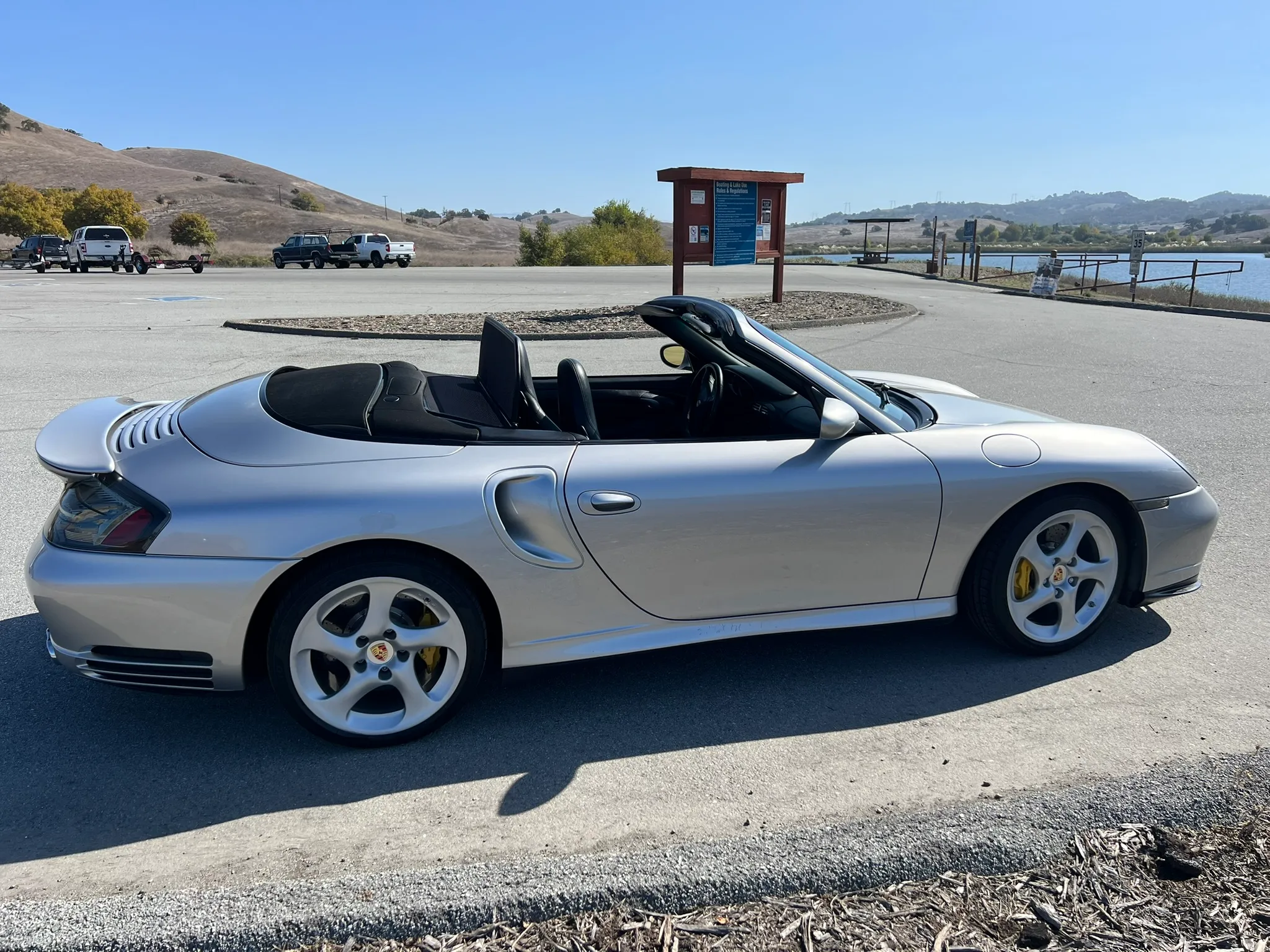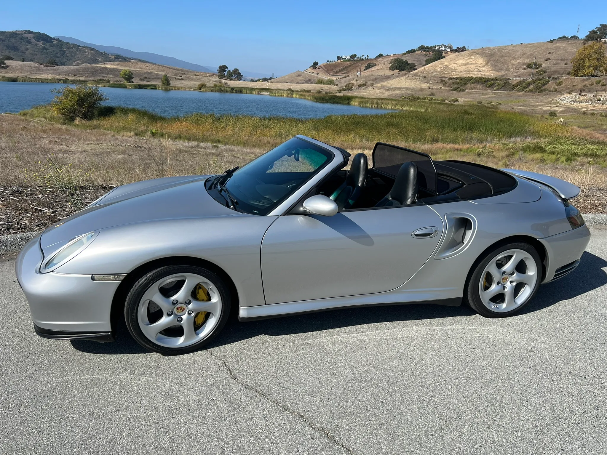 This 996 Turbo cabriolet has 92k miles and is offered with a car cover, manufacturer’s literature, service records, a Carfax report, and a clean California title in the seller’s name.
