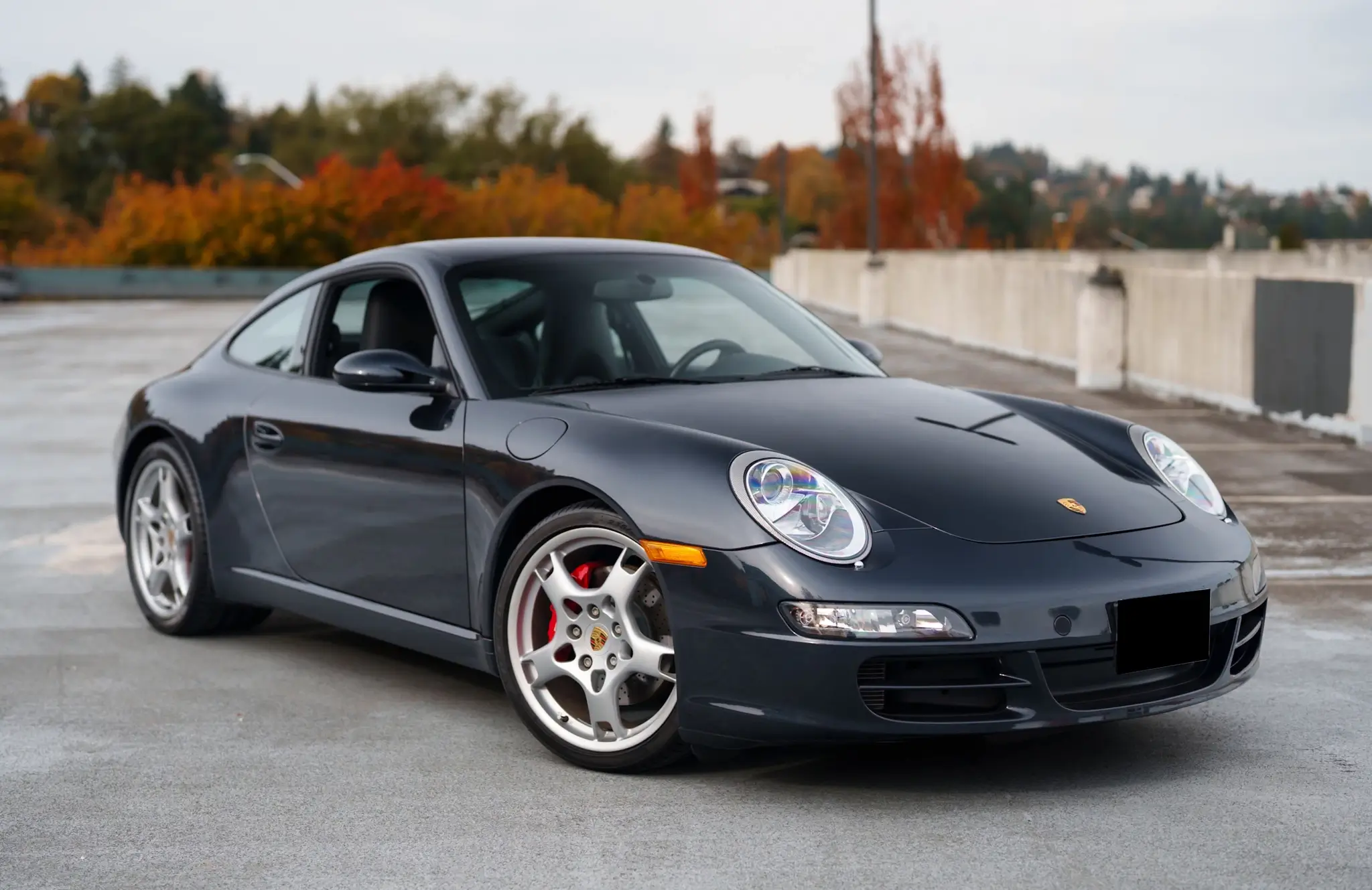 This inaugural-year Porsche 997 Carrera S Coupe is finished in Atlas Grey Metallic over Black full leather and pairs a 6-speed manual transmission with its 3.8-liter flat-six engine.