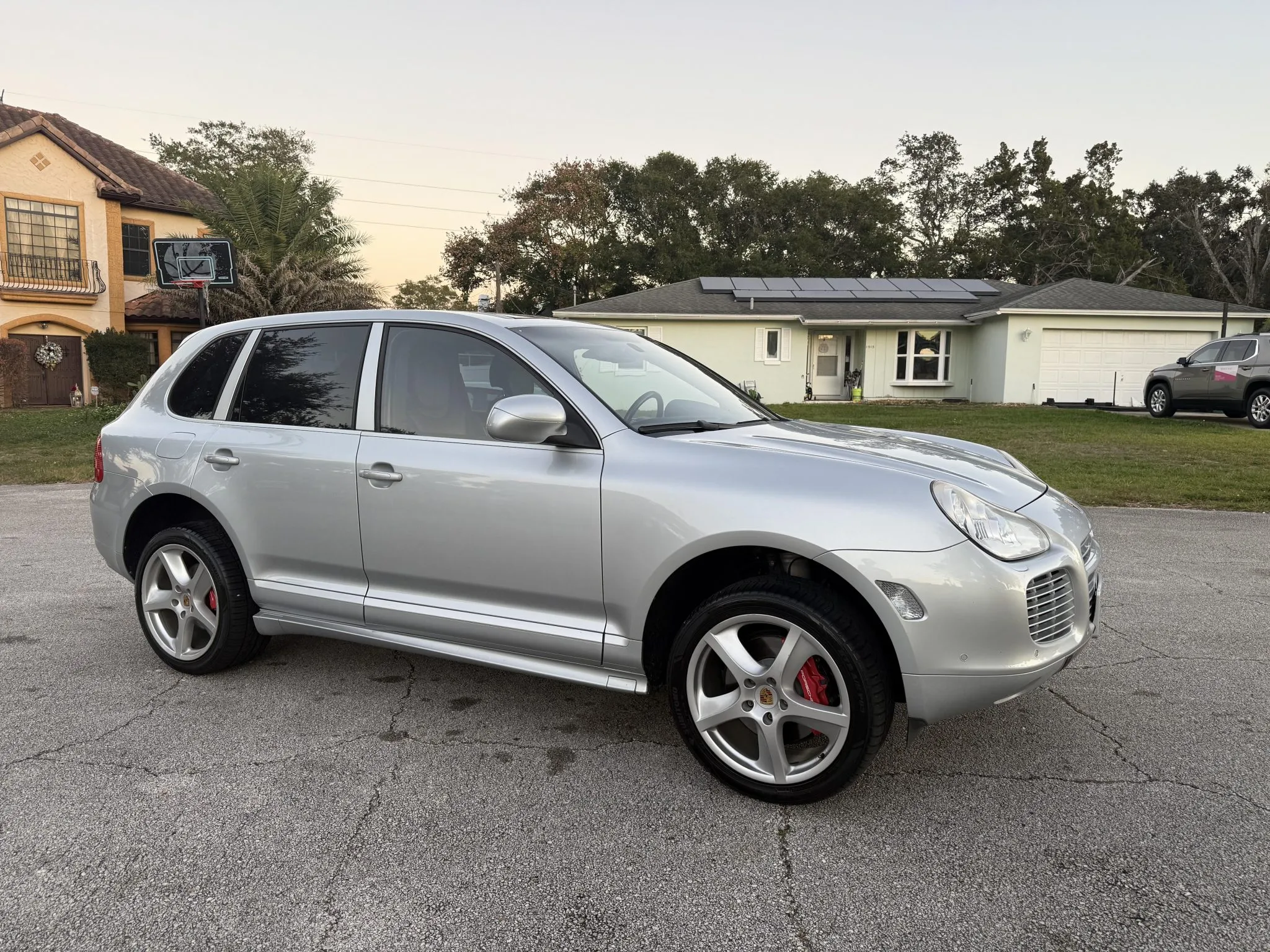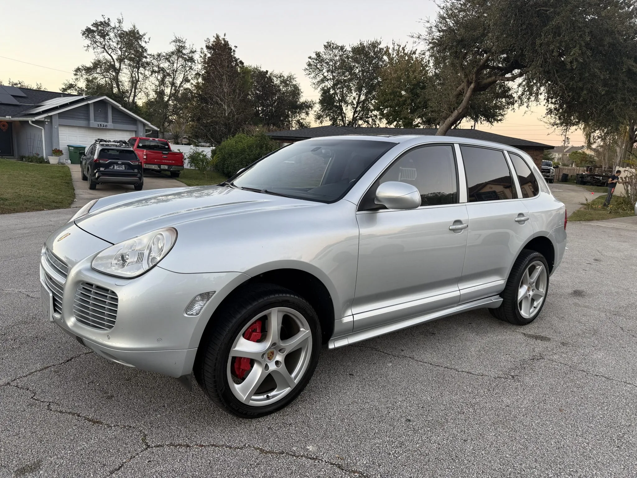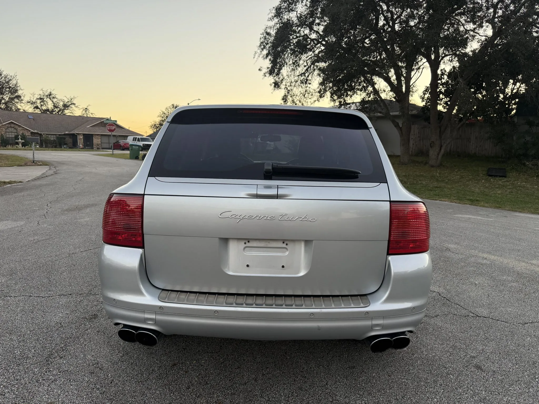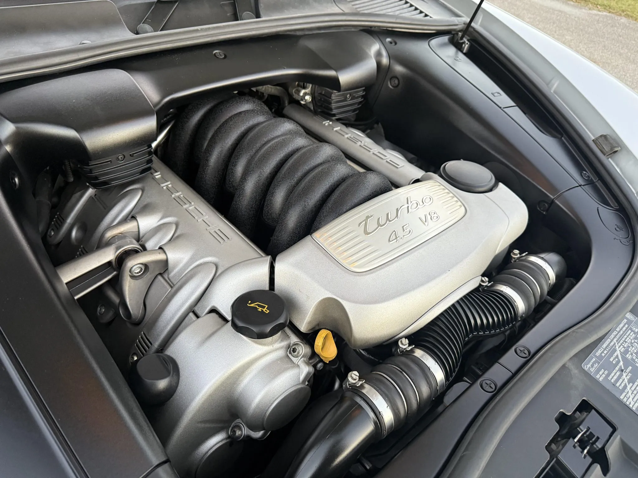 This 2005 Porsche Cayenne Turbo was initially delivered to Carousel Automotive of Minneapolis, Minnesota, and is finished in Crystal Silver Metallic over black leather upholstery. The truck is powered by a twin-turbocharged 4.5-liter V8 paired with a six-speed Tiptronic S automatic transmission.