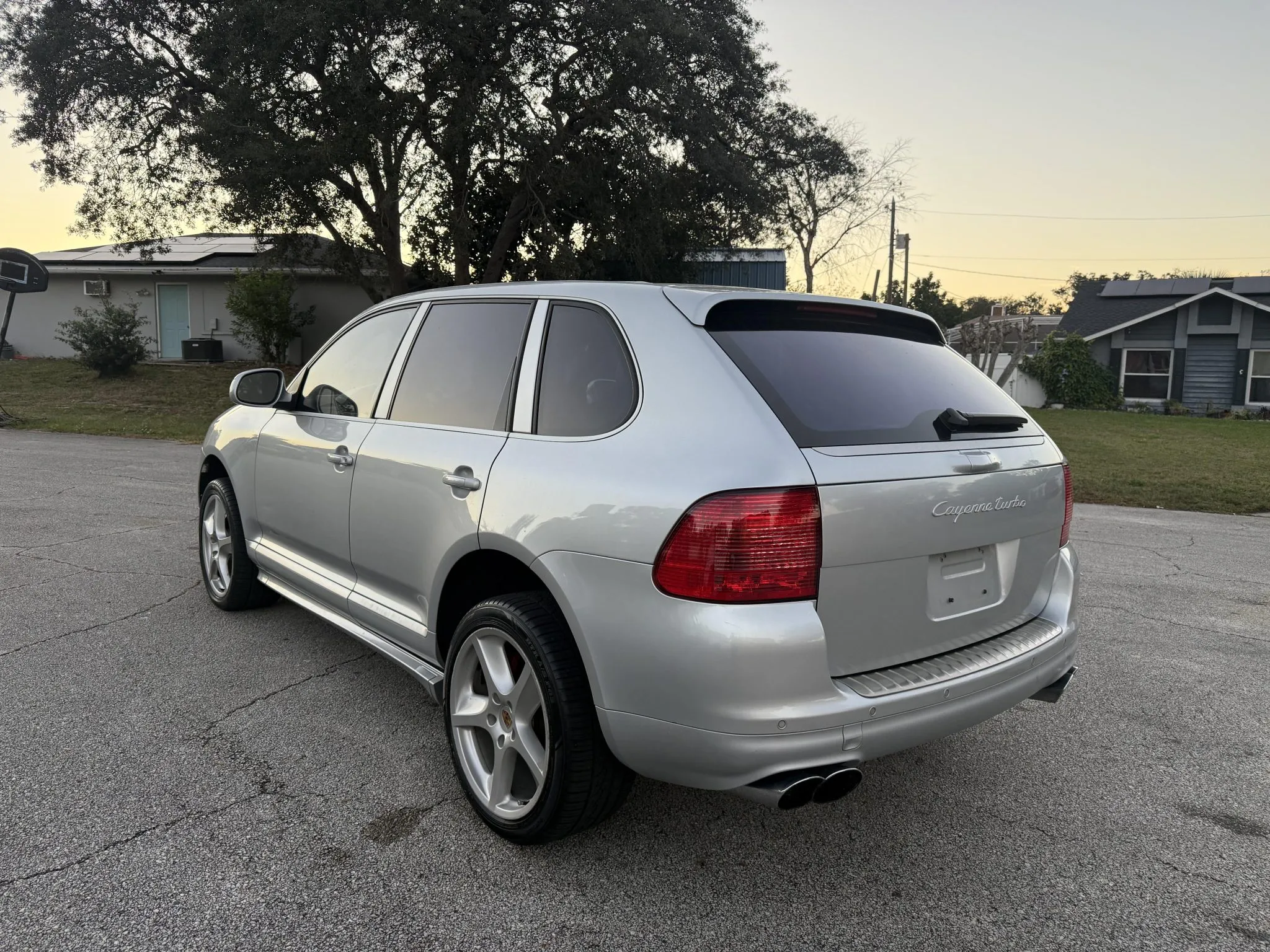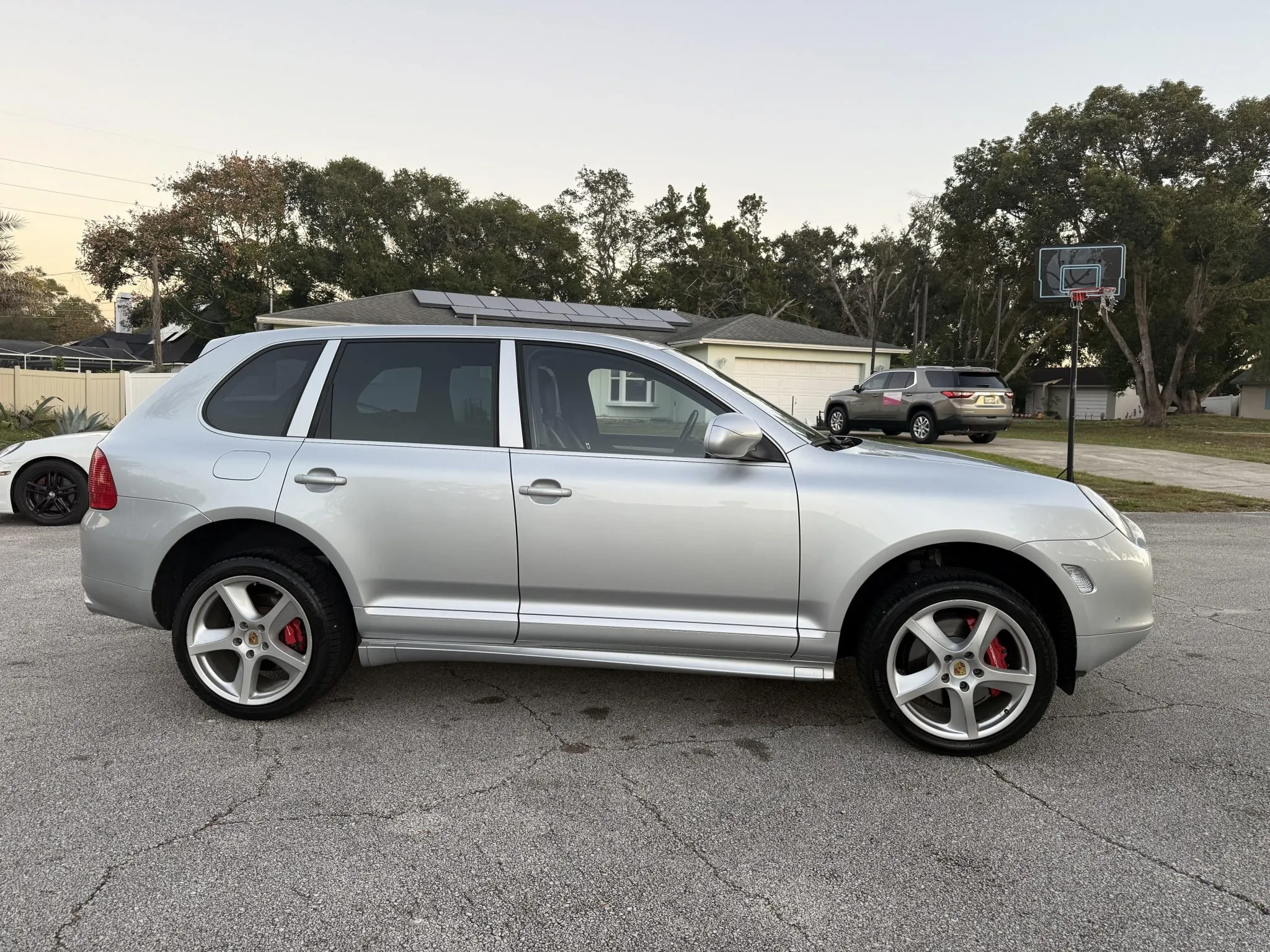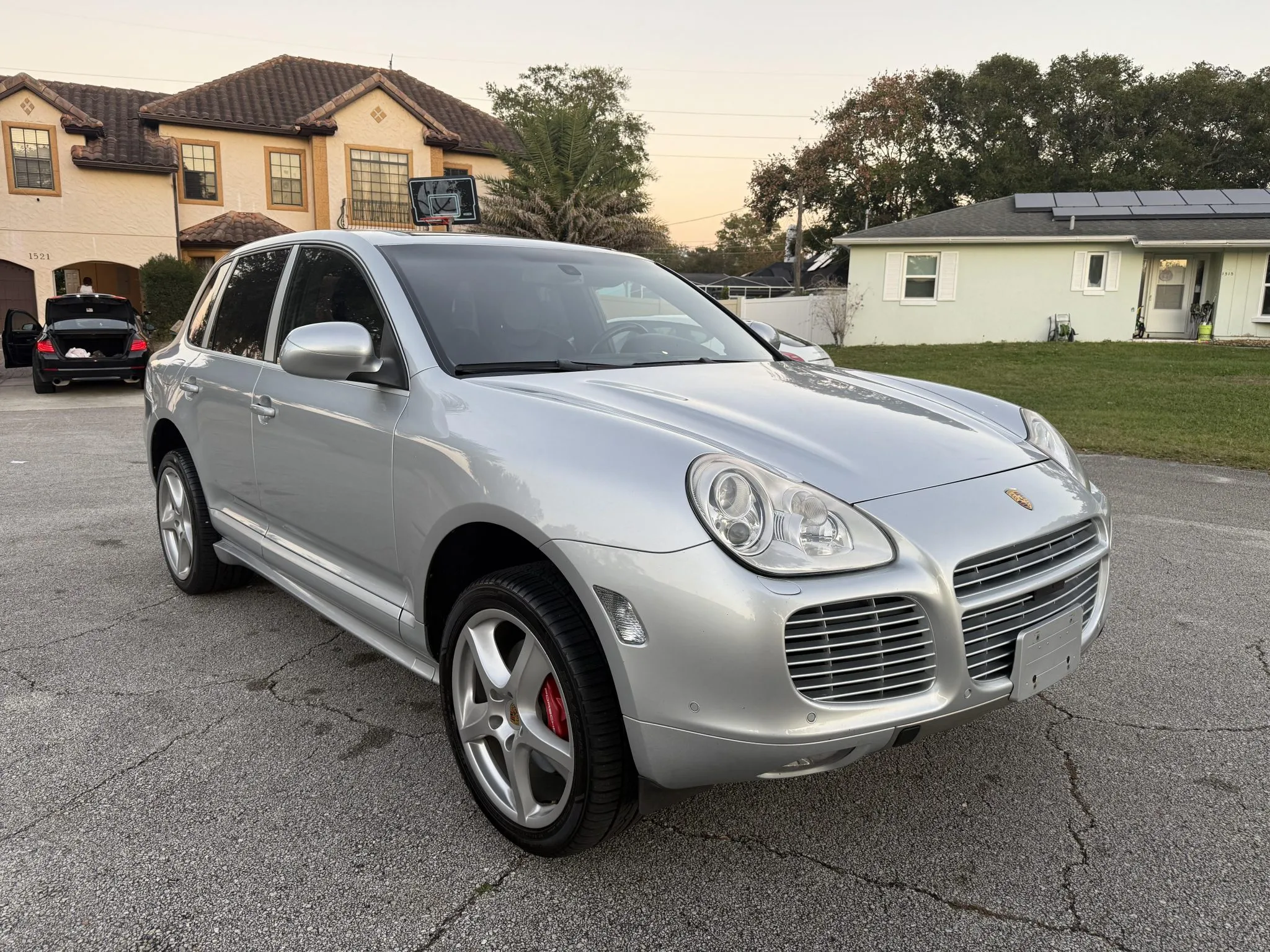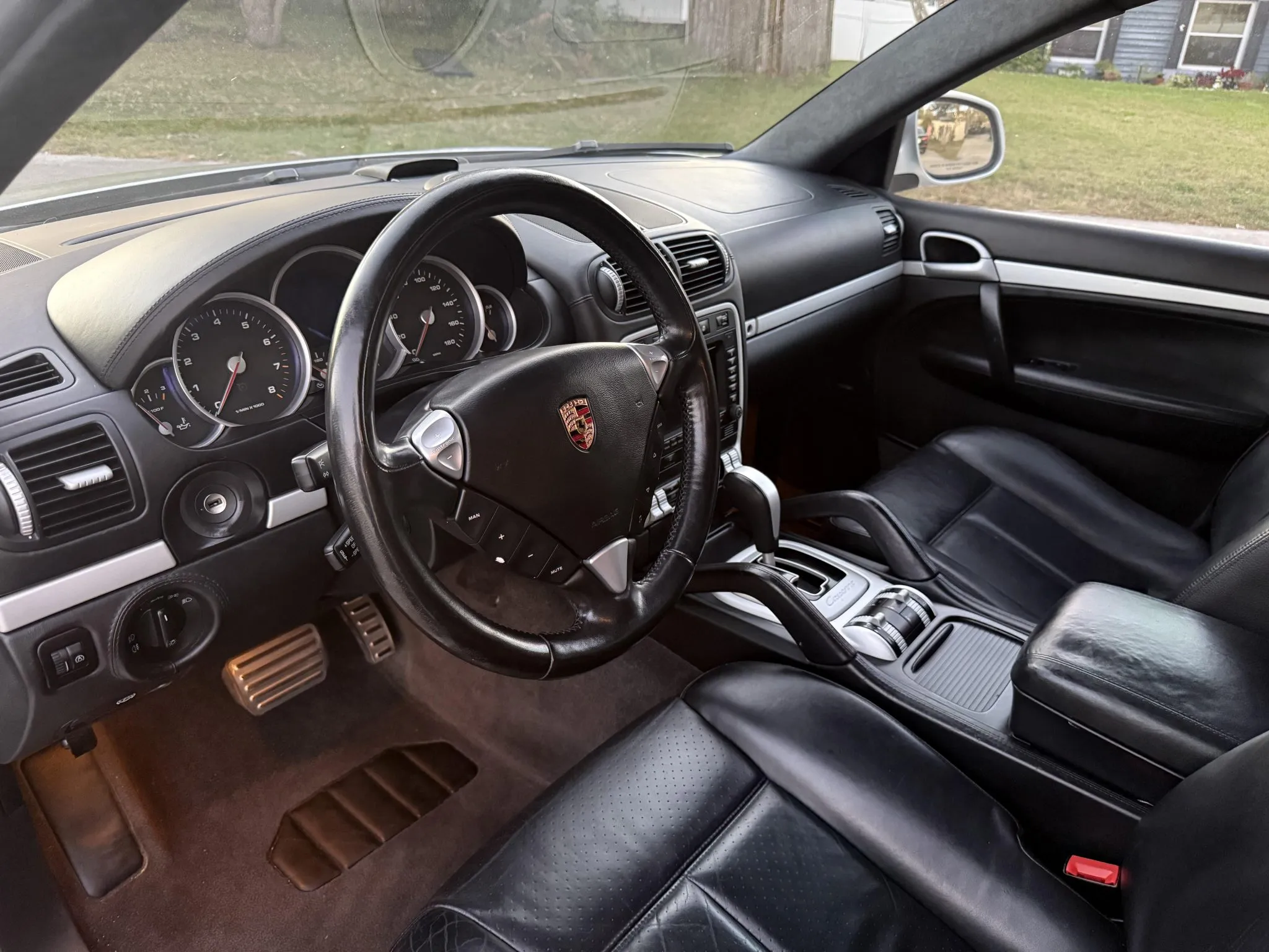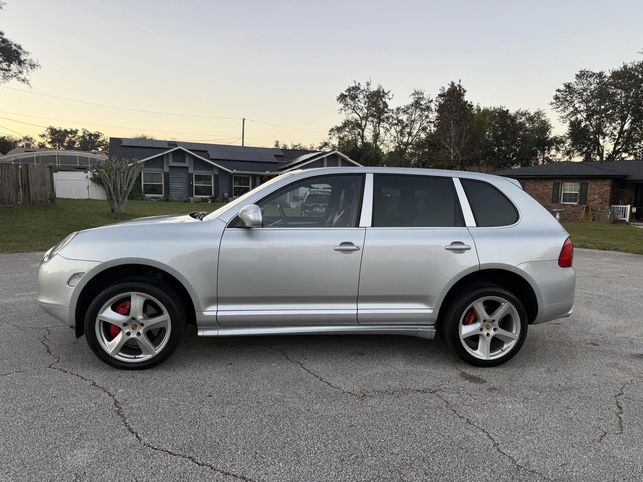 This 2005 Porsche Cayenne Turbo was initially delivered to Carousel Automotive of Minneapolis, Minnesota, and is finished in Crystal Silver Metallic over black leather upholstery. The truck is powered by a twin-turbocharged 4.5-liter V8 paired with a six-speed Tiptronic S automatic transmission.