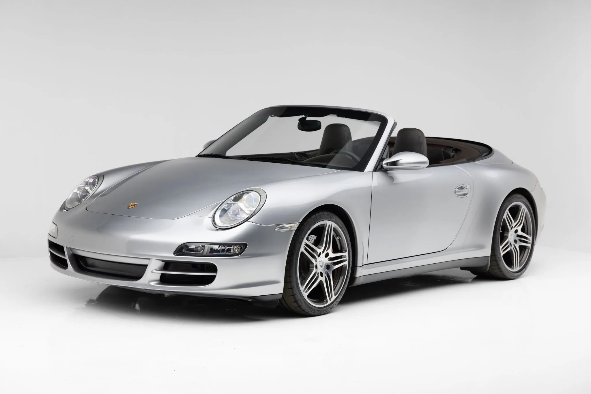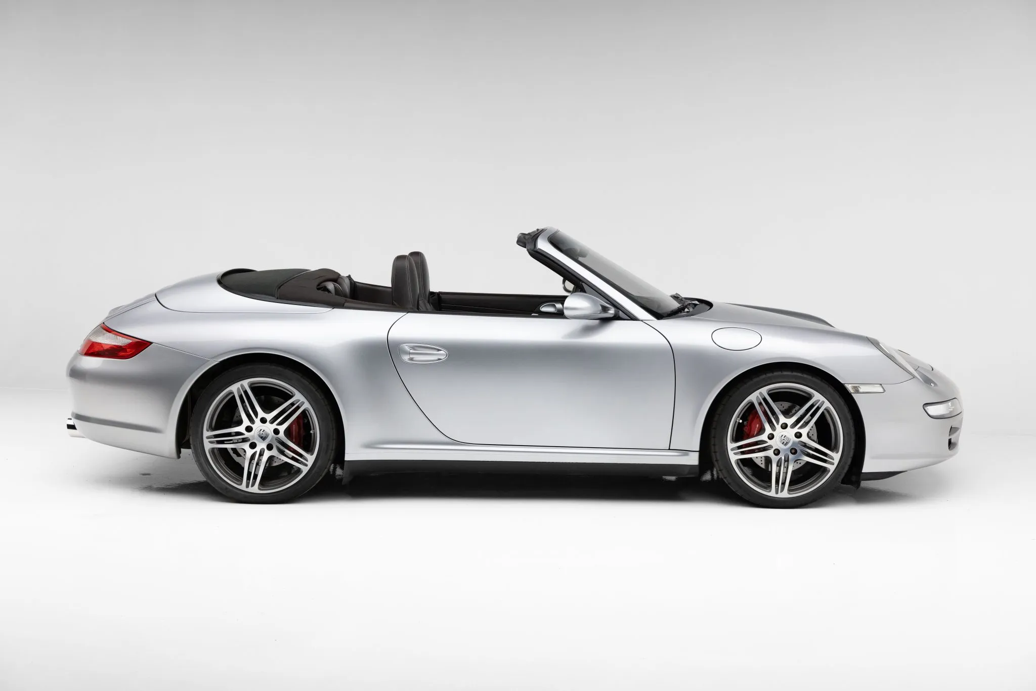This 2006 Porsche 911 Carrera 4S cabriolet is powered by a 3.8-liter flat-six that drives all four wheels through a six-speed manual transaxle and is finished in GT Silver Metallic over Cocoa leather.
