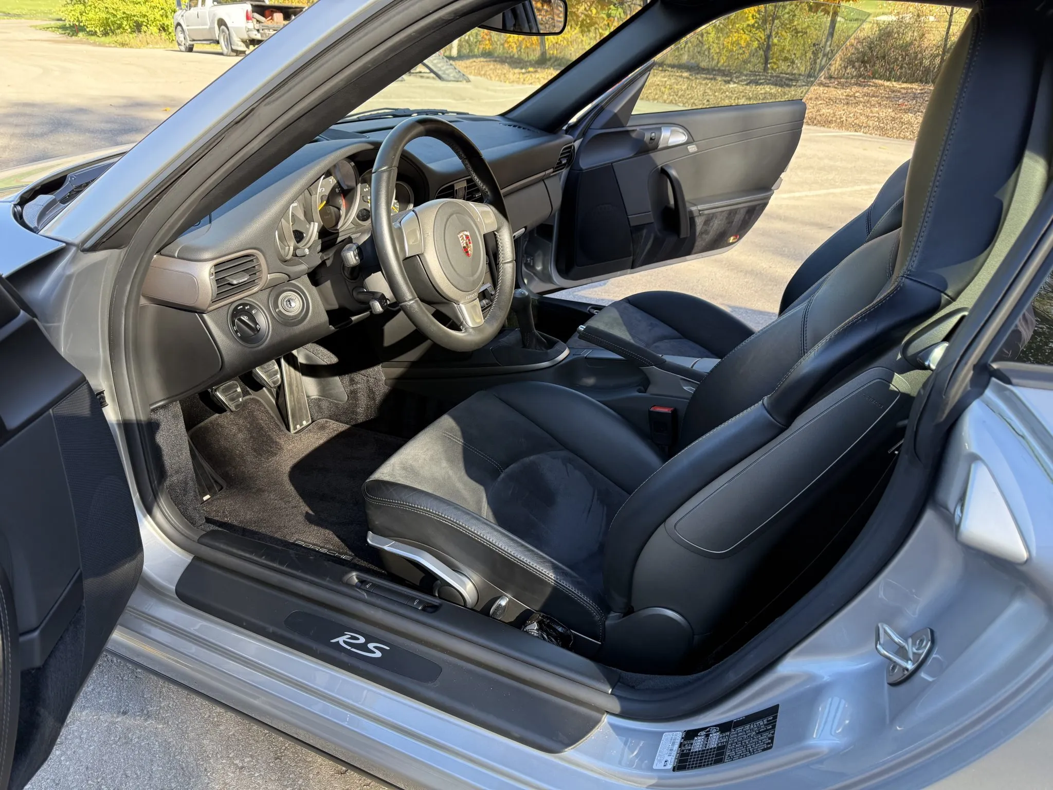 This 2007 Porsche 911 997.1 GT3 RS was produced for the Canadian market and has 21k kilometers (~13k miles) following registration history in Quebec and Ontario. It is powered by a 3.6-liter flat-six linked with a six-speed manual transaxle and a limited-slip differential, and it is finished in Arctic Silver Metallic over black leather and Alcantara upholstery.