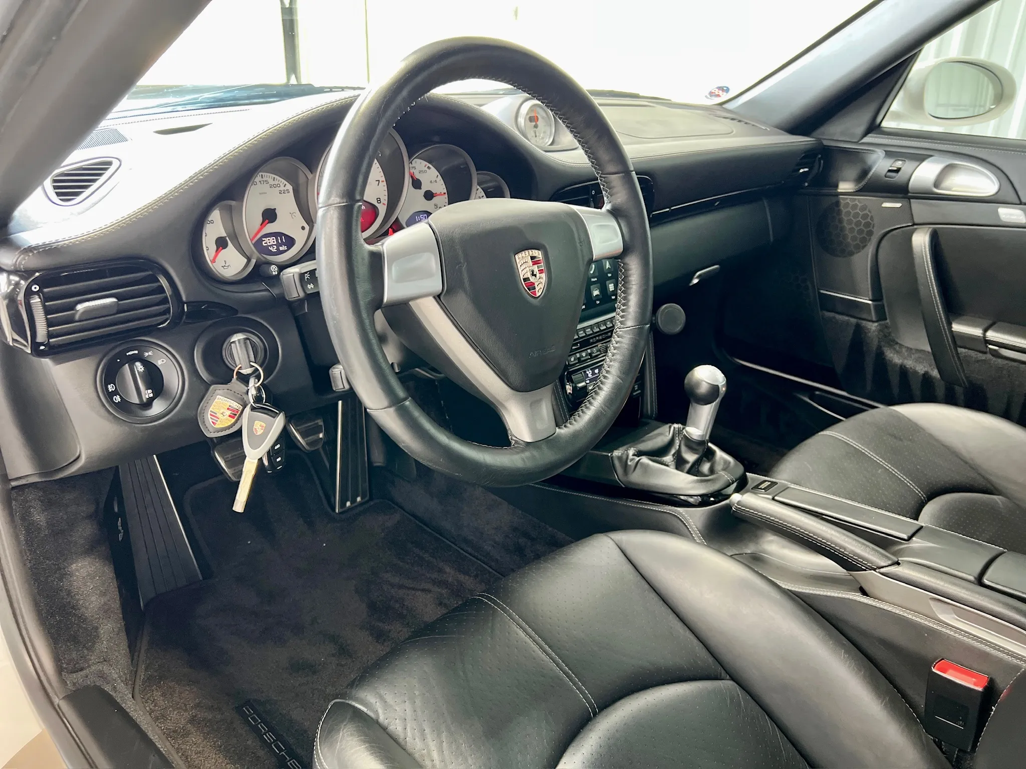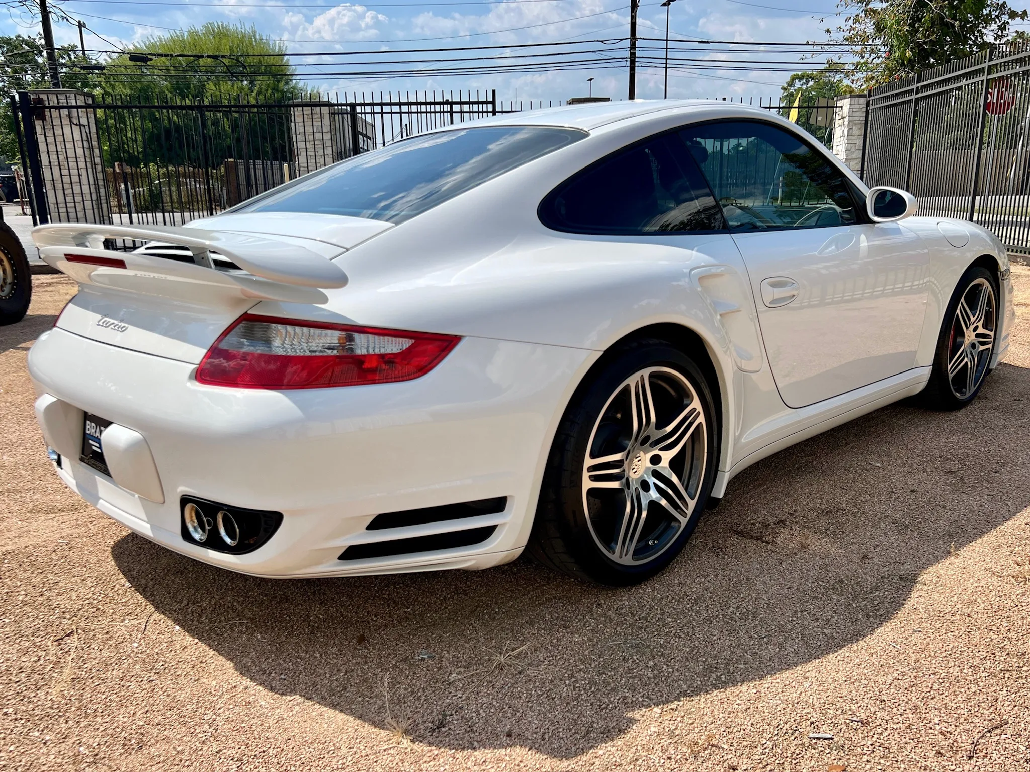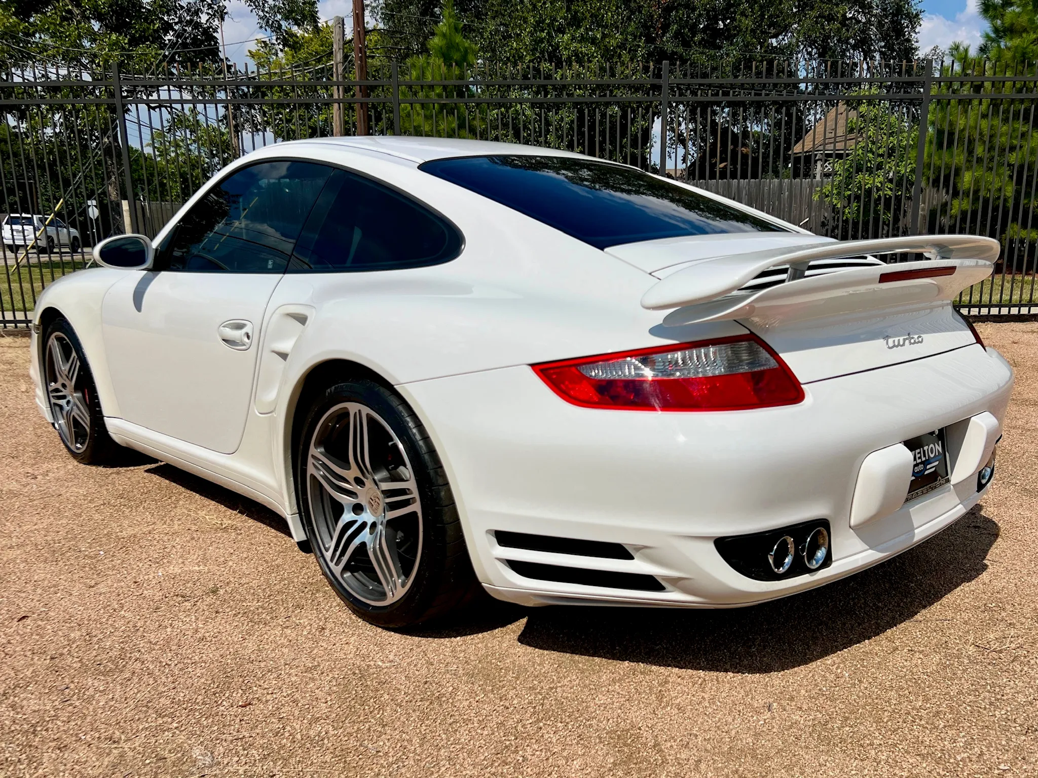 This 2007 Porsche 911 Turbo coupe is finished in Carrara White over Black Full leather and has 29k miles following history in Washington state and Texas.