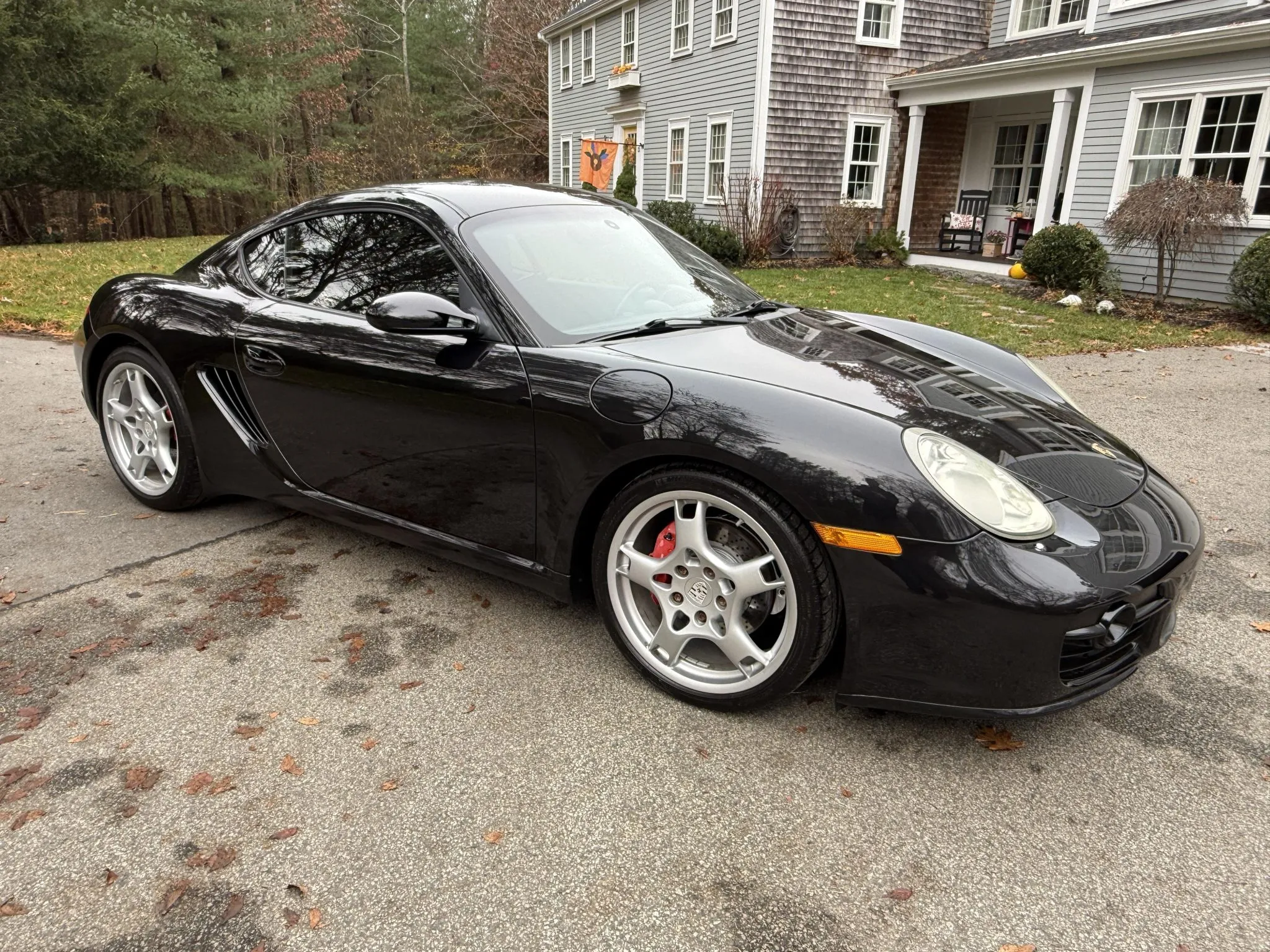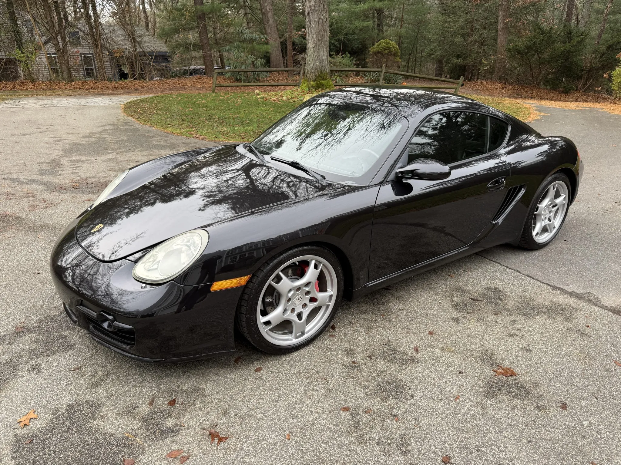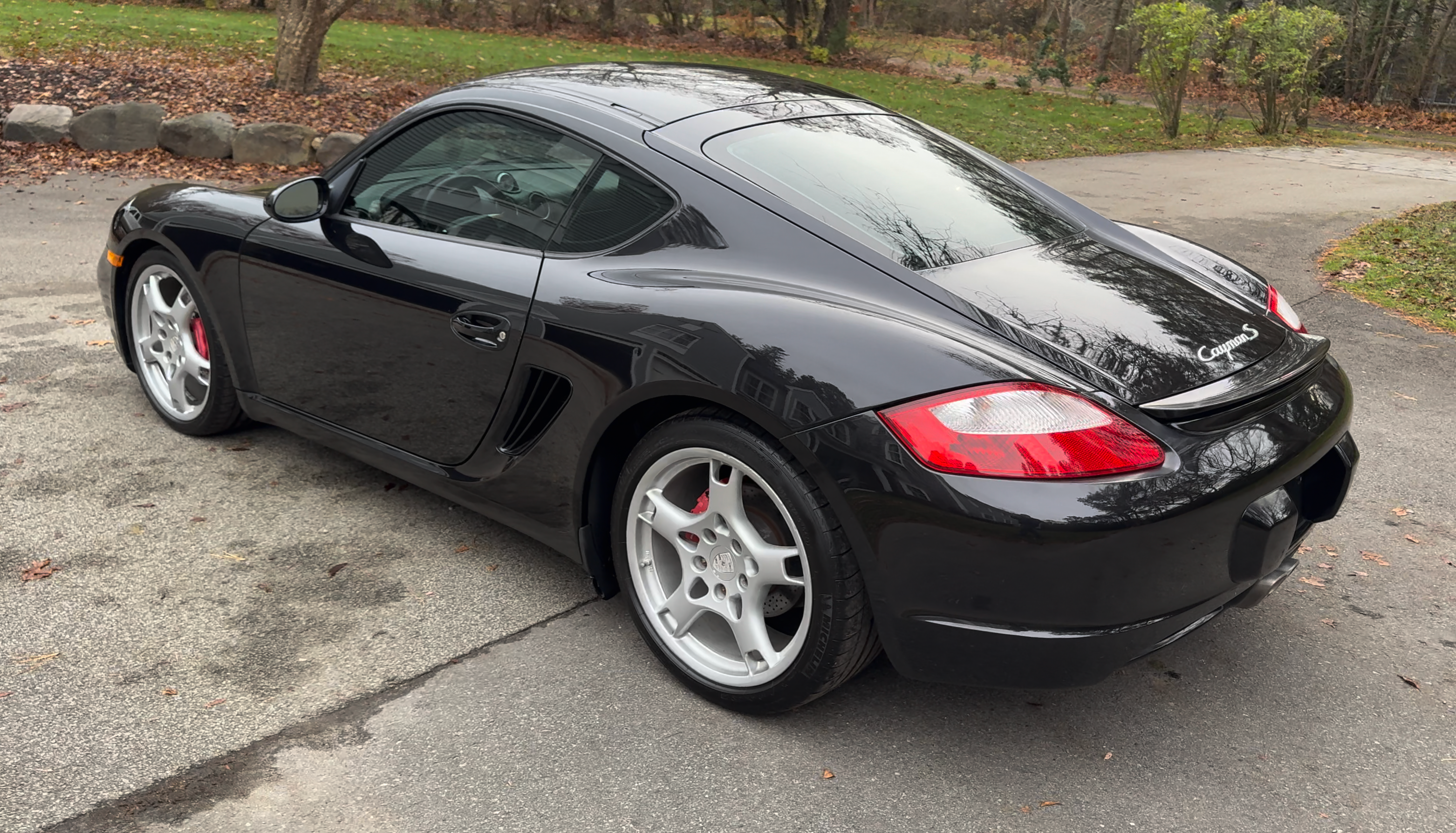 This 2007 Porsche Cayman S was initially sold in Texas and moved to Massachusetts in 2020 before the selling dealer’s acquisition in 2025. Finished in Basalt Black Metallic over black leather, the car is powered by a 3.4-liter flat-six paired with a six-speed manual transaxle.