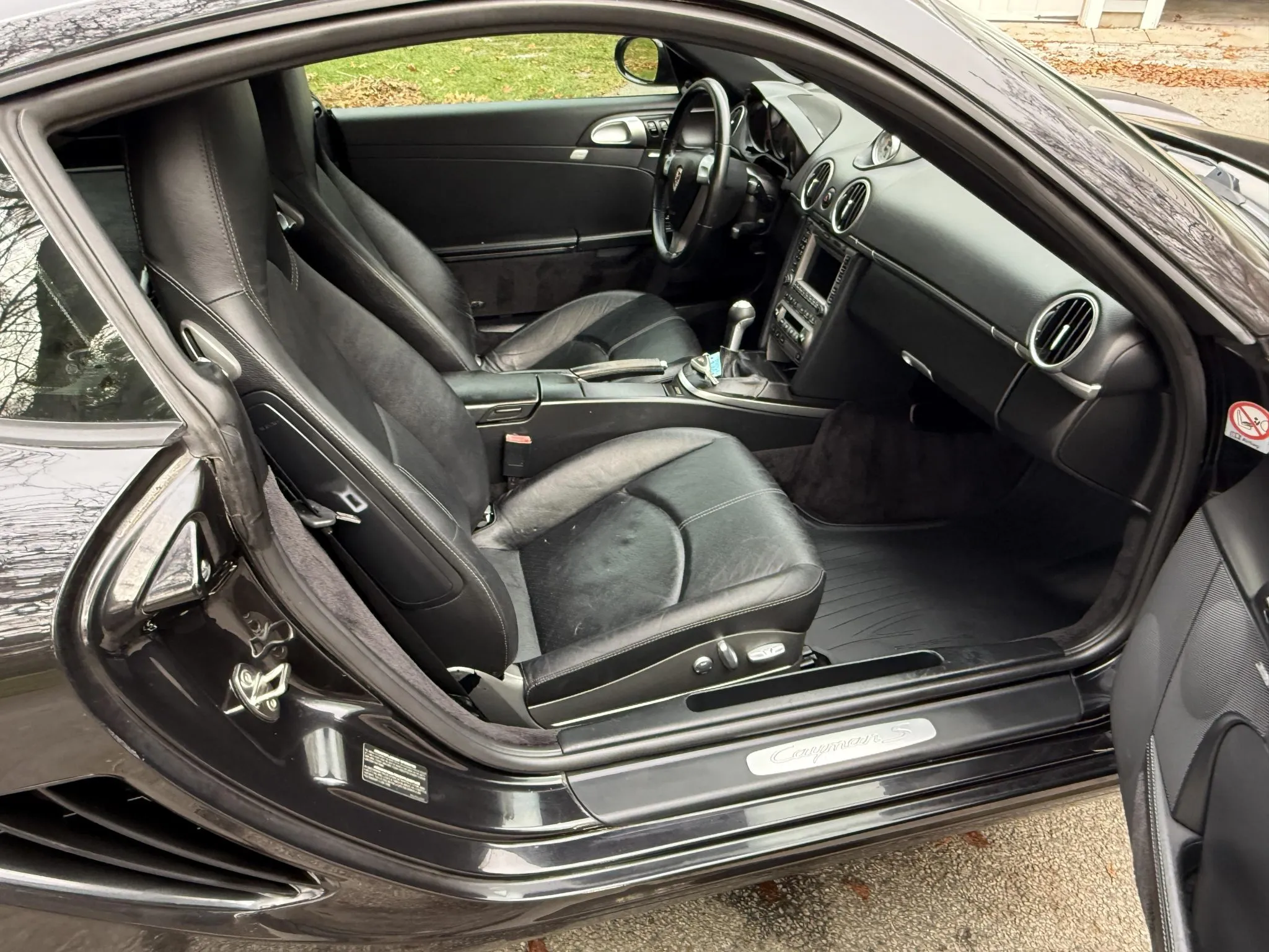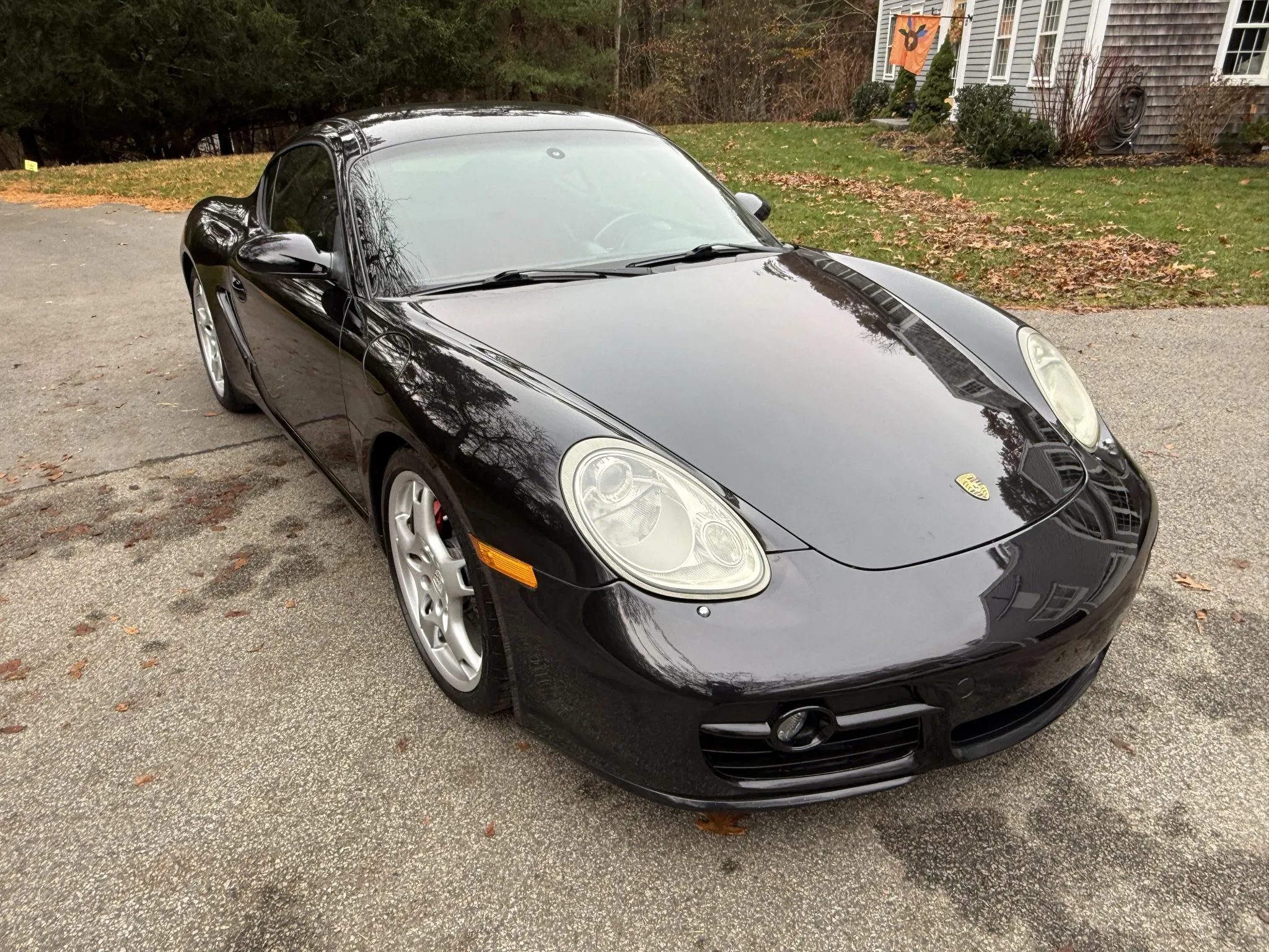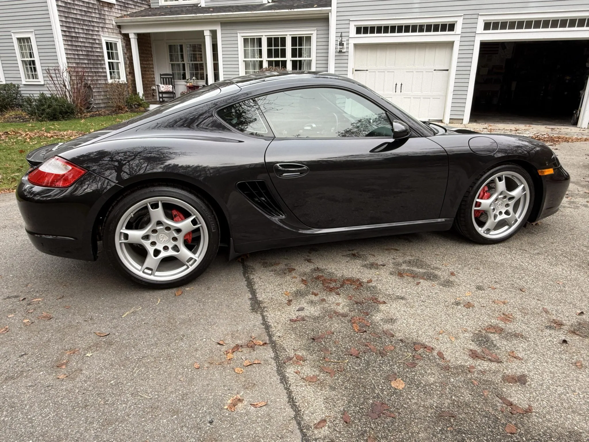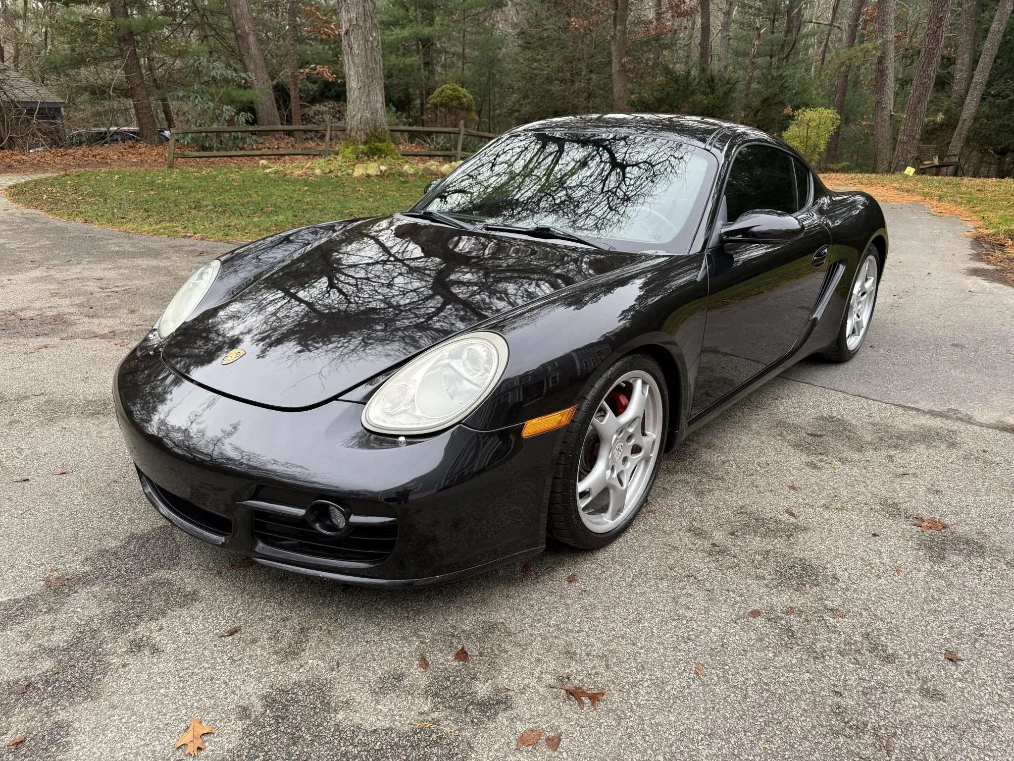 This 2007 Porsche Cayman S was initially sold in Texas and moved to Massachusetts in 2020 before the selling dealer’s acquisition in 2025. Finished in Basalt Black Metallic over black leather, the car is powered by a 3.4-liter flat-six paired with a six-speed manual transaxle.