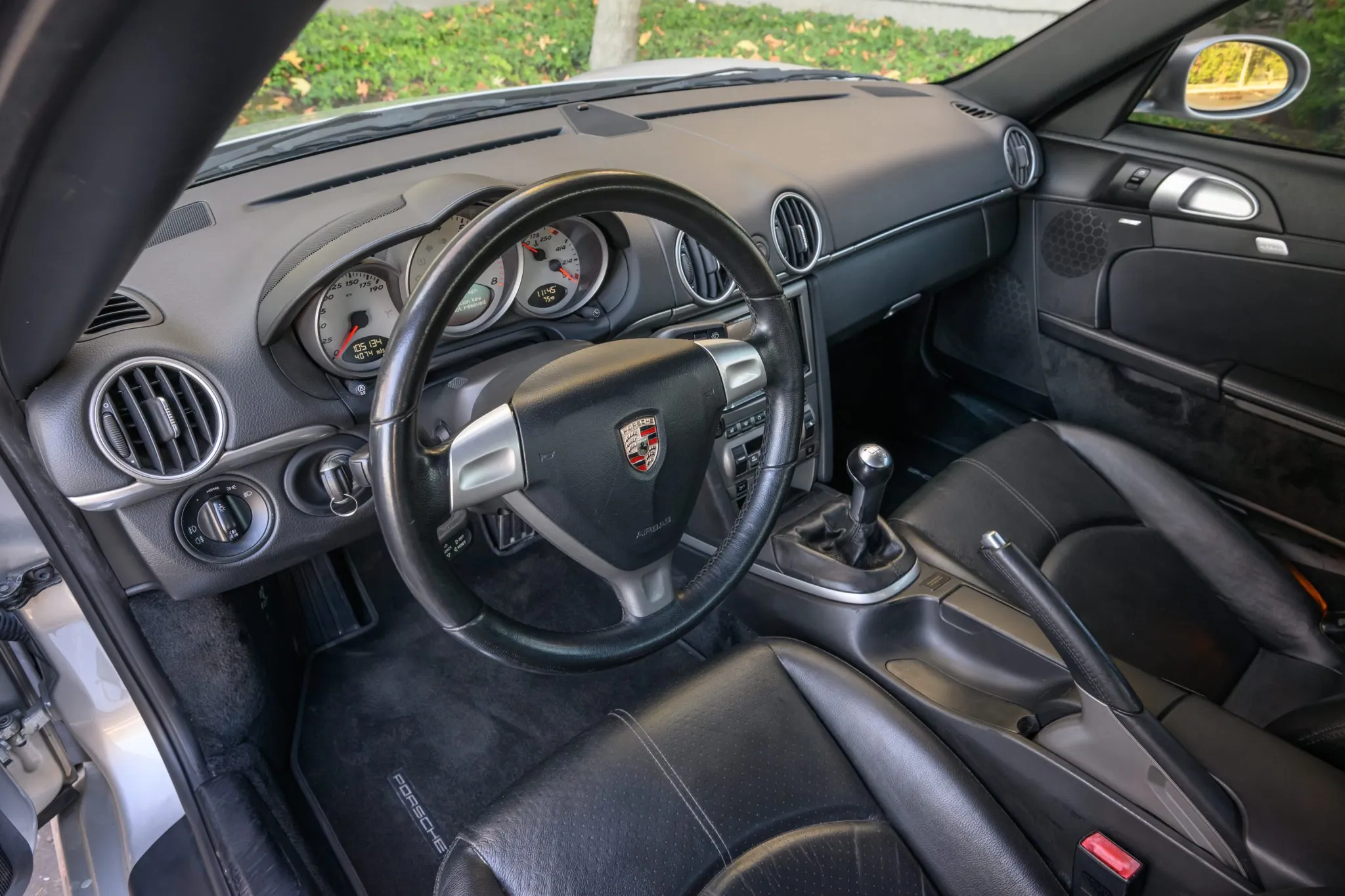 This 2007 Porsche Cayman S was initially delivered to Princeton Porsche of Lawrenceville, New Jersey, and has been registered in California since new. It is powered by a 3.4-liter flat-six paired with a six-speed manual transaxle and is finished in Arctic Silver Metallic over black leather.