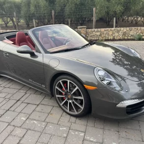 The car spent time in Connecticut, South Carolina, Florida, and Ohio before the seller purchased it in 2025, and they have since added approximately 5k miles. Equipment includes the Sport Chrono Plus, Bose High-End Sound, and Power Seat packages as well as H&R lowering springs, 19″ Carrera S wheels, PASM dampers, a Black soft top, heated front seats, and an Alpine touchscreen infotainment system with front and rear cameras.