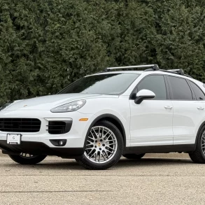 Equipment includes a black soft top, 19″ Y-spoke wheels, bi-xenon headlights, a rear wing, an aftermarket air box, a modified exhaust system, an RennKit eRam electric actuation spoiler kit, power-adjustable front sport seats, a Bose sound system, PCM with navigation, and automatic climate control.