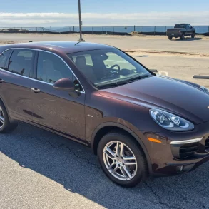 Inside, the cabin is luxuriously appointed in Brown Natural Leather with extensive carbon fiber trim as part of the optional Carbon Package. Equipment includes heated Adaptive Sport Seats with custom-painted backrests, Porsche-crested headrests, carbon fiber door finishers, illuminated carbon fiber door sills, a leather-wrapped rear center console, a multifunction carbon fiber steering wheel, and a storage compartment lid embossed with the “Turbo” logo. Additional amenities include automatic climate control, cruise control, an onboard computer, Porsche Communication Management (PCM), a Bose sound system, and the Sport Chrono dashboard stopwatch.