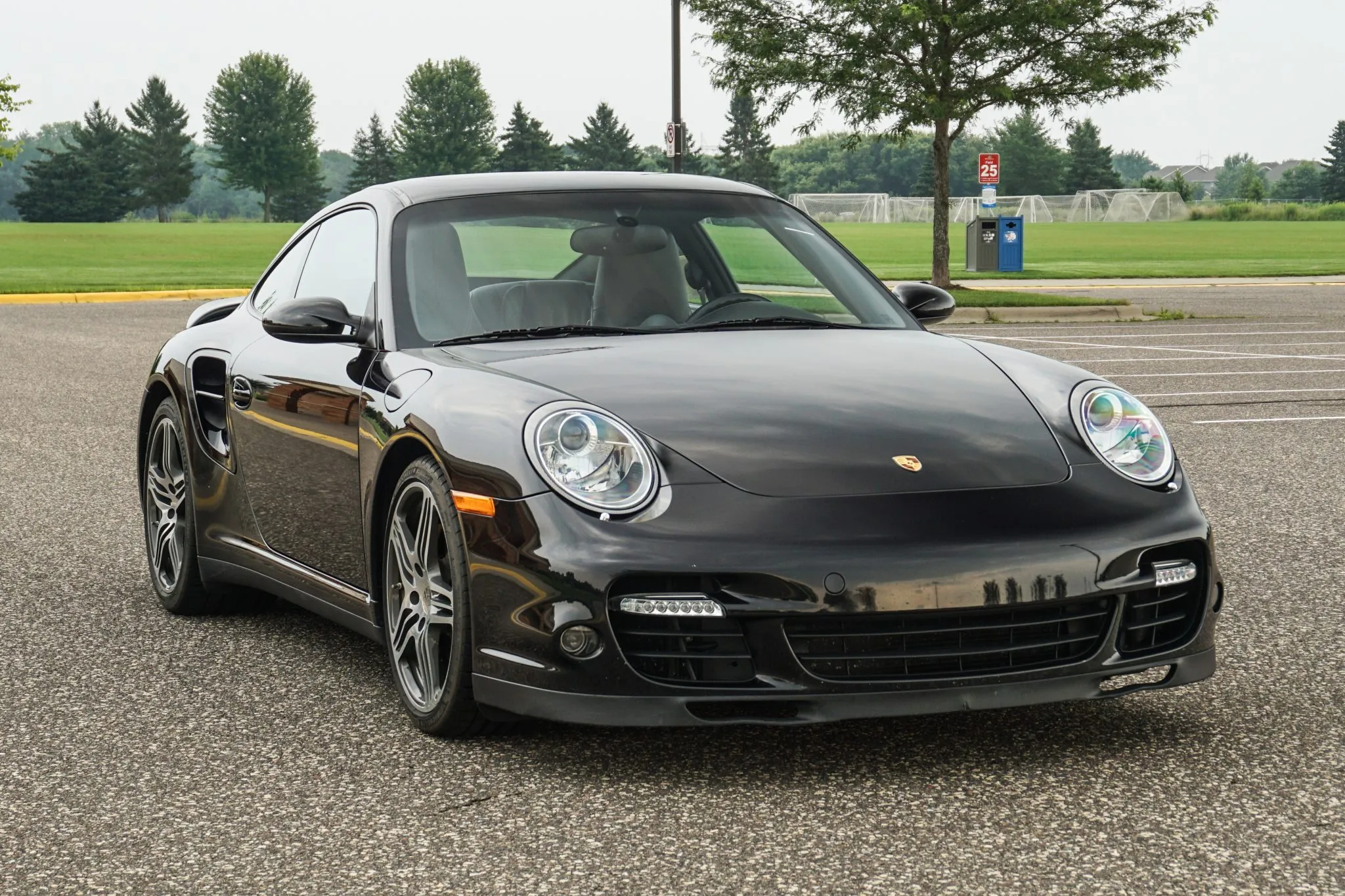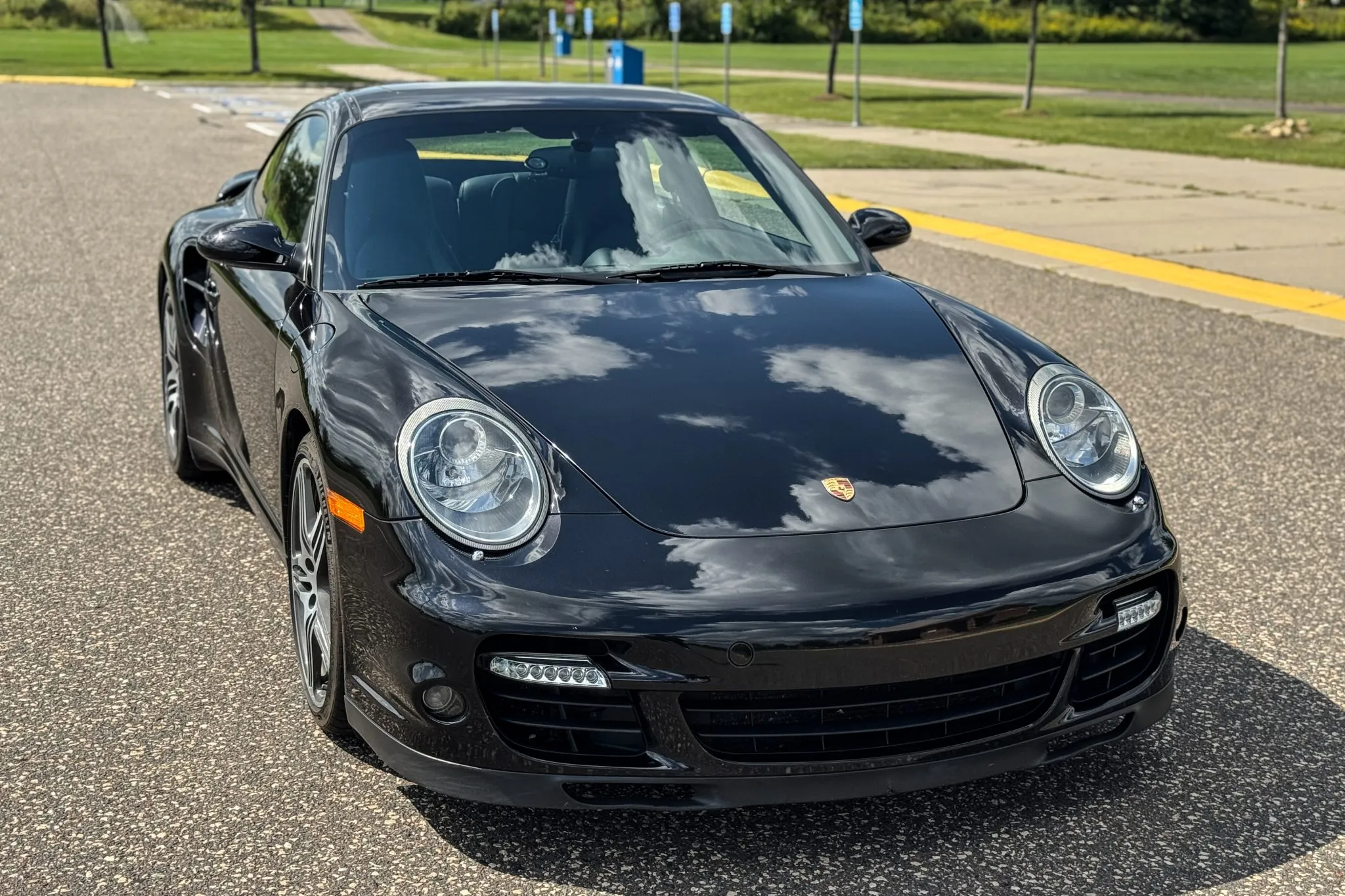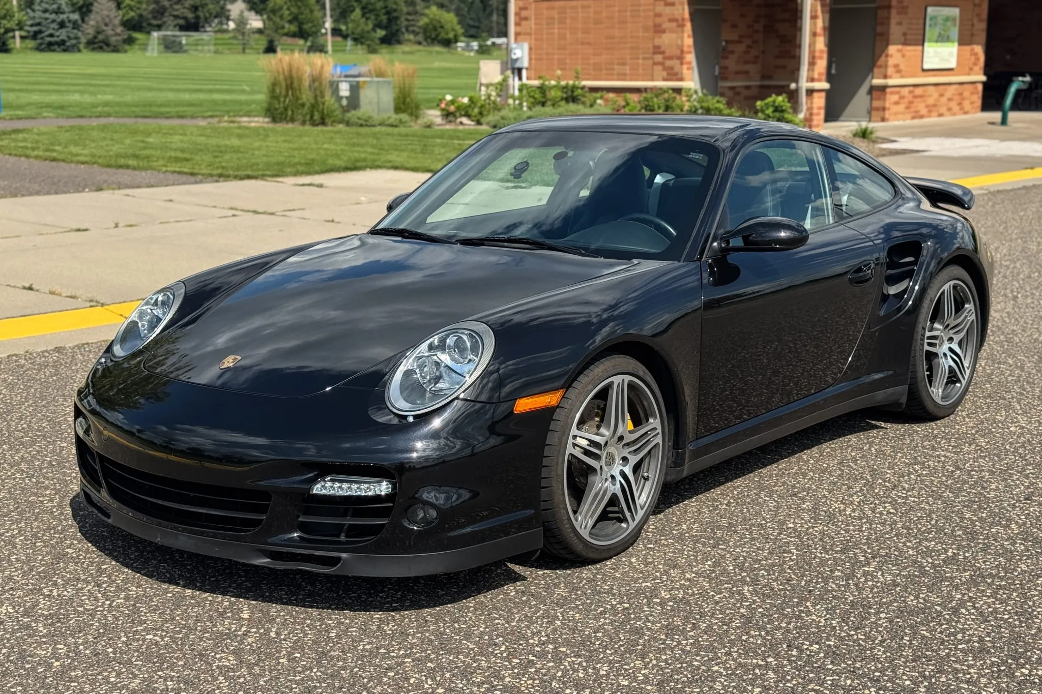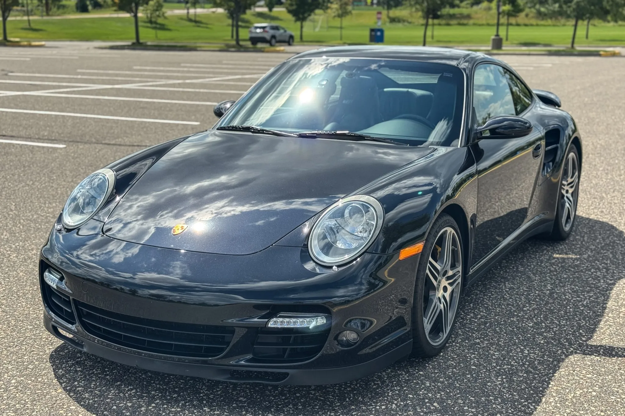 This 2008 Porsche 911 Turbo is a black-over-black coupe that has 76k miles and is powered by a twin-turbocharged 3.6L flat-six that drives all four wheels via a six-speed manual transaxle.