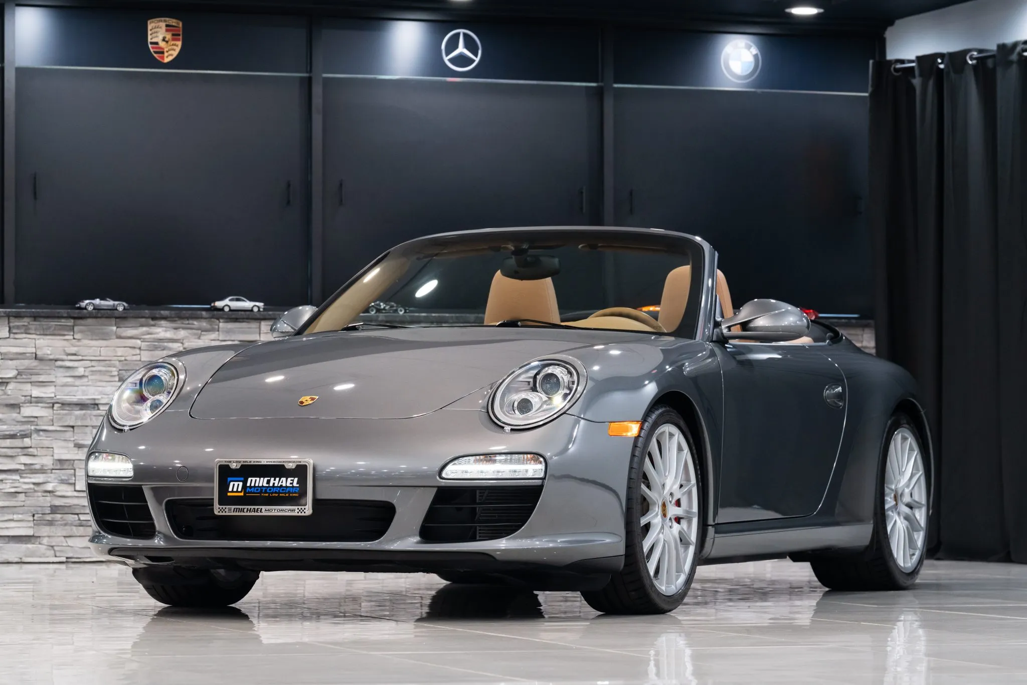 This 2009 Porsche 911 Carrera S cabriolet is finished in Meteor Gray Metallic over Sand Beige Full leather and has 37k miles following history in Florida and Massachusetts.