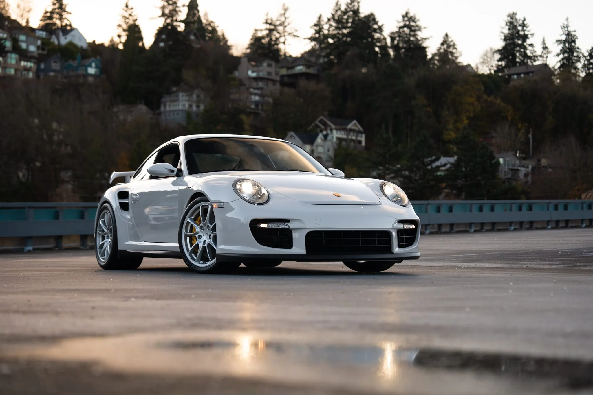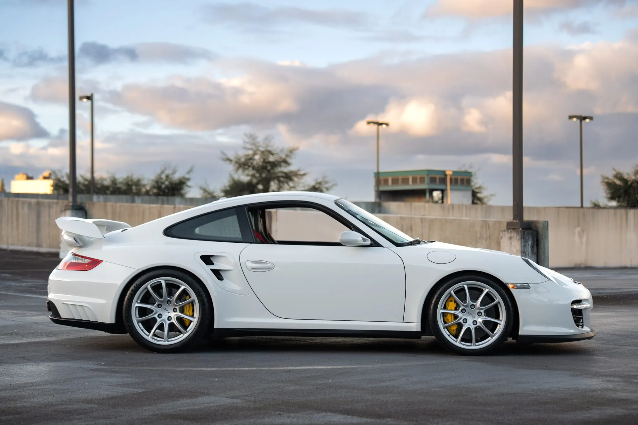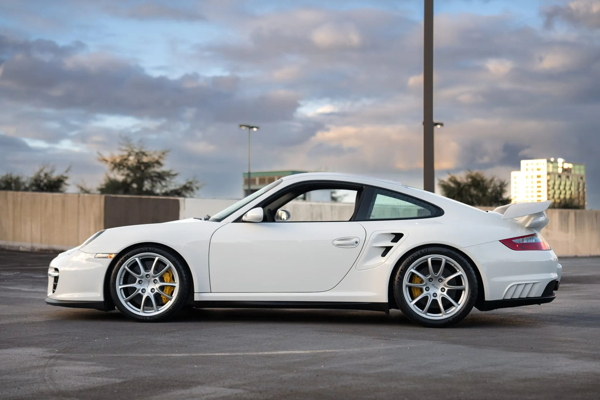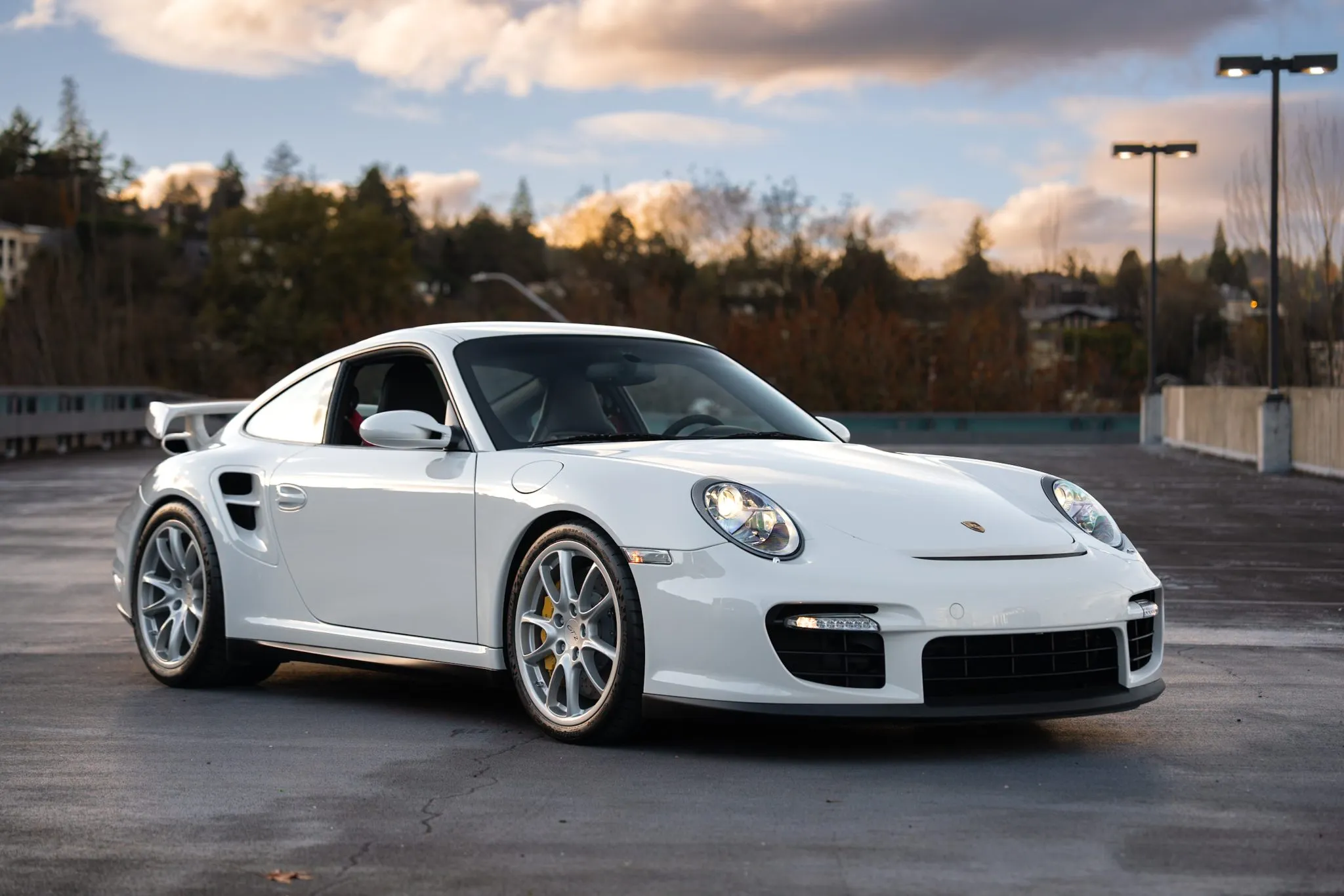 This 2009 Porsche 911 GT2 is one of approximately 20 US-market examples built for the model year, and it has 4,900 miles following registration history in Massachusetts, Ohio, and Michigan. It is finished in Carrara White over black leather and microsuede and is powered by a twin-turbocharged 3.6L flat-six paired with a six-speed manual transaxle.