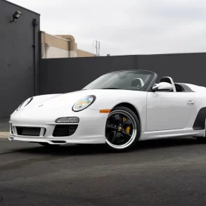 Powered by a 2.9-liter flat-six paired with a six-speed manual transaxle, the coupe is finished in Black over Black Standard leather. Equipment includes the Sound Package Plus, heated seats, 18″ Cayman S II wheels, and bi-xenon headlights with Dynamic Cornering Lights.