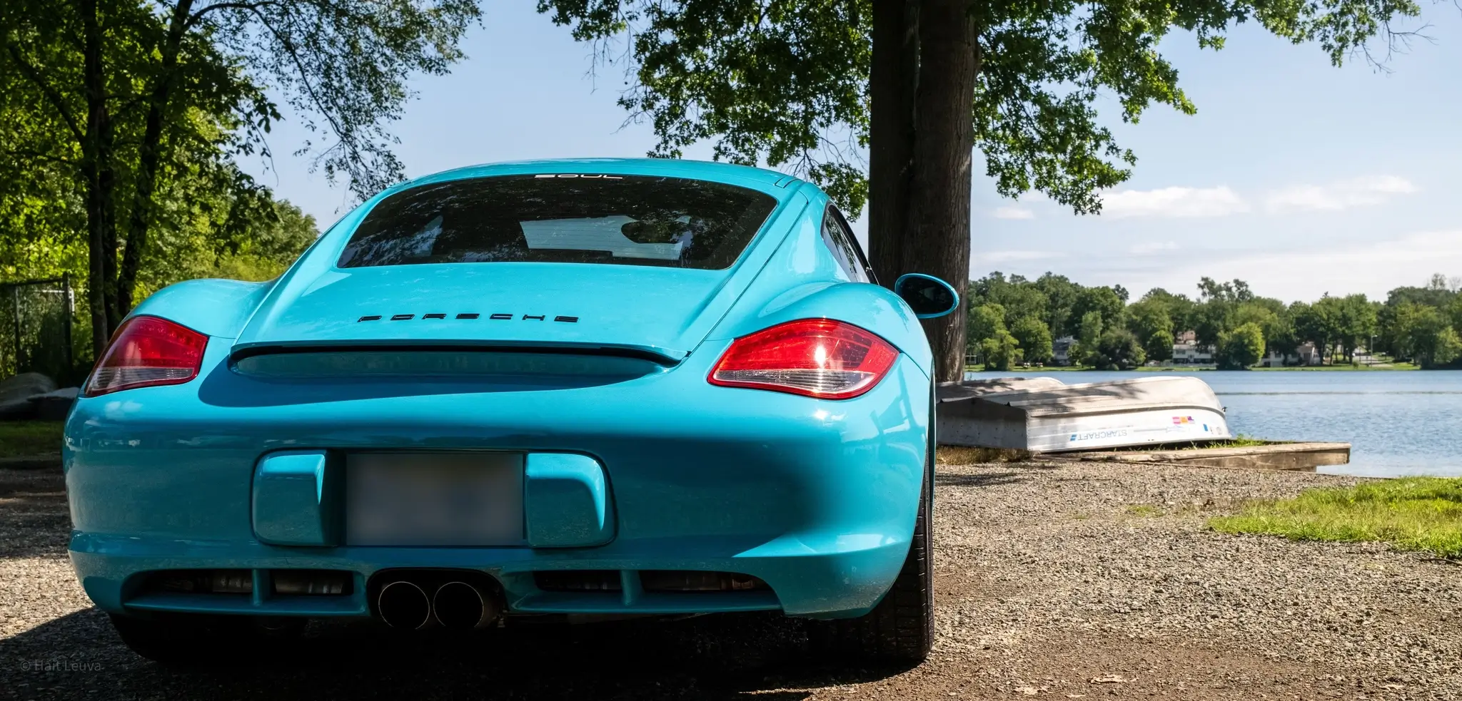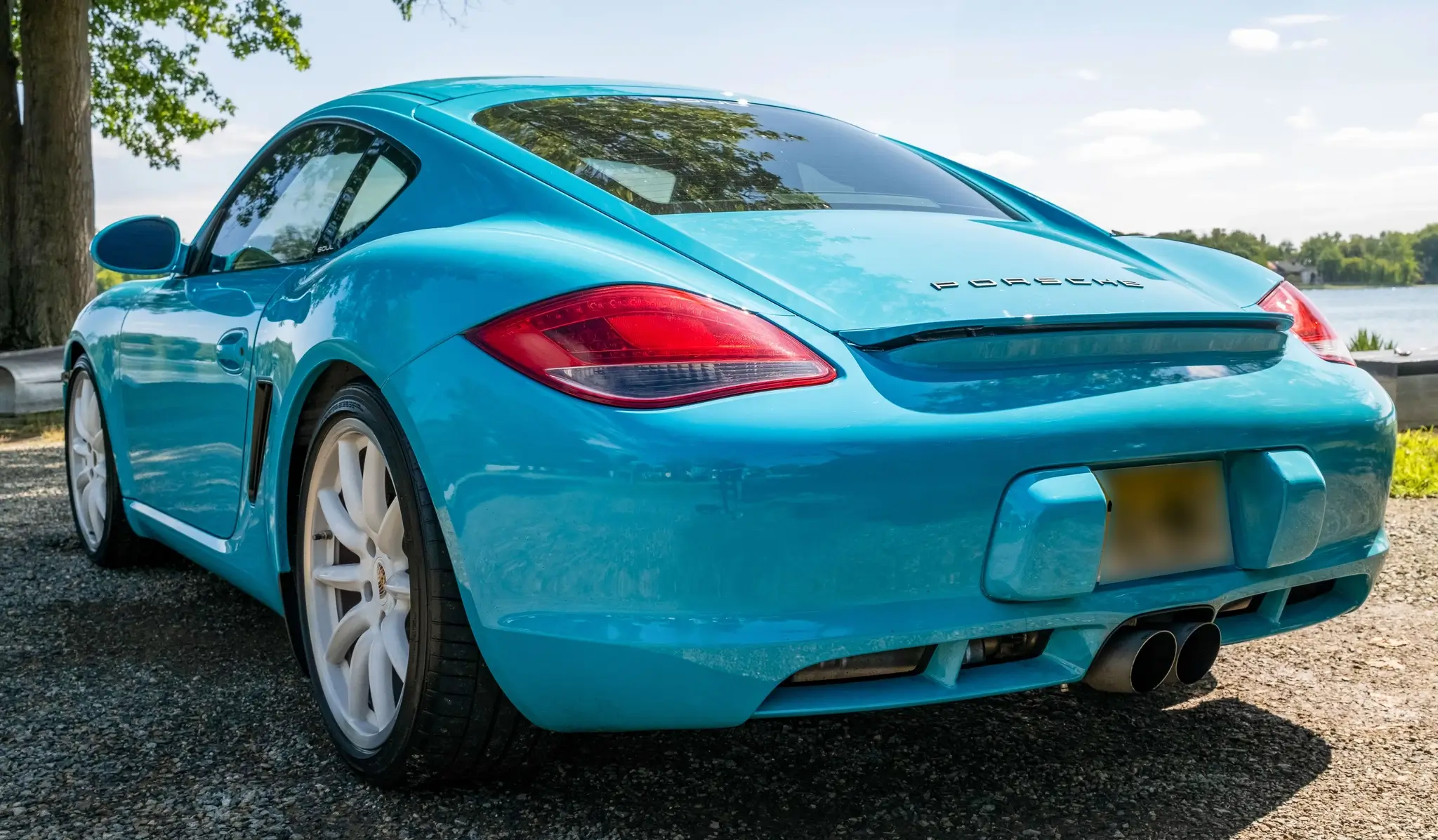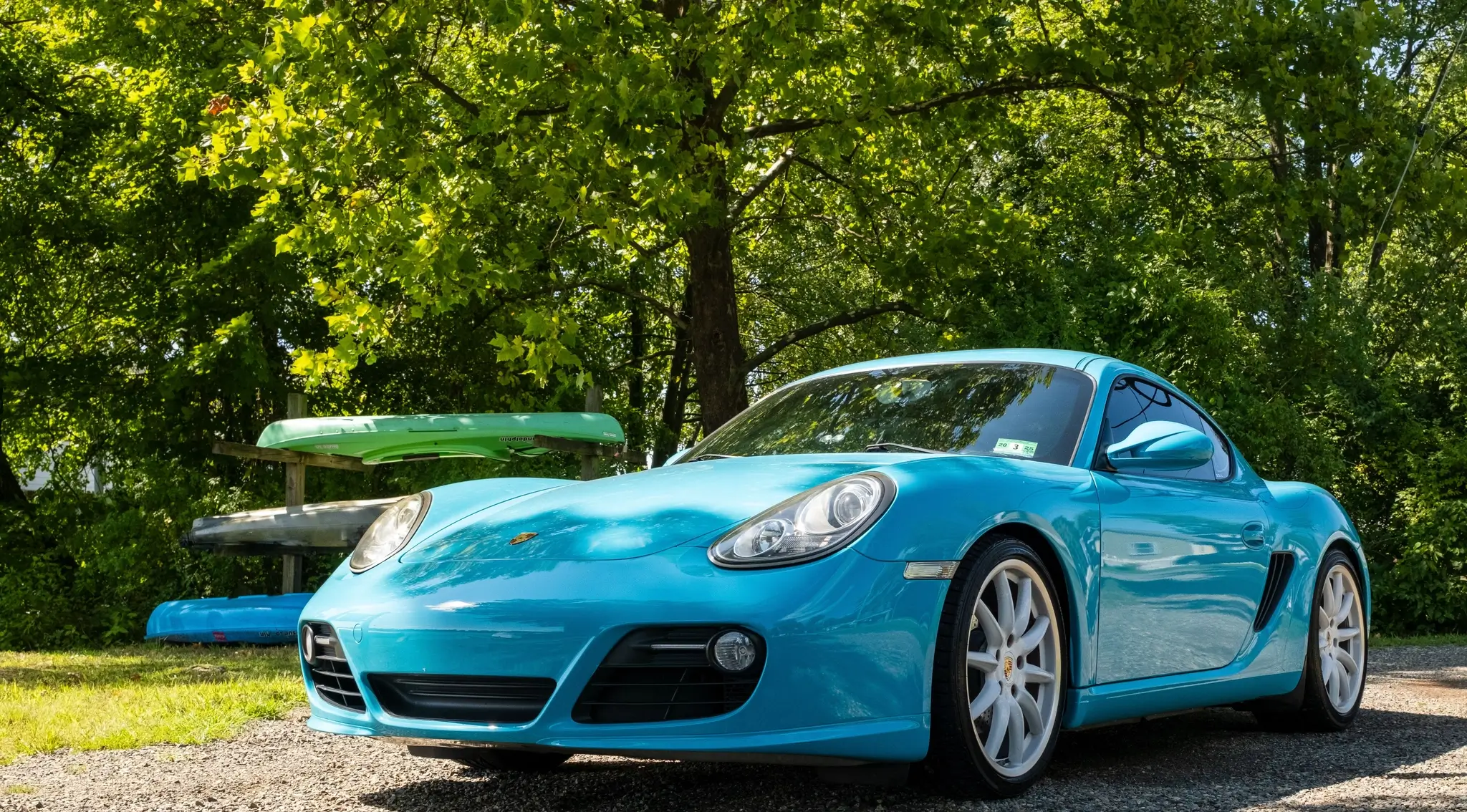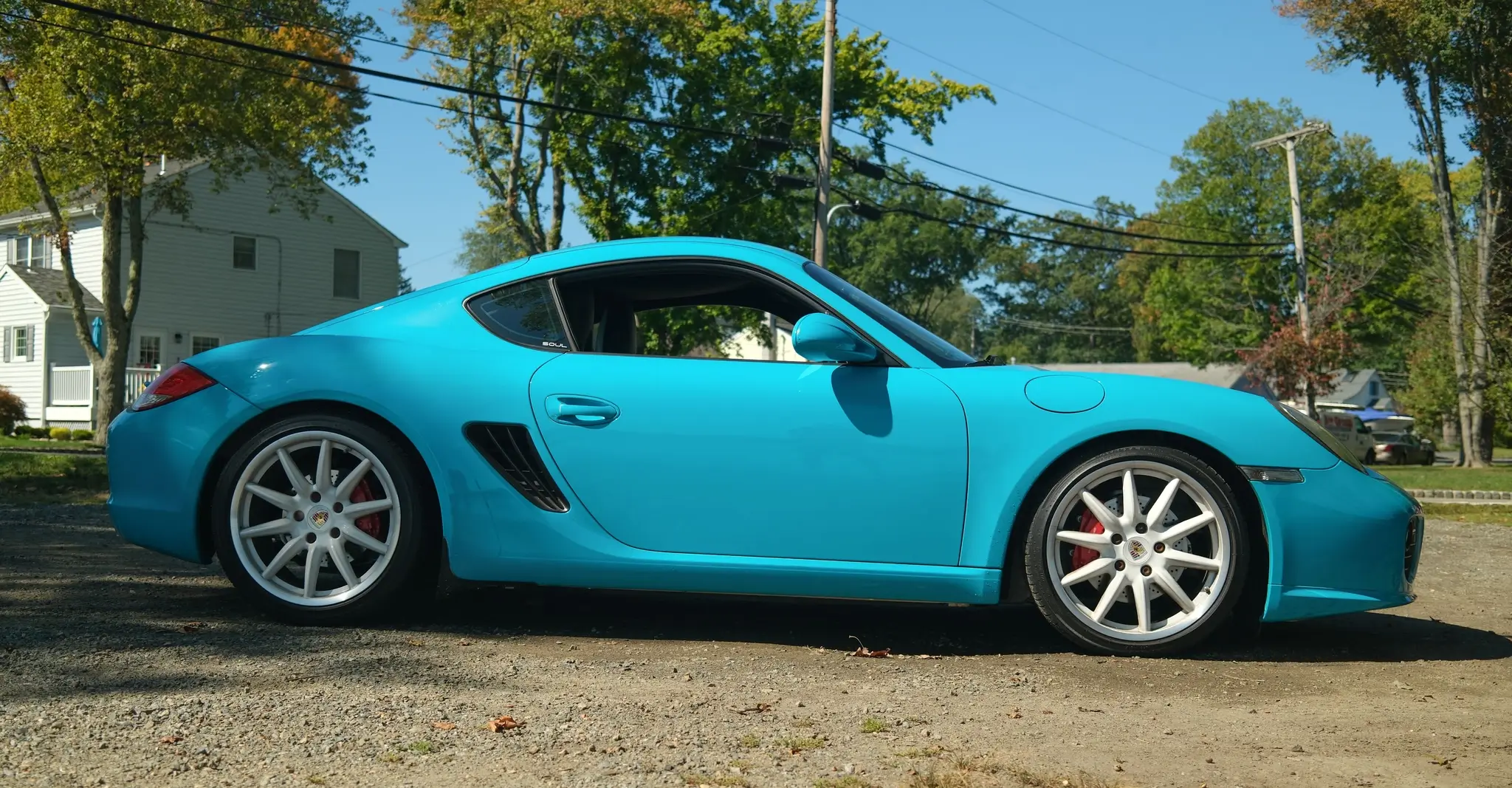 Featuring a 3.4-liter flat-six engine paired with a 6-speed manual transaxle, this 2010 Porsche 987.2 Cayman S is presented in a Miami Blue vinyl wrap over Carrara White paint and a Black interior.