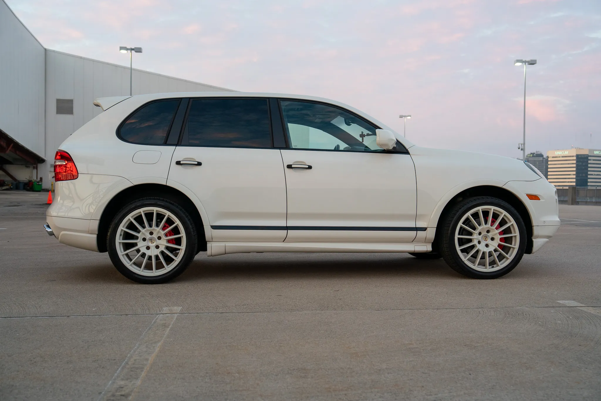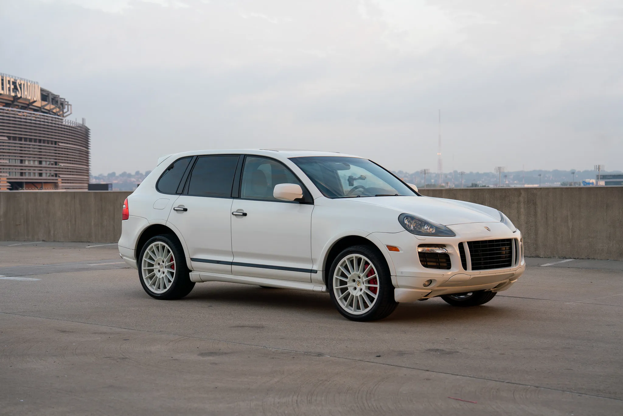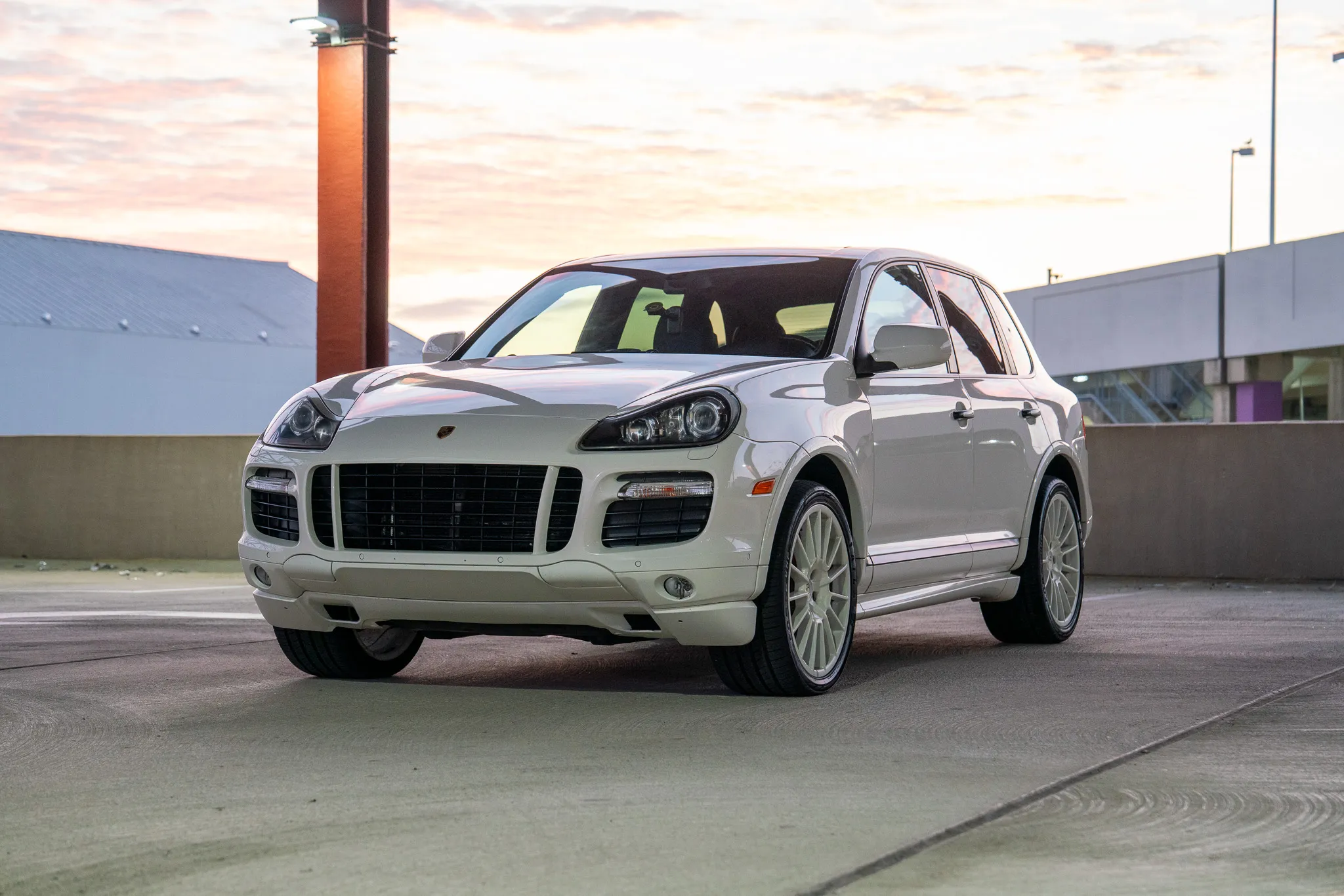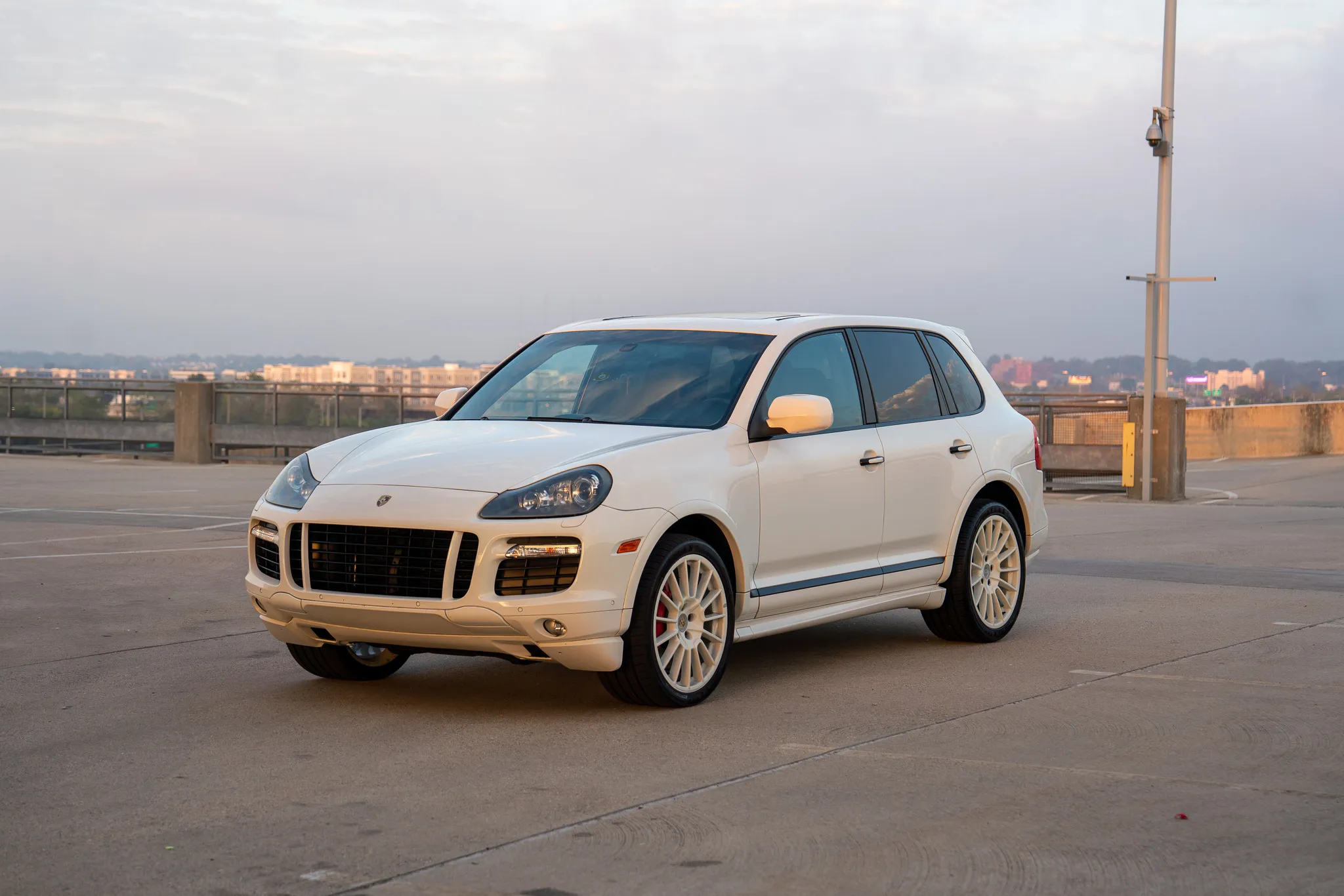 This 2010 Porsche Cayenne GTS is finished in Sand White over Black leather and was ordered with Porsche Rear Seat Entertainment, Black bi-xenon headlights, 21″ Cayenne SportPlus wheels, a Bose surround-sound system, PCM with navigation, and air suspension with PASM.