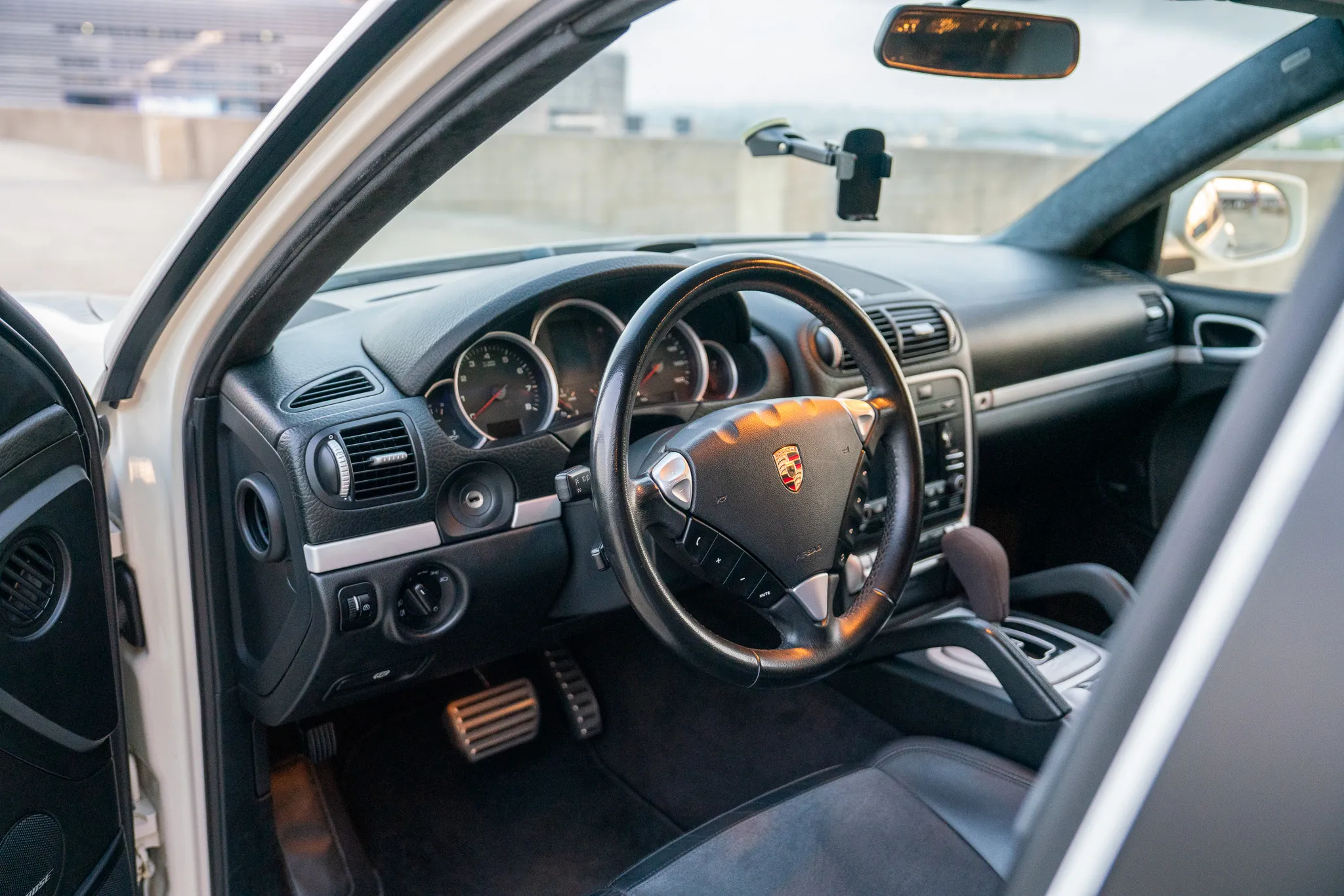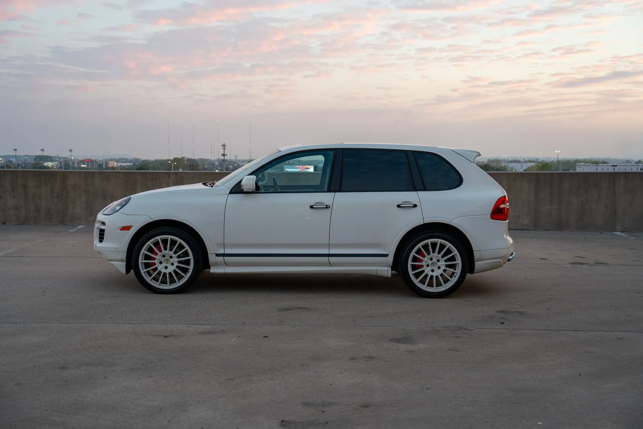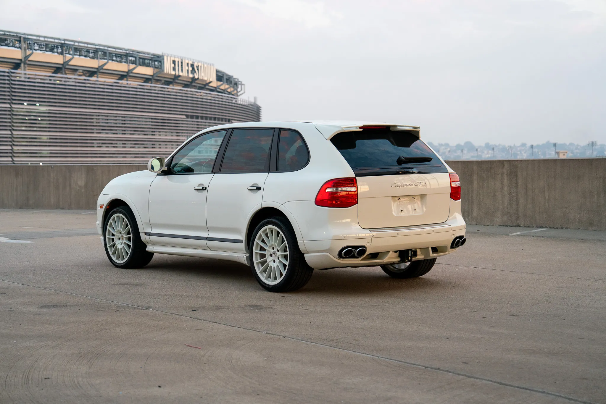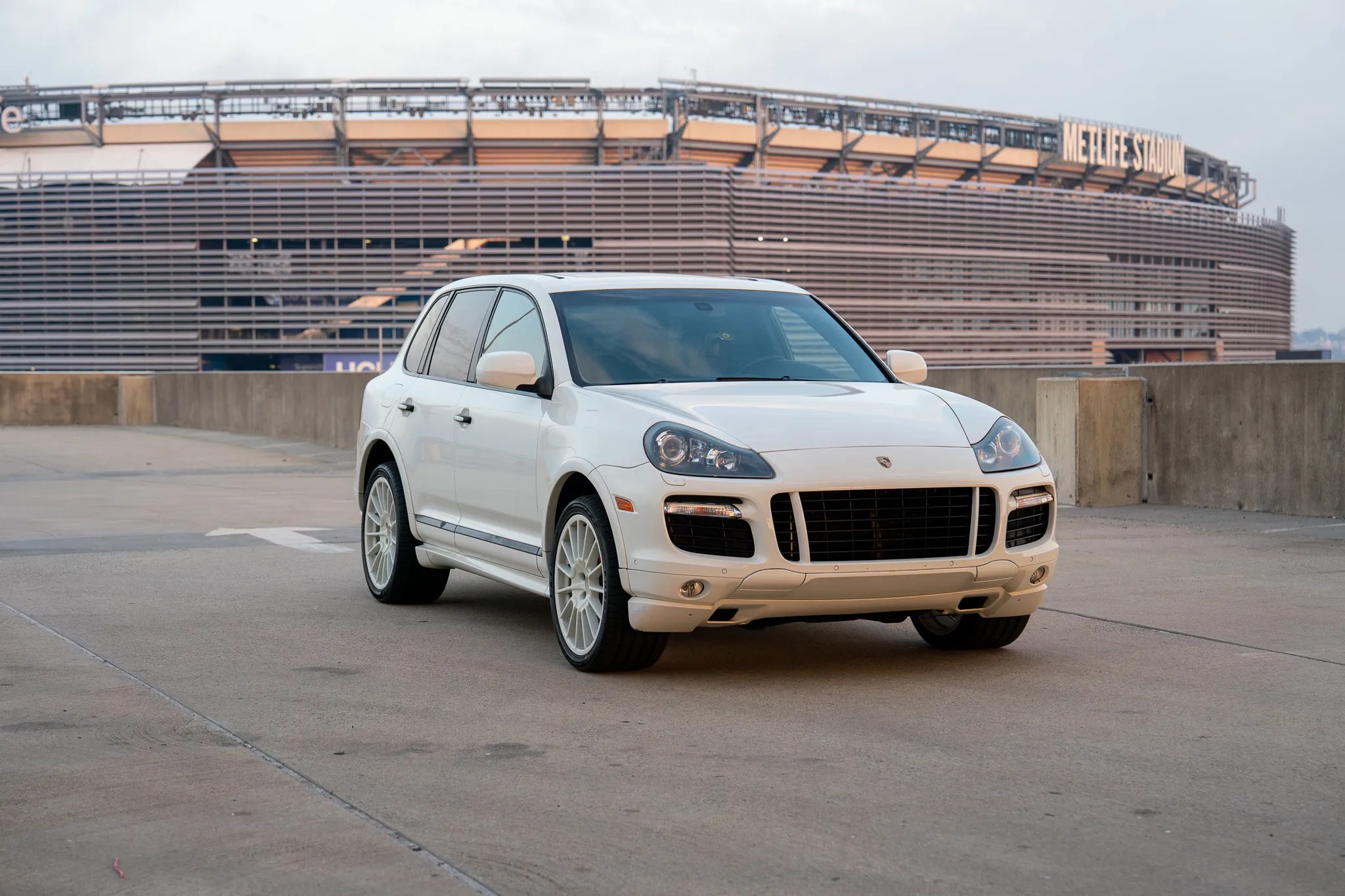 This 2010 Porsche Cayenne GTS is finished in Sand White over Black leather and was ordered with Porsche Rear Seat Entertainment, Black bi-xenon headlights, 21″ Cayenne SportPlus wheels, a Bose surround-sound system, PCM with navigation, and air suspension with PASM.
