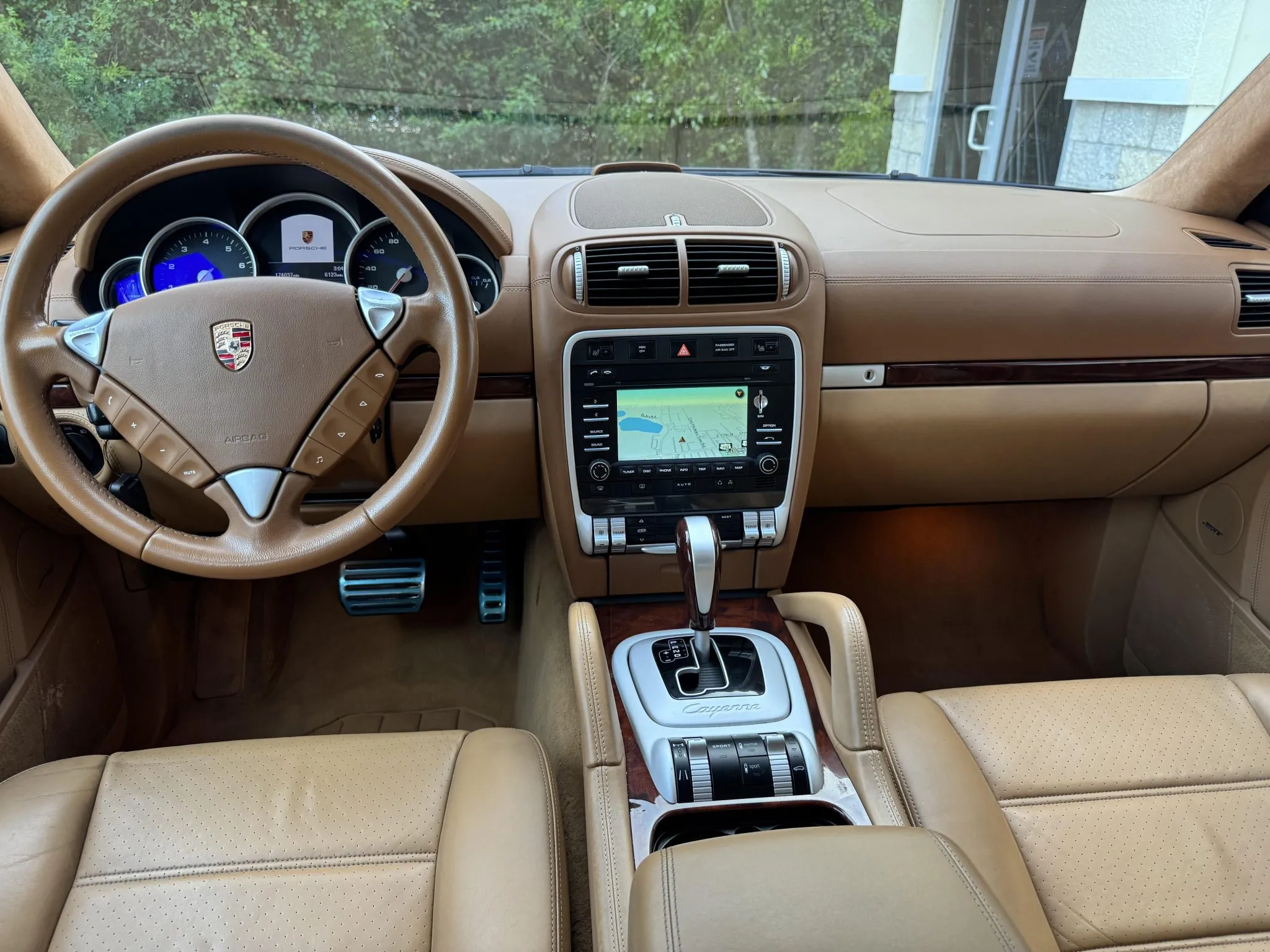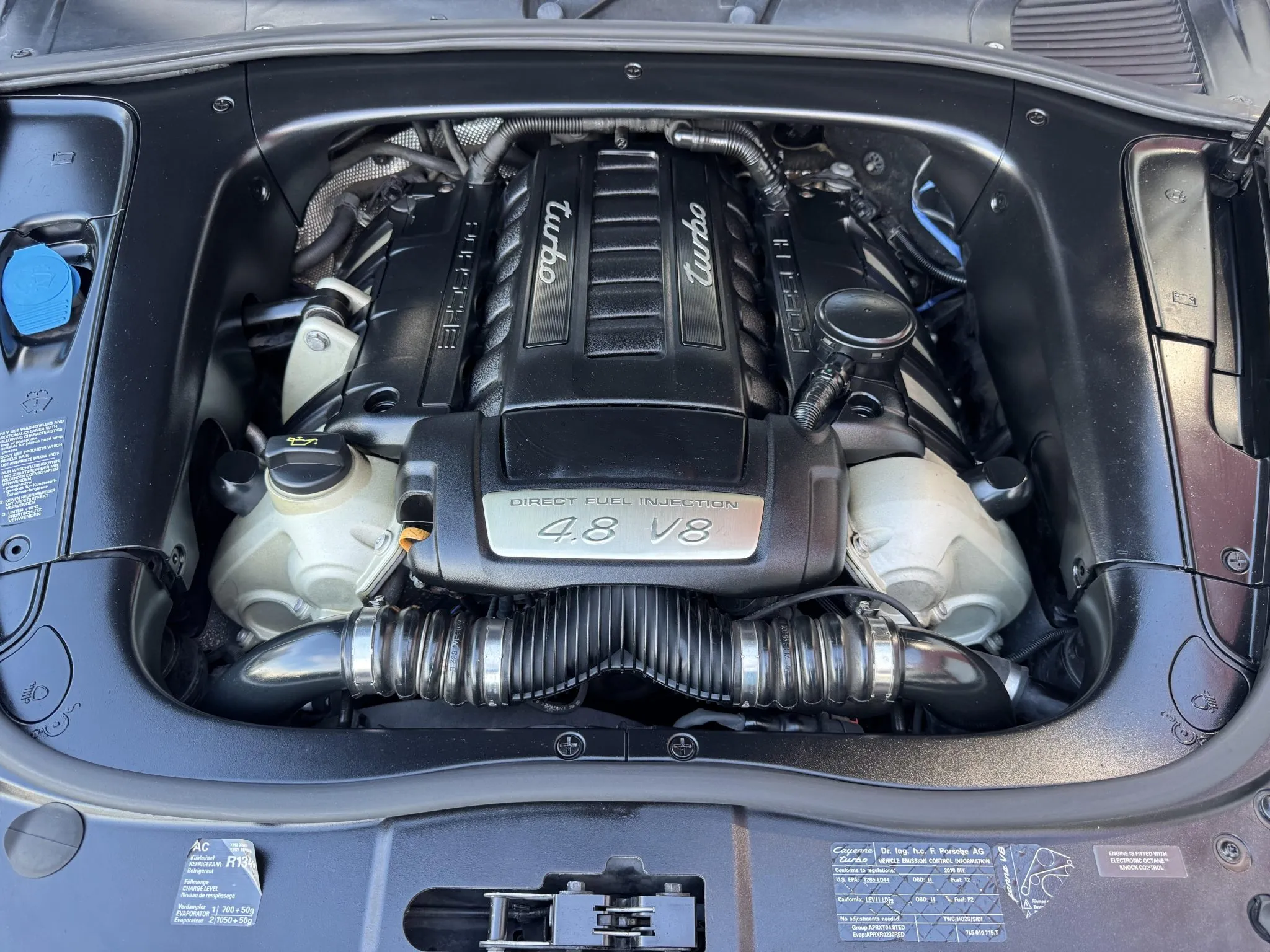 It was ordered with the Off-Road Technology and Dark Wood packages as well as running boards, 19″ Cayenne Design wheels, heated power-adjustable front seats, front and rear ParkAssist, and PCM with navigation. Power is provided by a twin-turbocharged 4.8-liter V8 paired with a six-speed Tiptronic S automatic transmission.