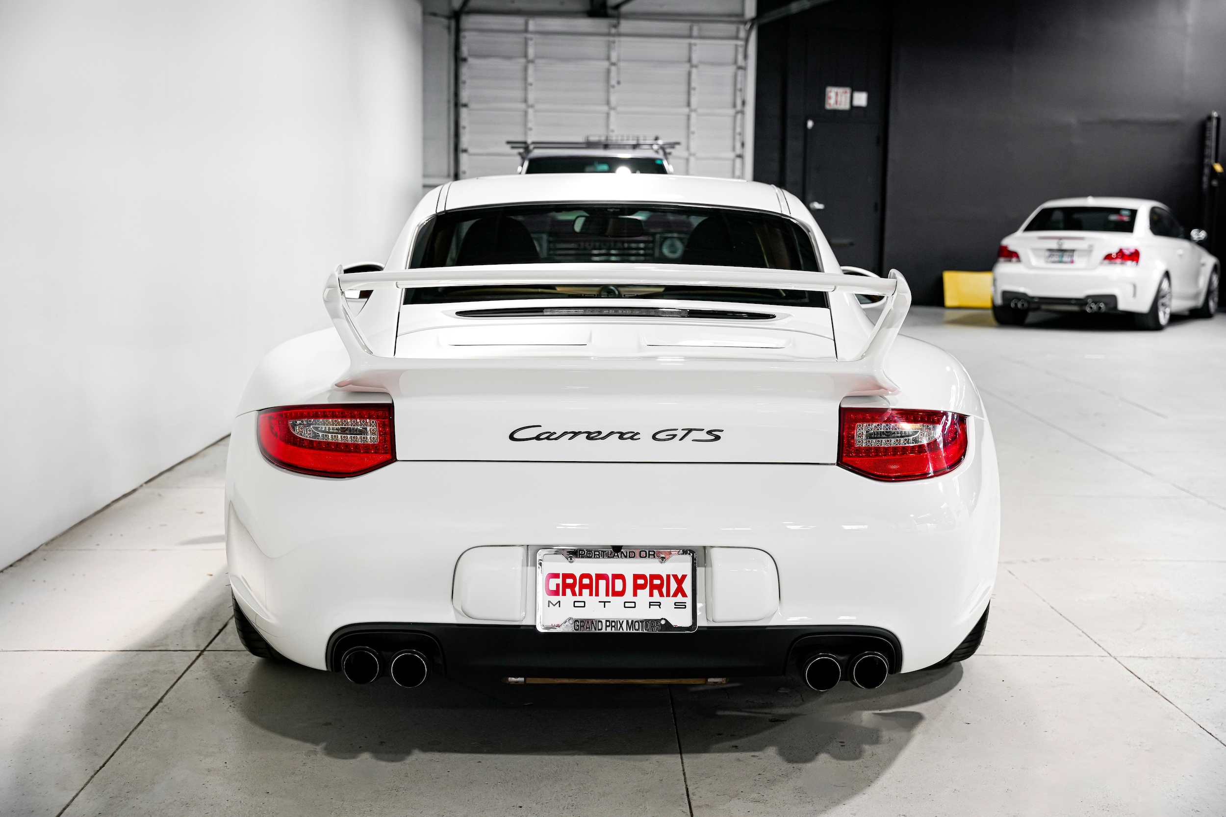 This 2011 Porsche 911 Carrera GTS Coupe represents a compelling blend of performance and exclusivity, optioned from the factory with the Aerokit Cup, carbon-fiber front sport seats, the Sport Chrono Package Plus, and a limited-slip differential. Finished in Carrara White over a Sand Beige leather interior, it is powered by a 3.8-liter flat-six producing 408 horsepower, paired with a seven-speed PDK dual-clutch transmission and Porsche Active Suspension Management (PASM).