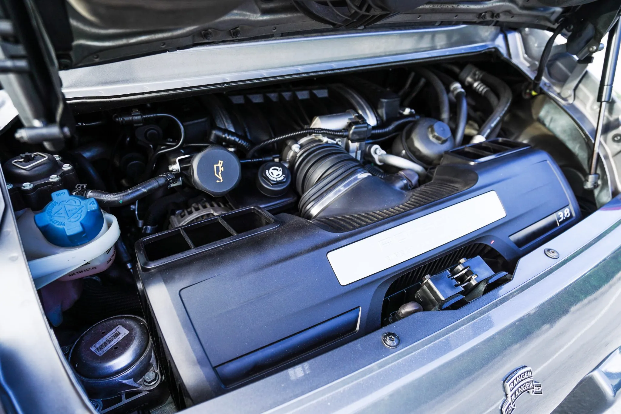 It is finished in Meteor Gray Metallic over Sand Beige leather and is powered by a 3.8-liter flat-six paired with a six-speed manual transaxle.