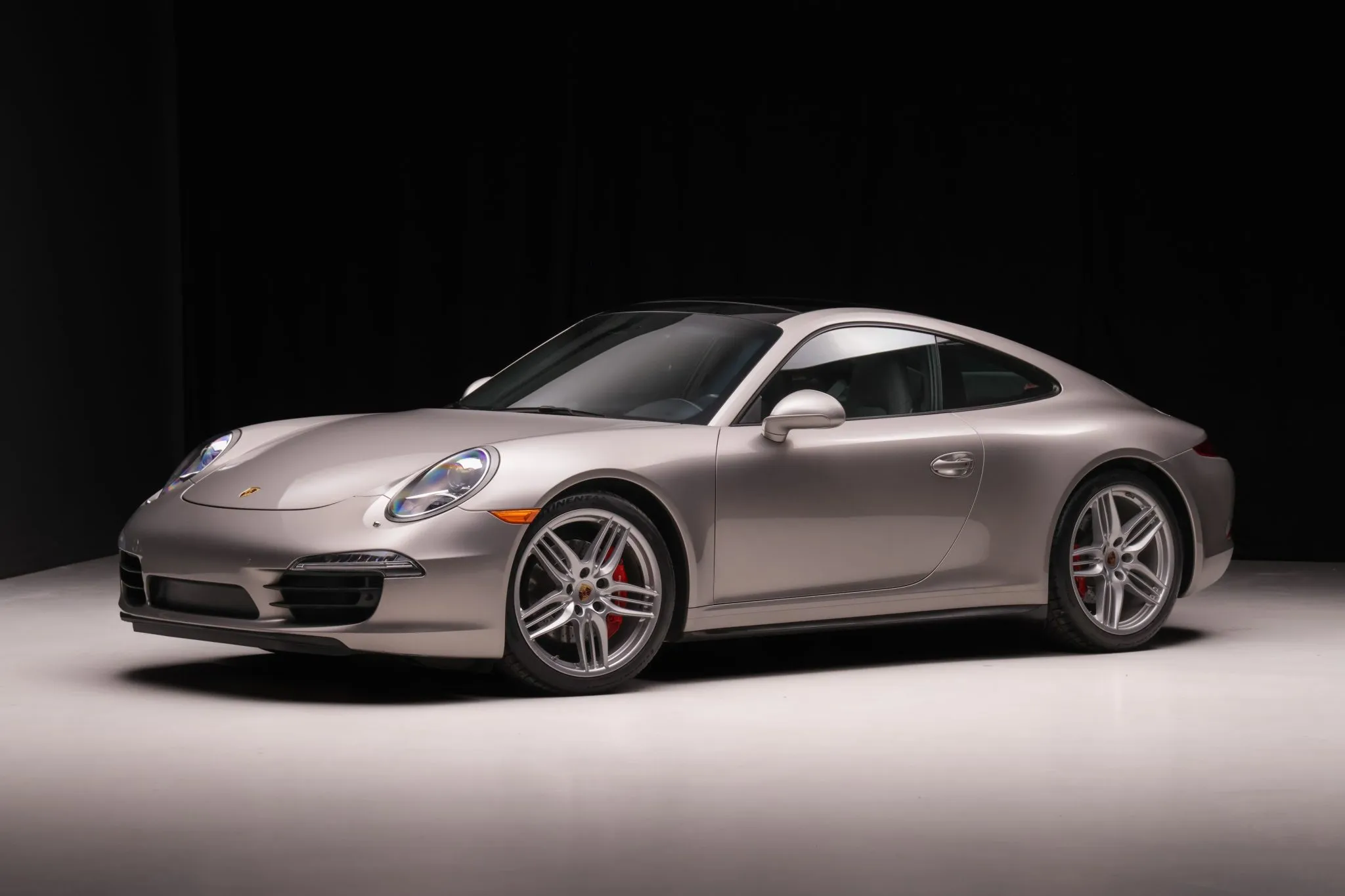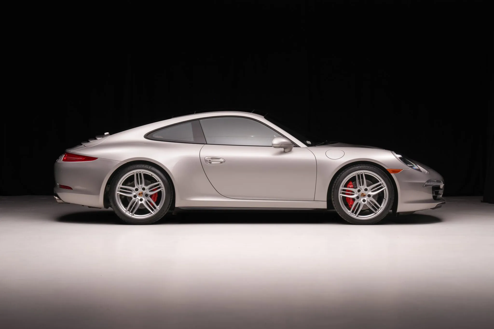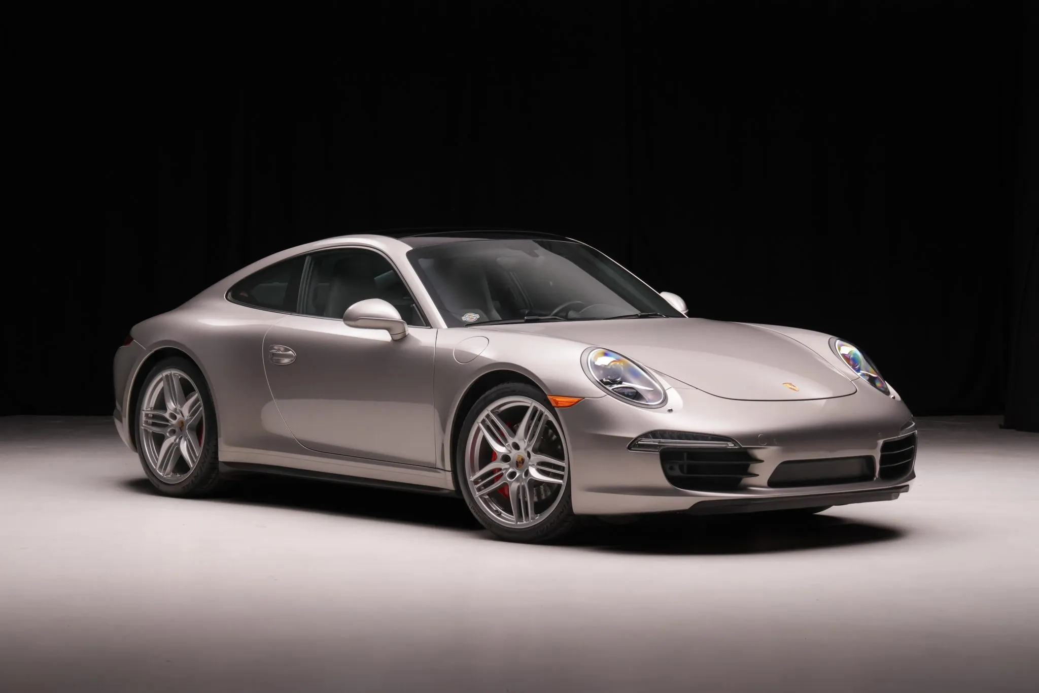 This 2013 Porsche 911 Carrera 4S coupe is powered by a 3.8-liter flat-six that drives all four wheels through a seven-speed PDK dual-clutch transaxle and is finished in Platinum Silver Metallic over Platinum Gray leather.