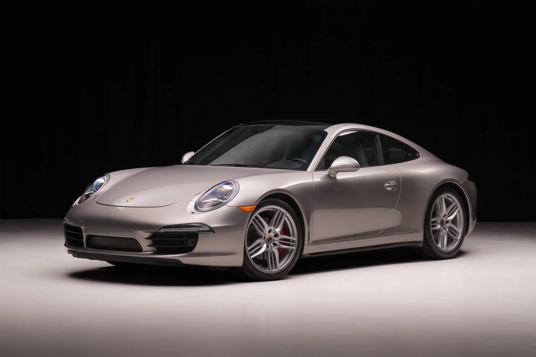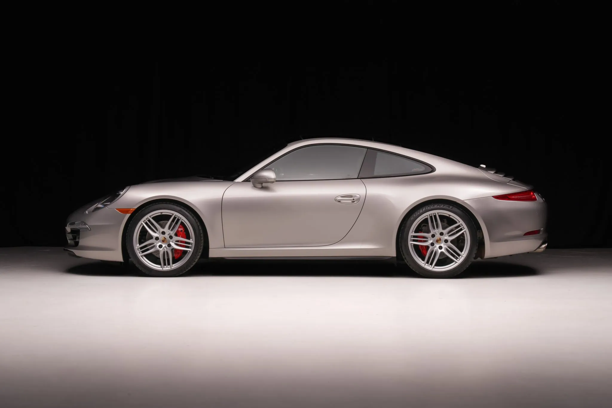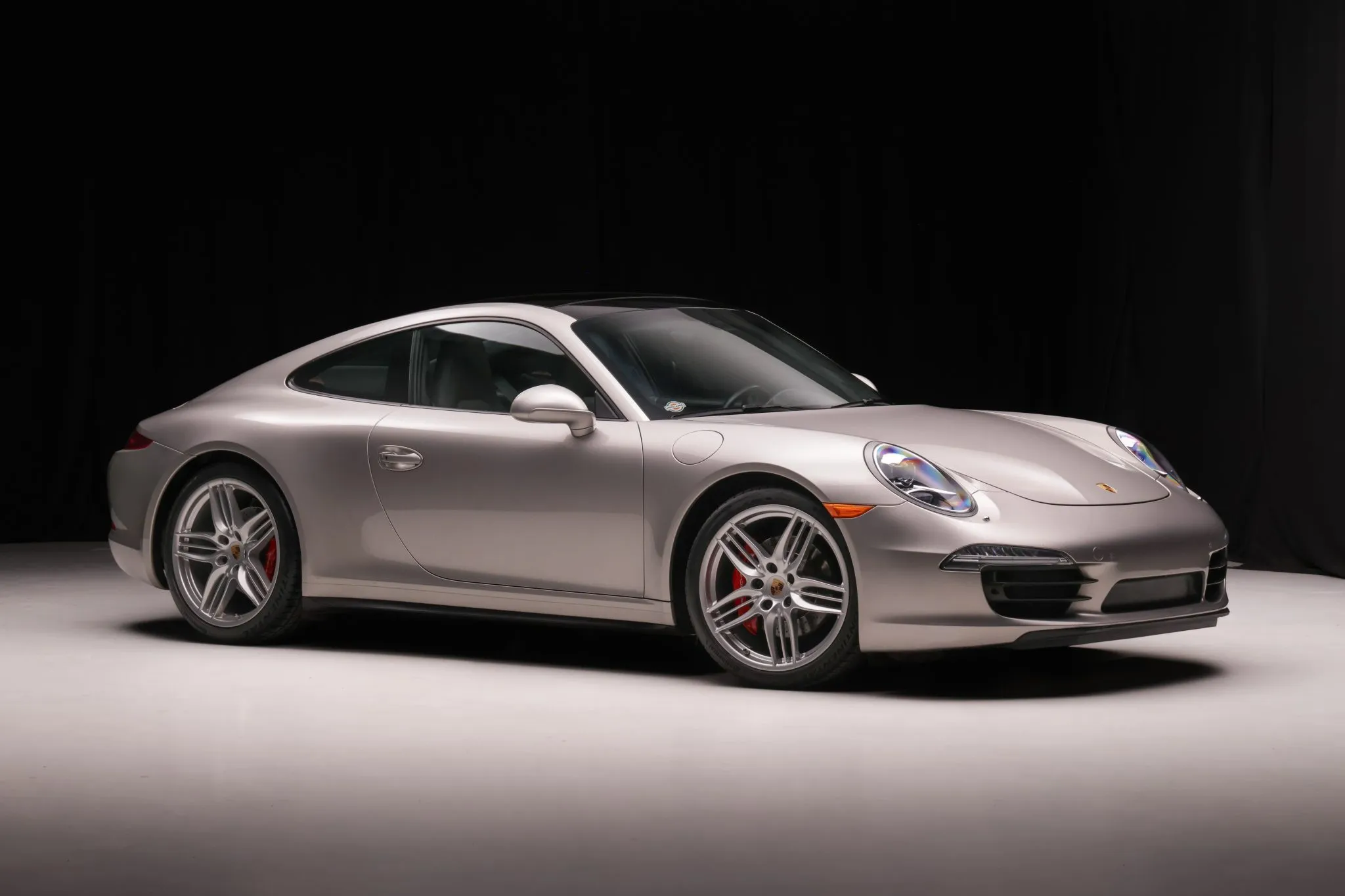 This 2013 Porsche 911 Carrera 4S coupe is powered by a 3.8-liter flat-six that drives all four wheels through a seven-speed PDK dual-clutch transaxle and is finished in Platinum Silver Metallic over Platinum Gray leather.