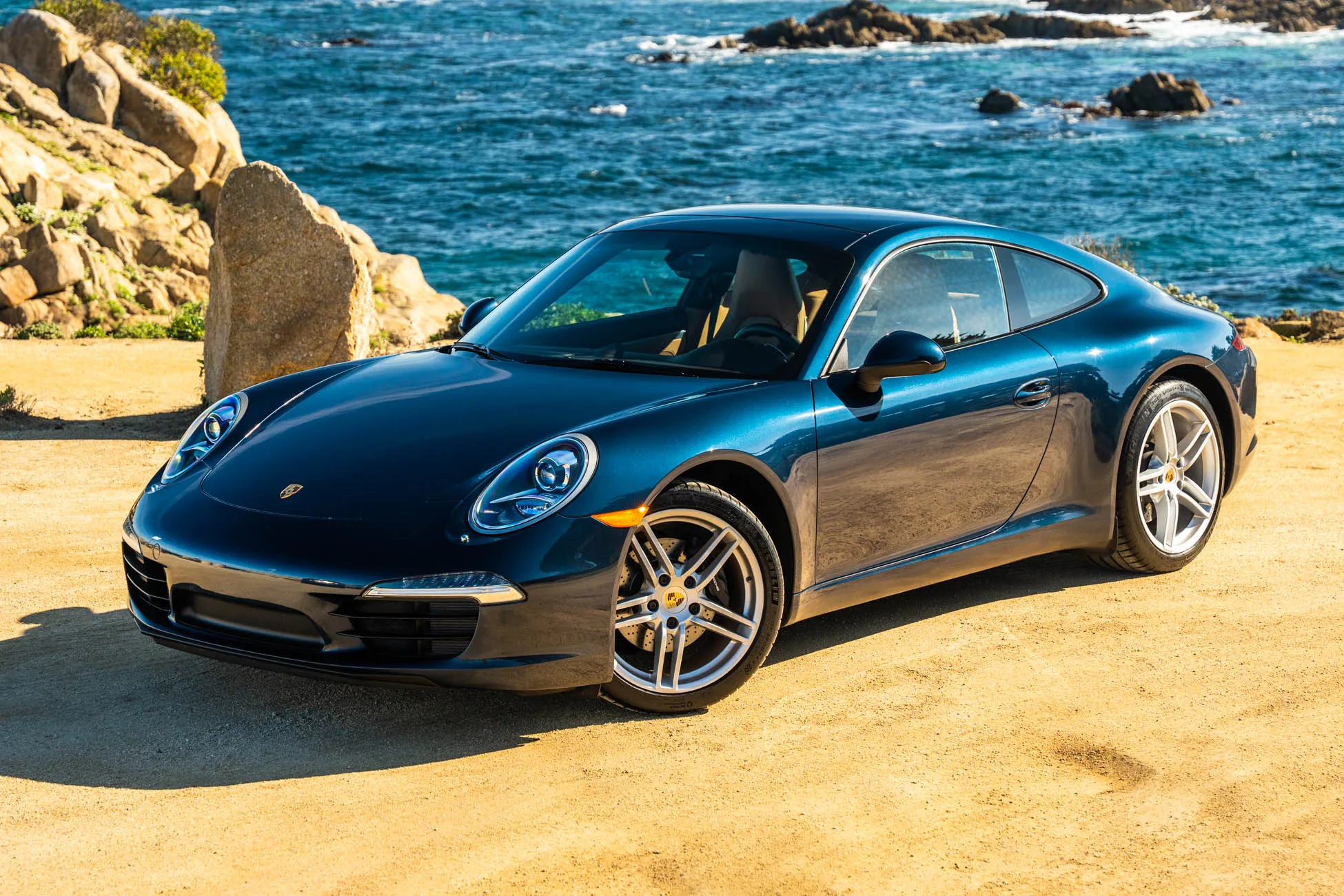 It is powered by a 3.4-liter flat-six paired with a seven-speed PDK automatic transaxle and is finished in Dark Blue Metallic over tan and Espresso Natural leather upholstery. The car has 16k miles and is further equipped with 19″ Carrera alloy wheels, bi-xenon headlights with PDLS, a Bose sound system, a sunroof, auto-dimming mirrors, heated and ventilated front seats, Porsche Entry & Drive, Power Steering Plus, a SportDesign steering wheel, PCM with navigation, and dual-zone automatic climate control.