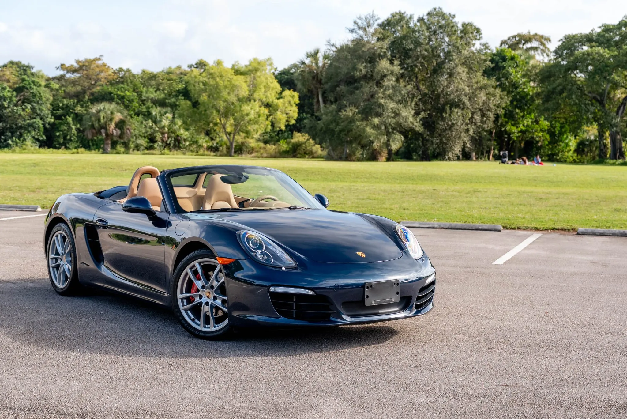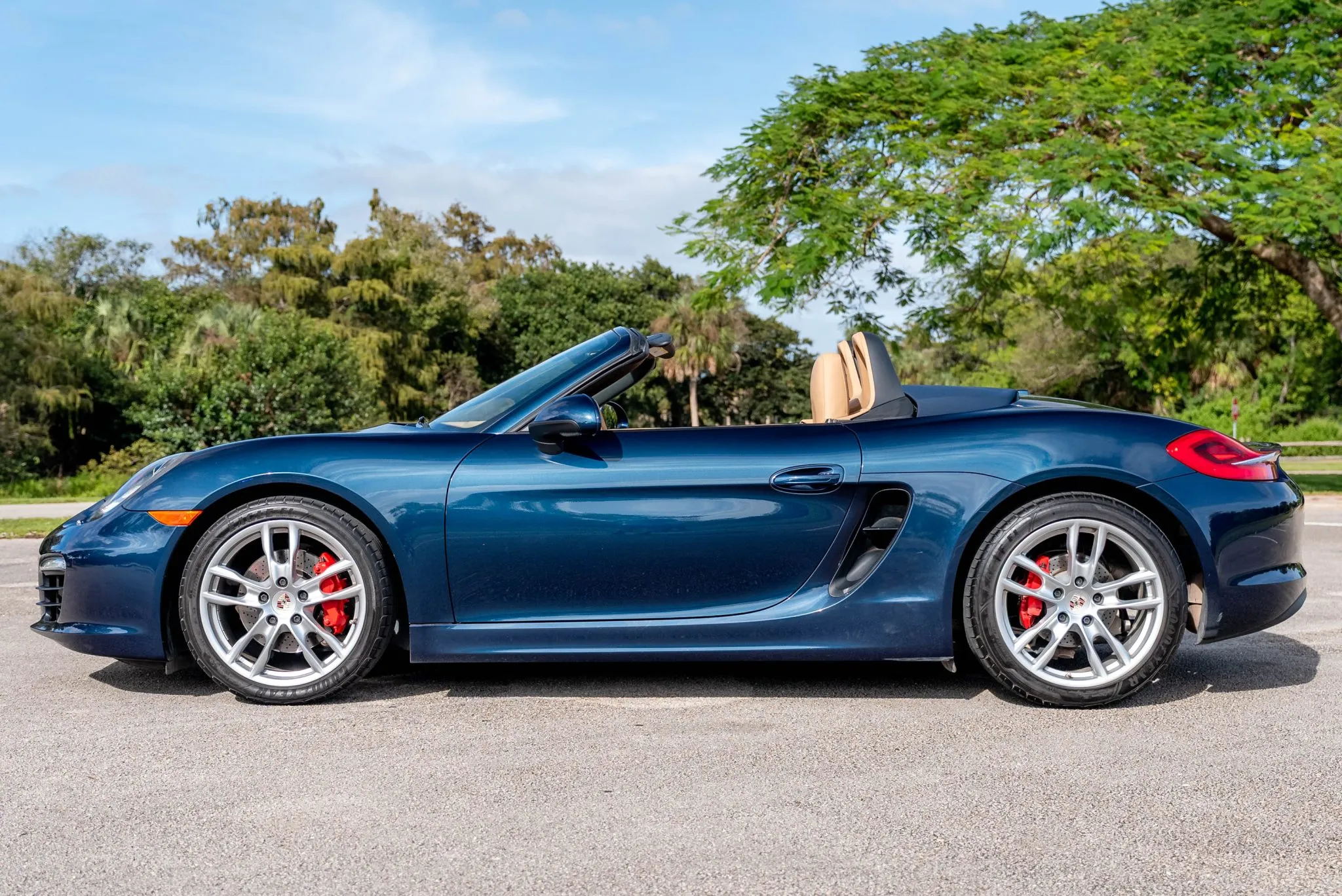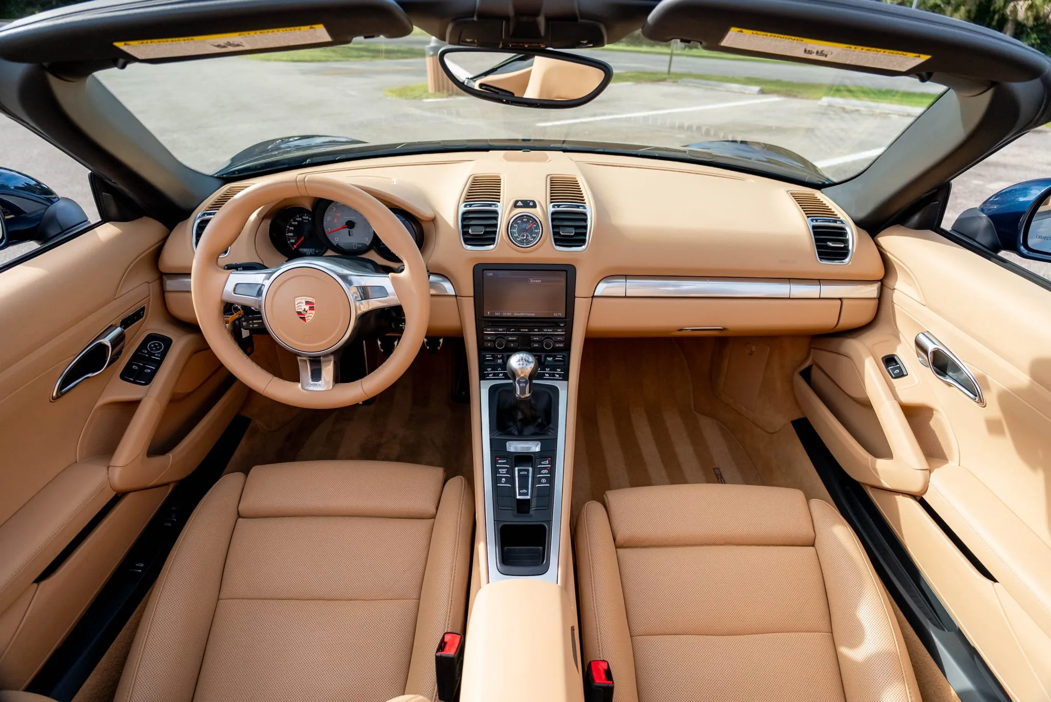 This 2013 Porsche Boxster S is finished in Dark Blue Metallic over Luxor Beige Partial leather and is powered by a 3.4-liter flat-six paired with a six-speed manual transaxle. The car remained with the original owner in Virginia until early 2025, and it now has 36k miles.