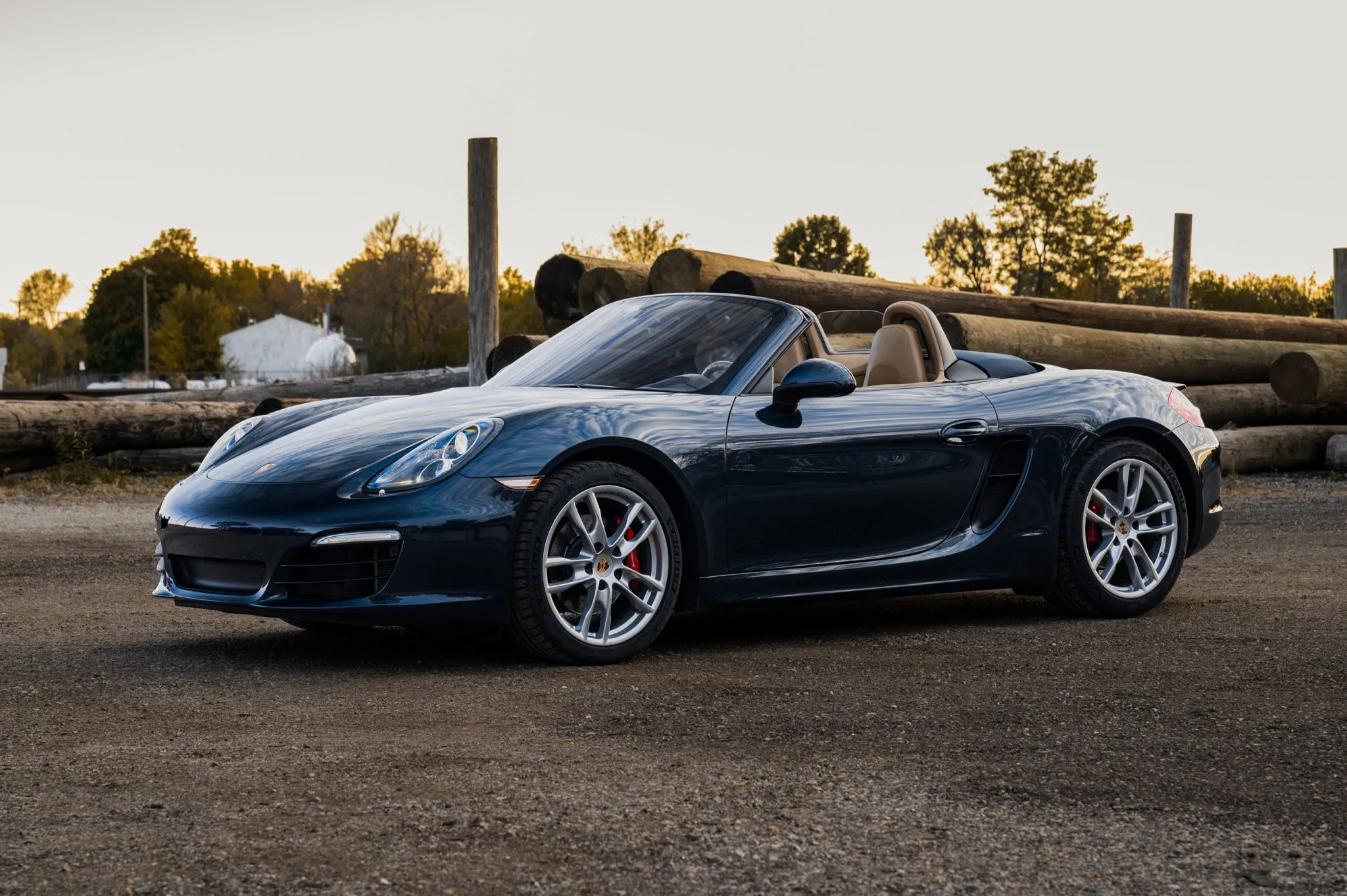 This 2014 Porsche Boxster S is finished in Dark Blue Metallic over Luxor Beige leather and is modified with an Espresso leather-trimmed dashboard and center console, as well as a Porsche Sport Exhaust and an FVD Brombacher tune. The owner purchased the roadster out of Maine in 2023 and has since added approximately 9k of the 34k indicated miles.