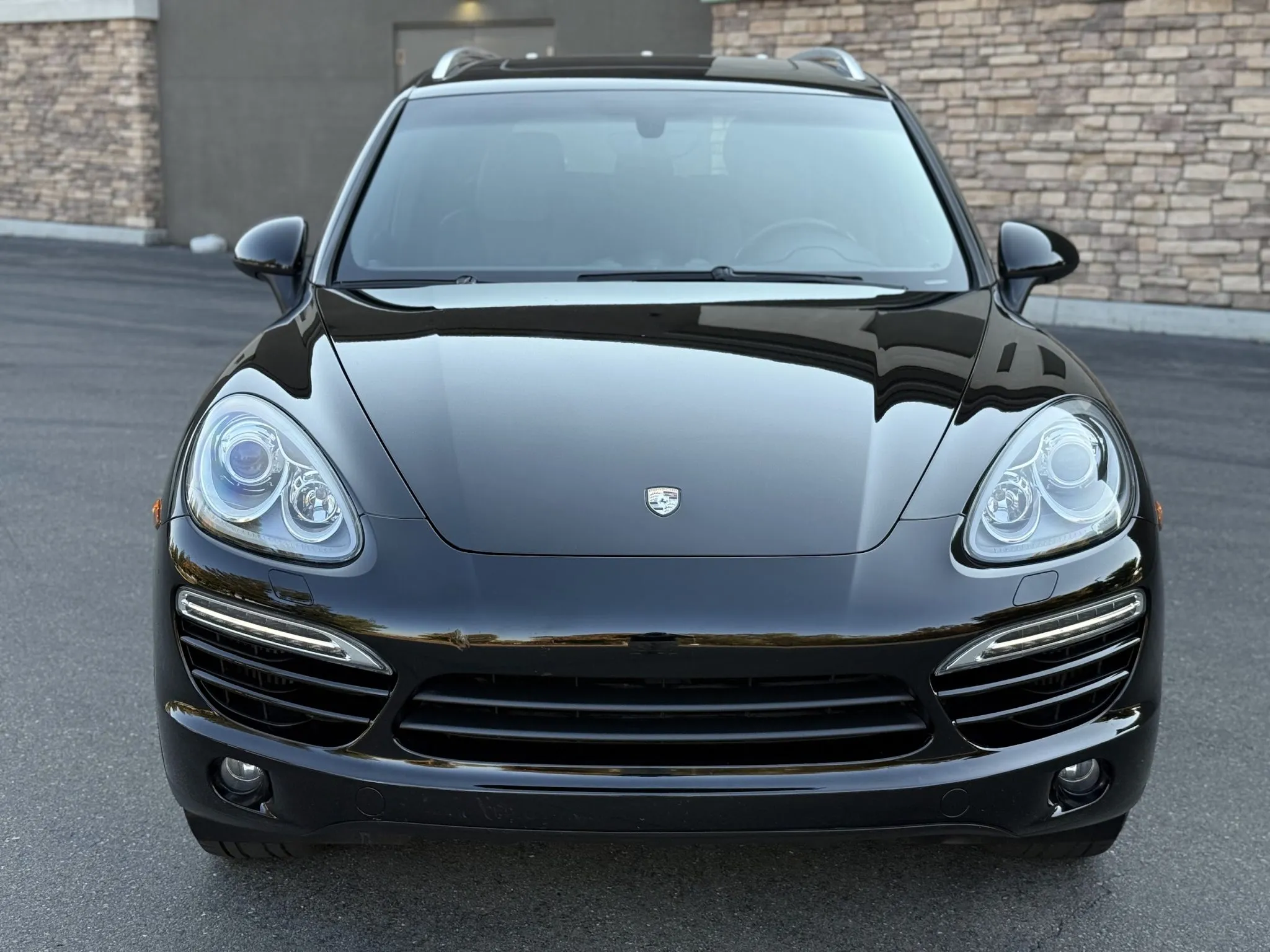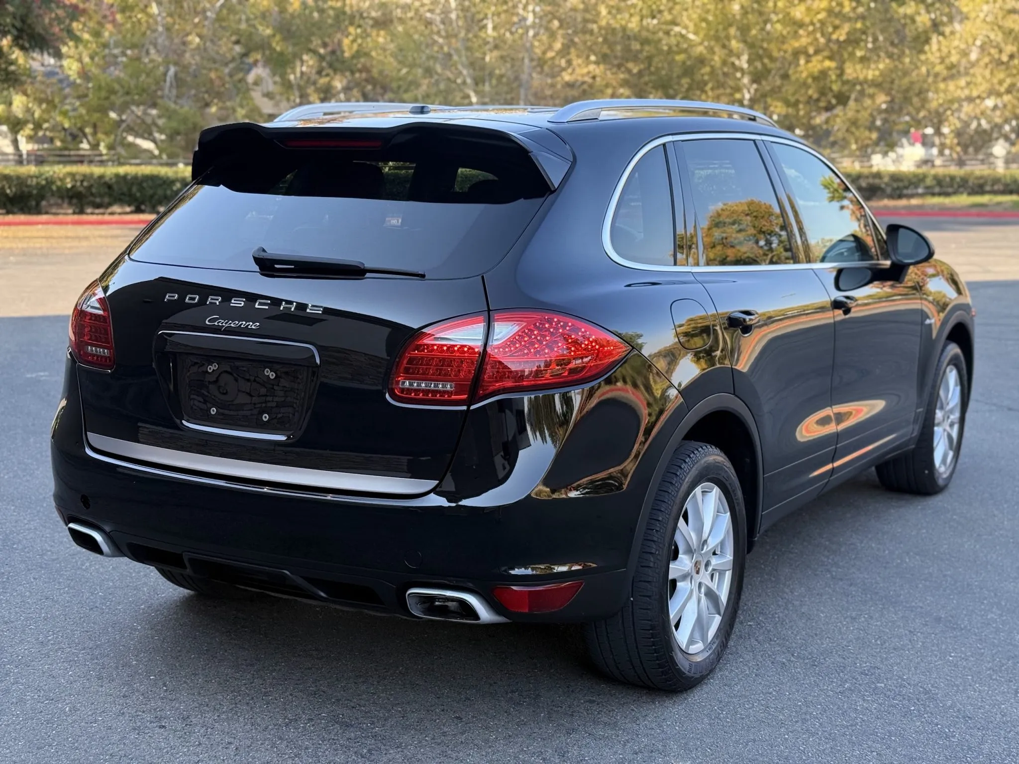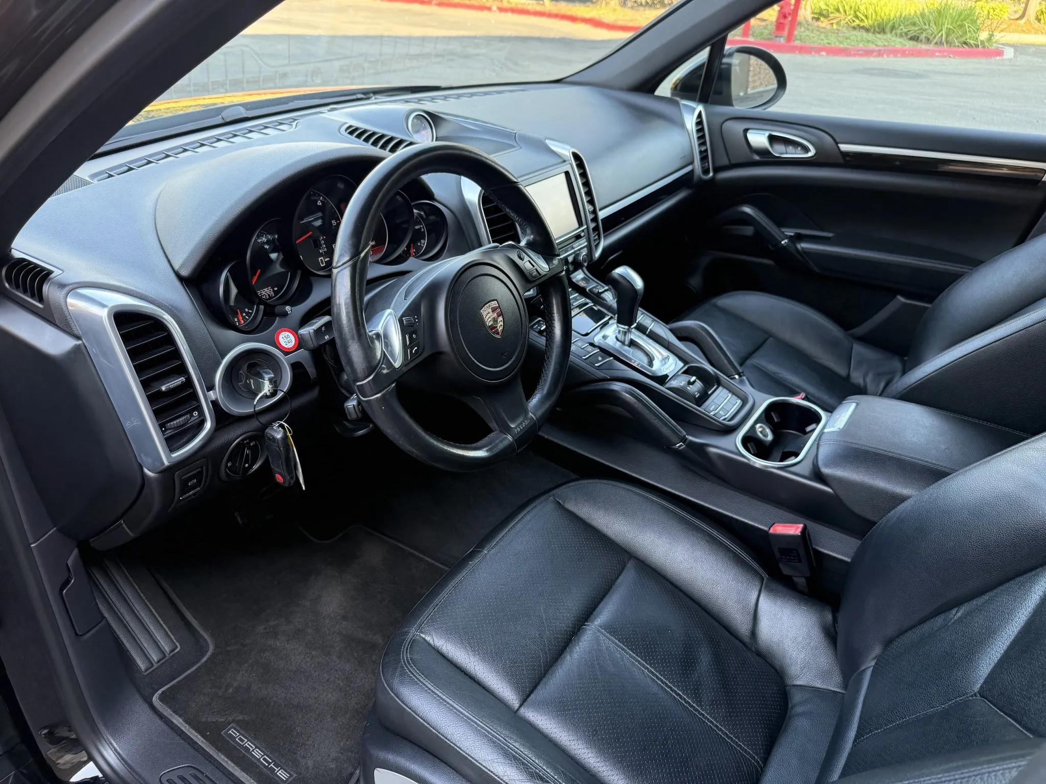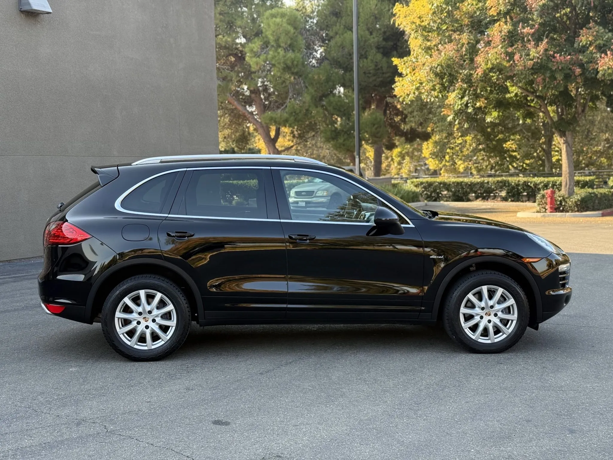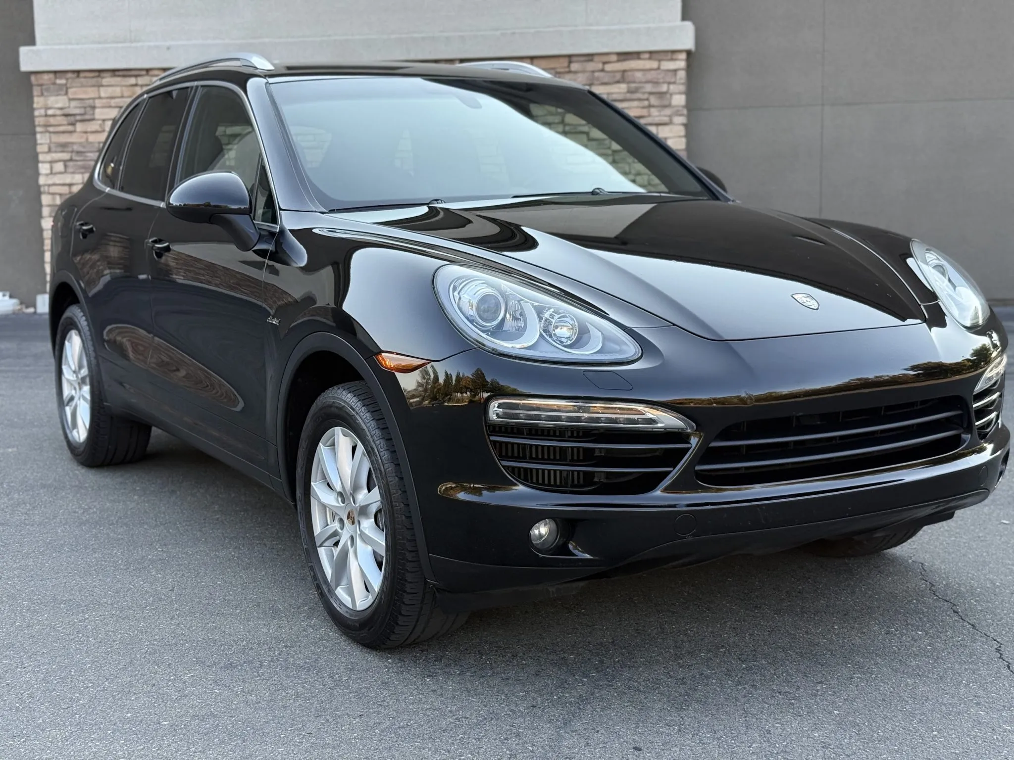 This 2014 Porsche Cayenne Diesel is finished in black over black leather and is powered by a turbocharged 3.0-liter diesel V6 linked with an eight-speed automatic transmission.