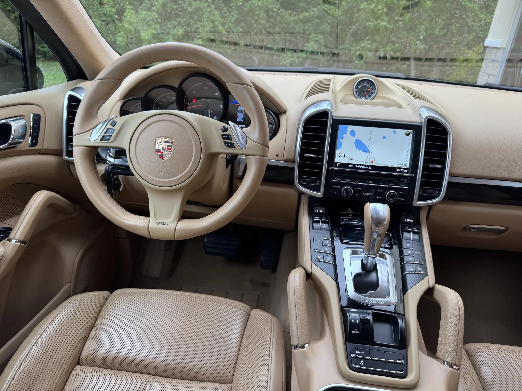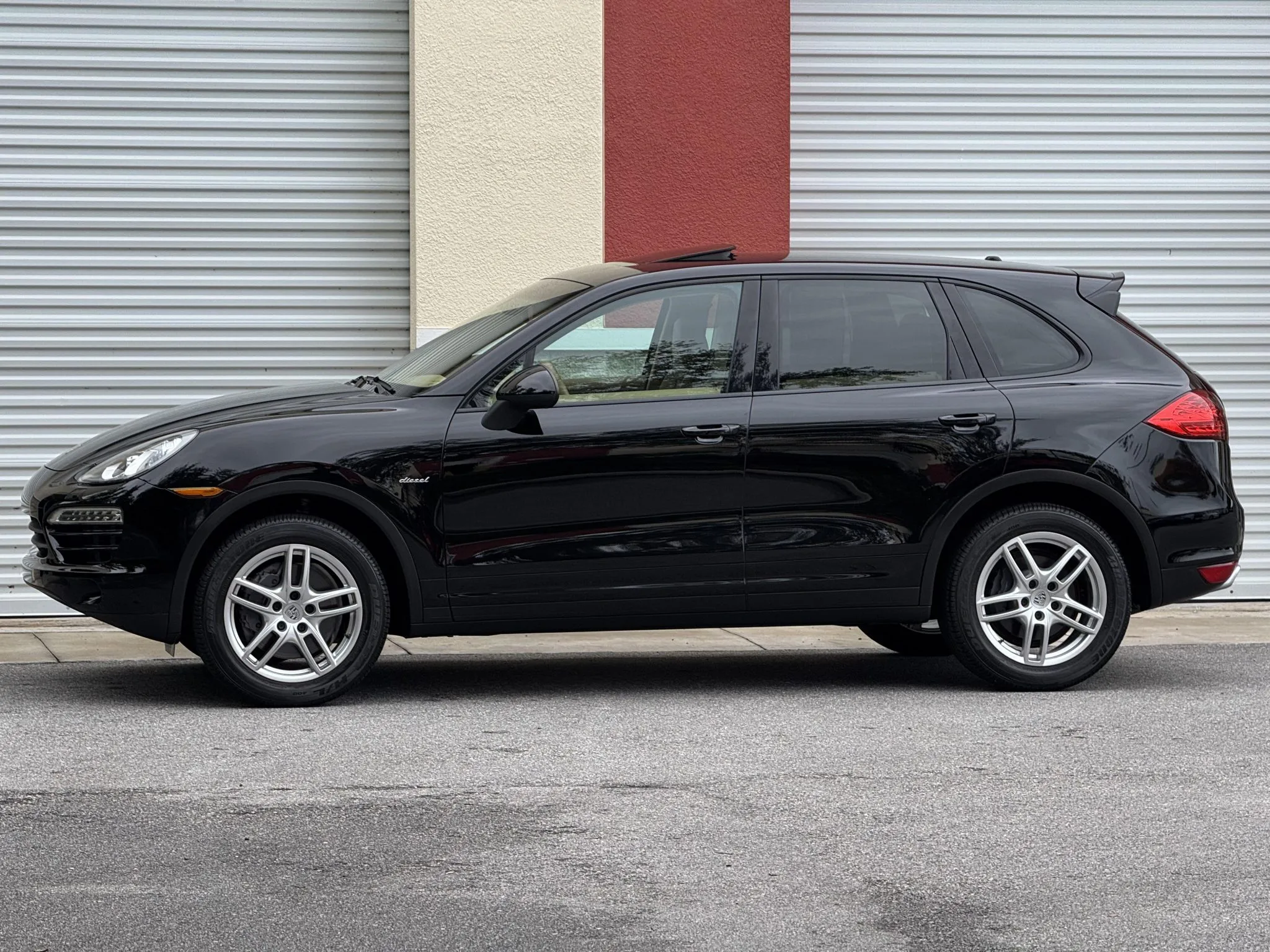 This 2014 Porsche Cayenne Diesel is powered by a turbocharged 3.0-liter diesel V6 linked with an eight-speed Tiptronic S automatic transmission and a locking center differential.