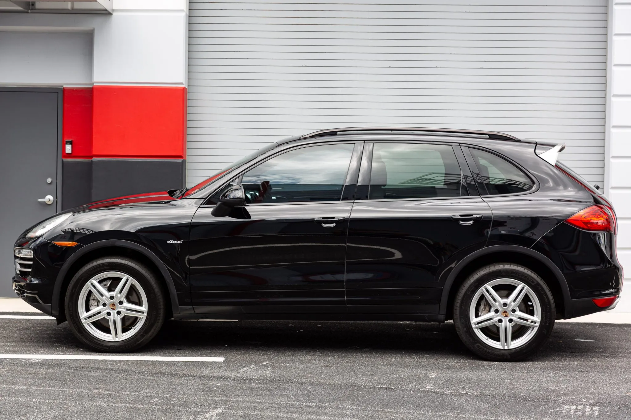 This 2014 Porsche Cayenne Diesel is a Platinum Edition example that is powered by a turbocharged 3.0-liter diesel V6 linked with an eight-speed Tiptronic S automatic transmission and a locking center differential.