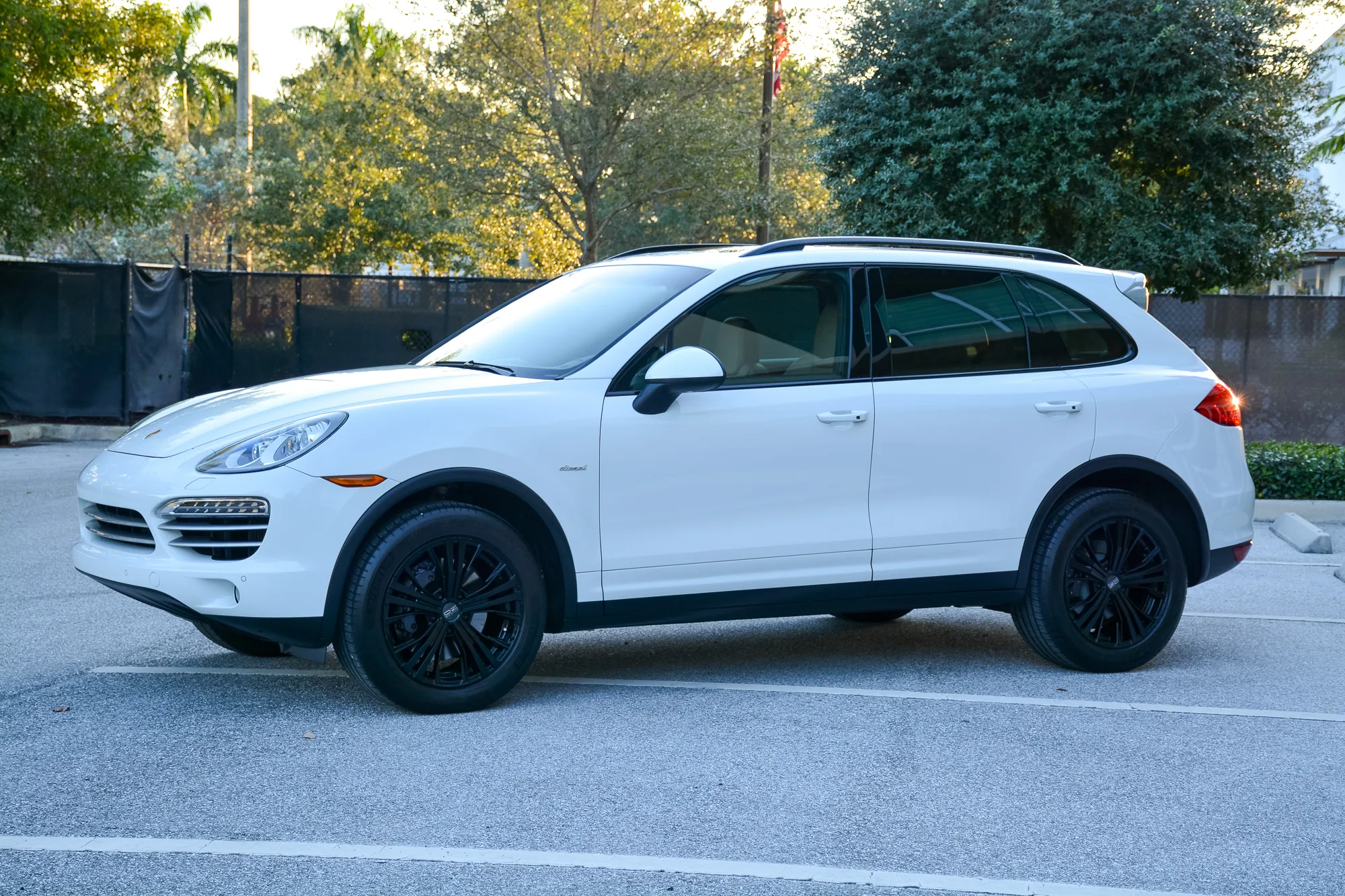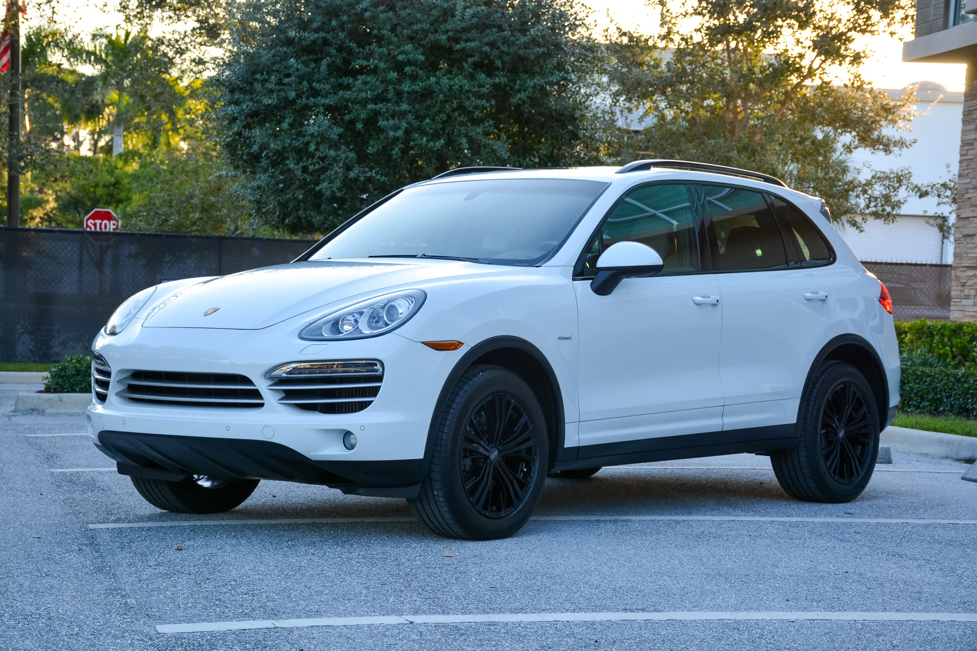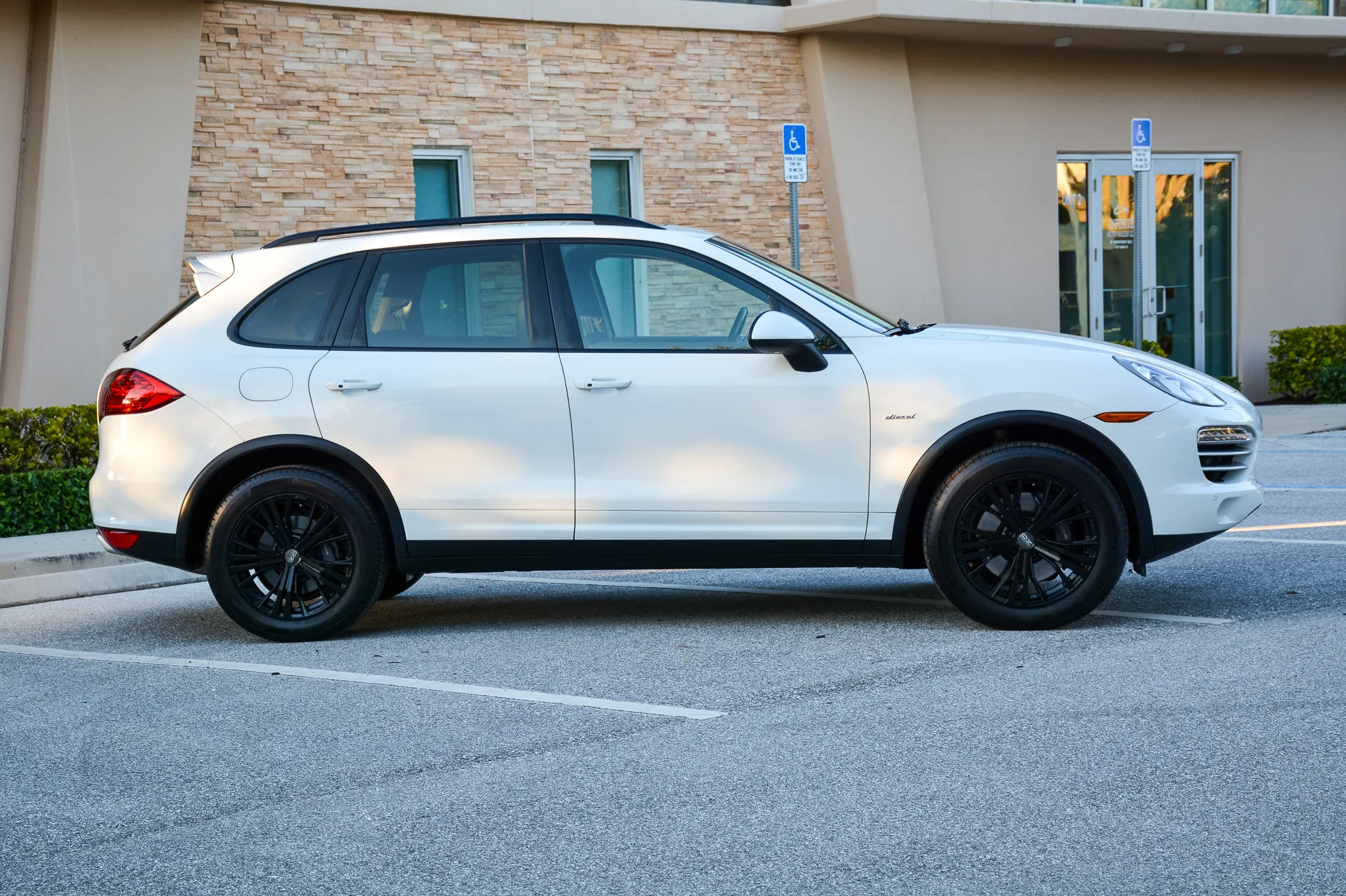 This 2014 Porsche Cayenne Diesel is a Platinum Edition example finished in White over Light Tartufo and Umber leather, and it has 68k miles following history with the original owner in Florida until 2025.