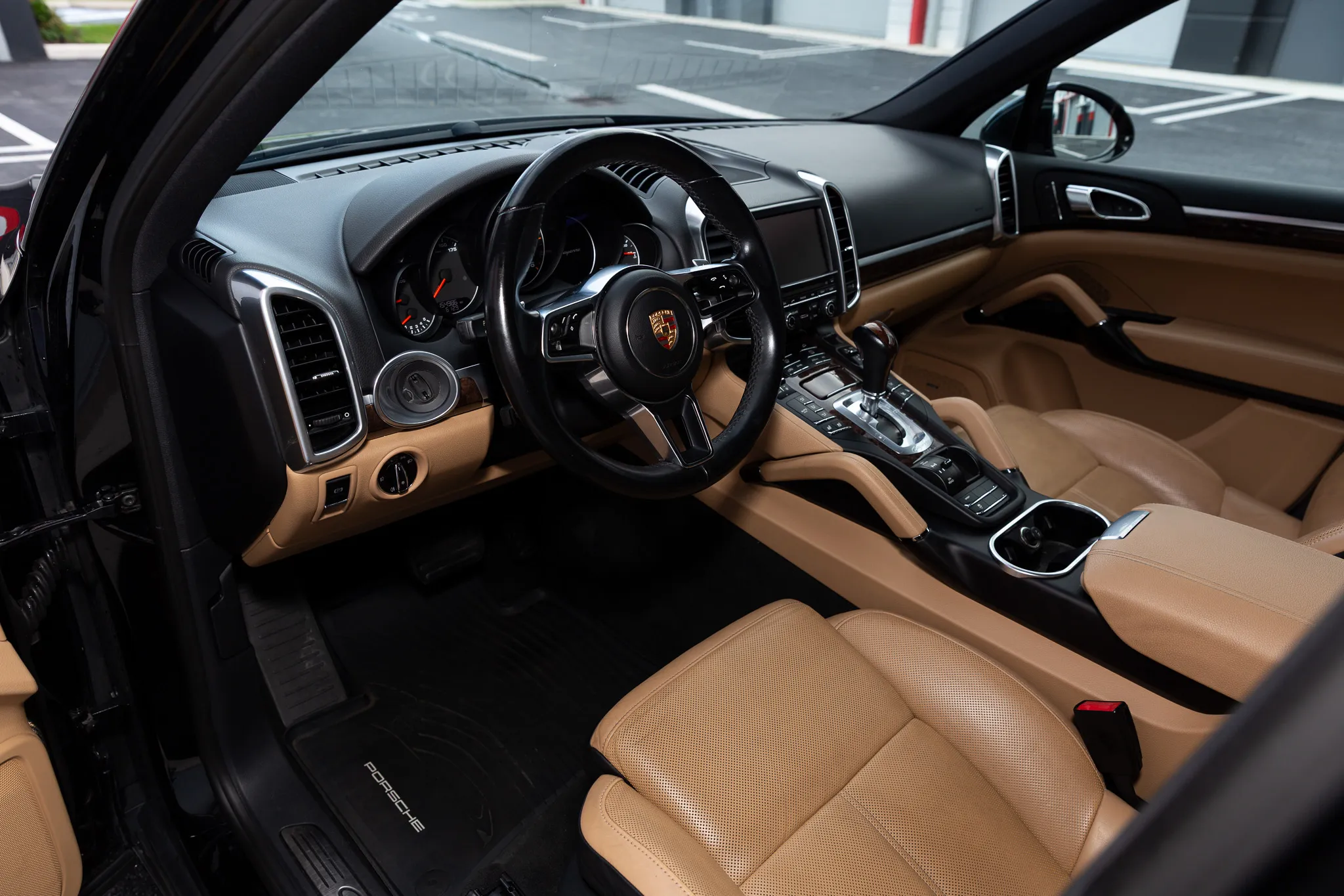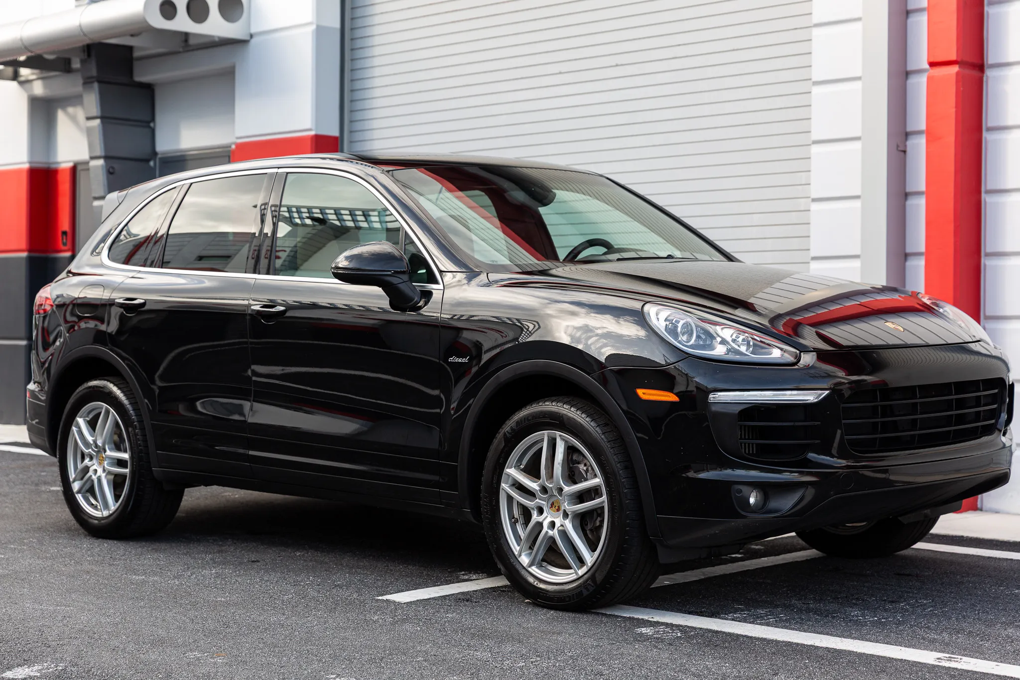 This 2015 Porsche Cayenne Diesel is powered by a turbocharged 3.0-liter diesel V6 linked with an eight-speed Tiptronic S automatic transmission and a locking center differential.