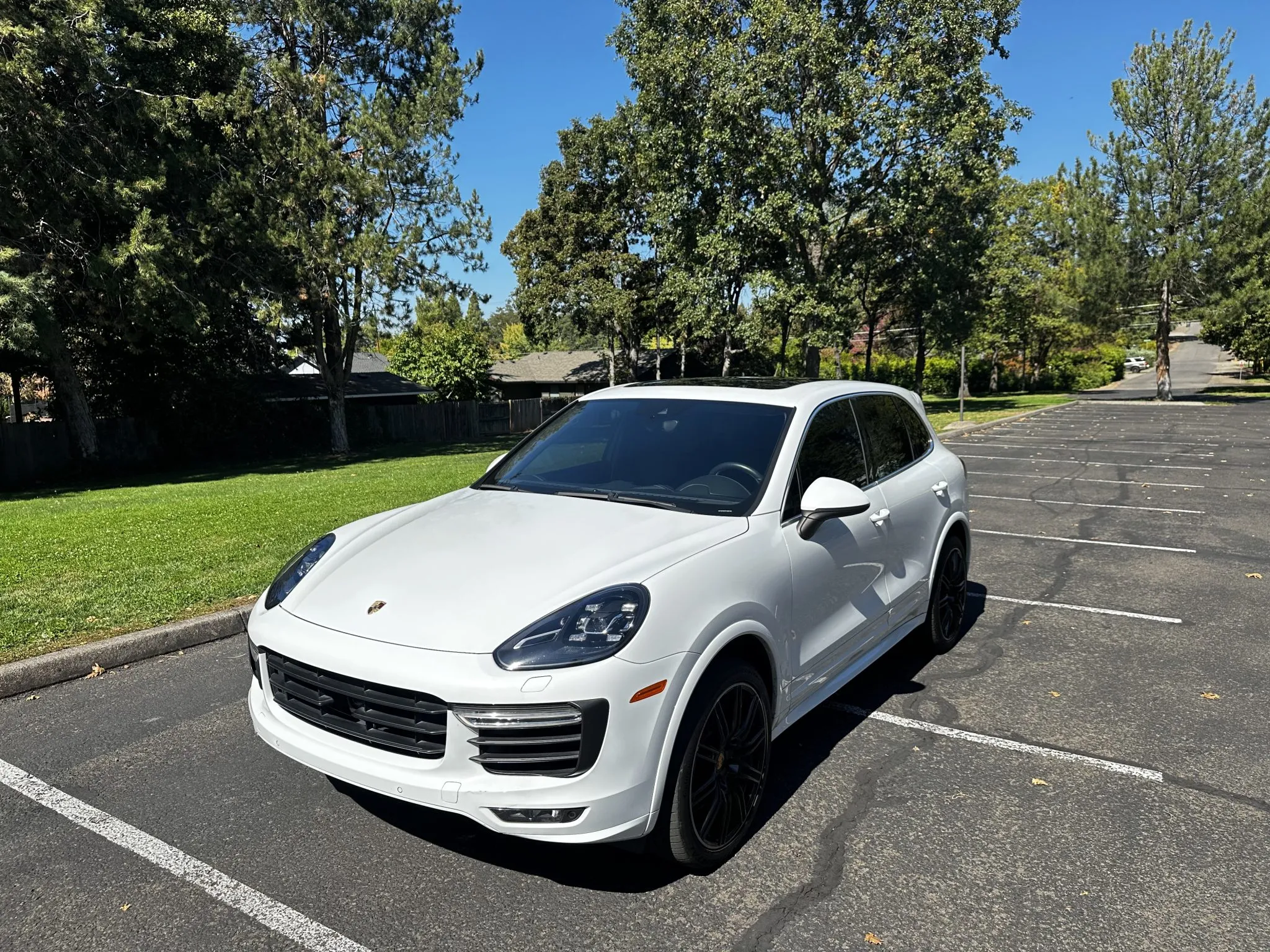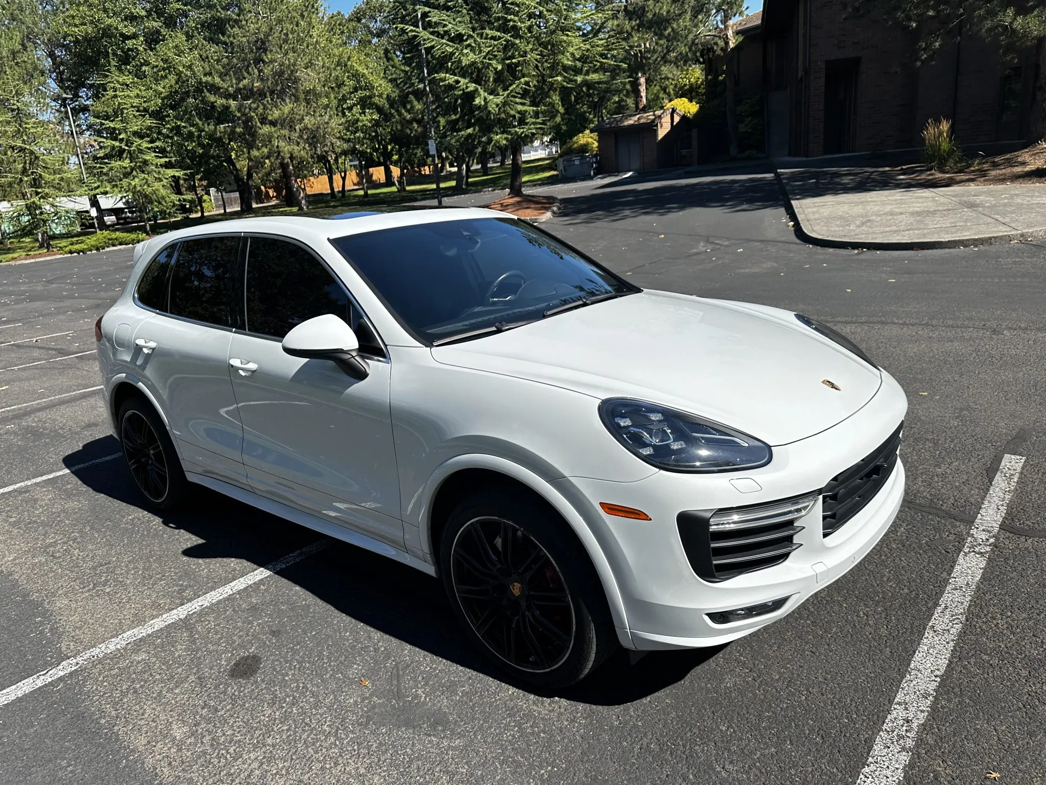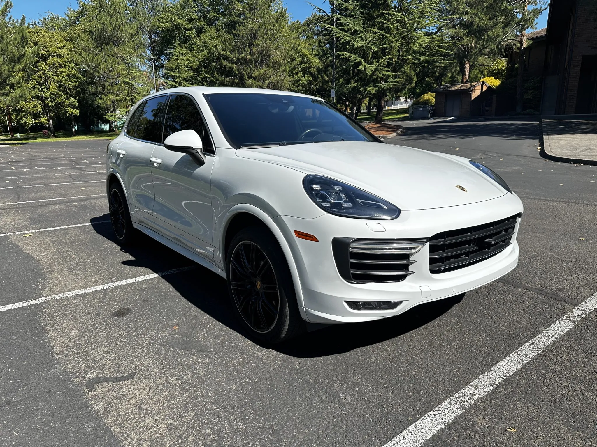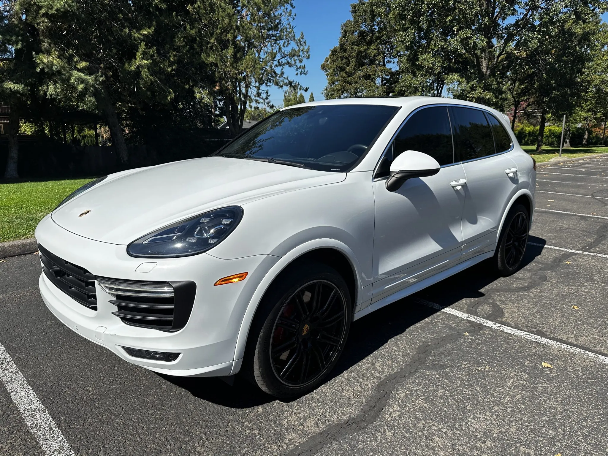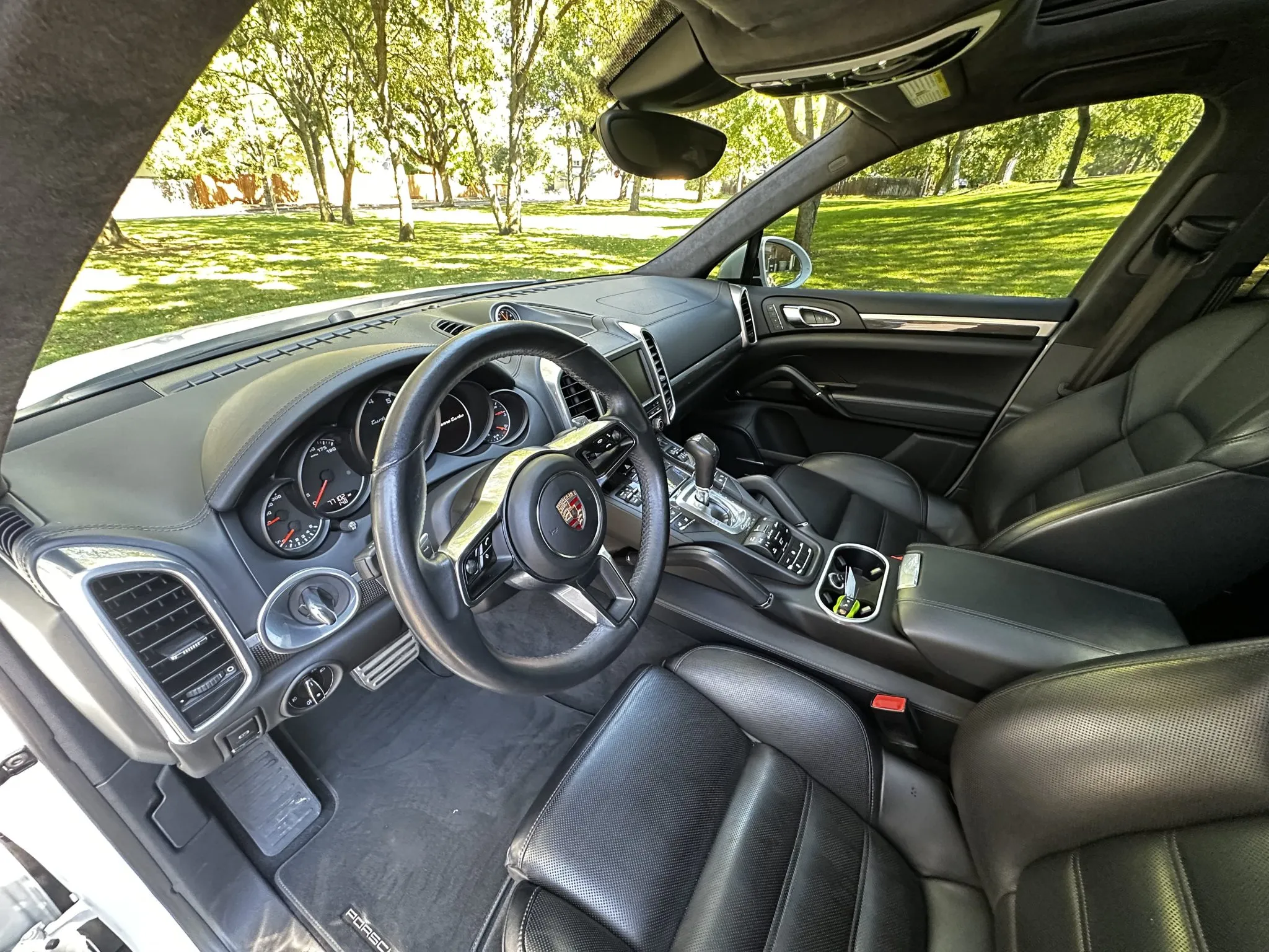 This 2015 Porsche Cayenne Turbo has 77k miles following registration history in California and Washington since new, and it was specified in Carrara White Metallic over Black leather.