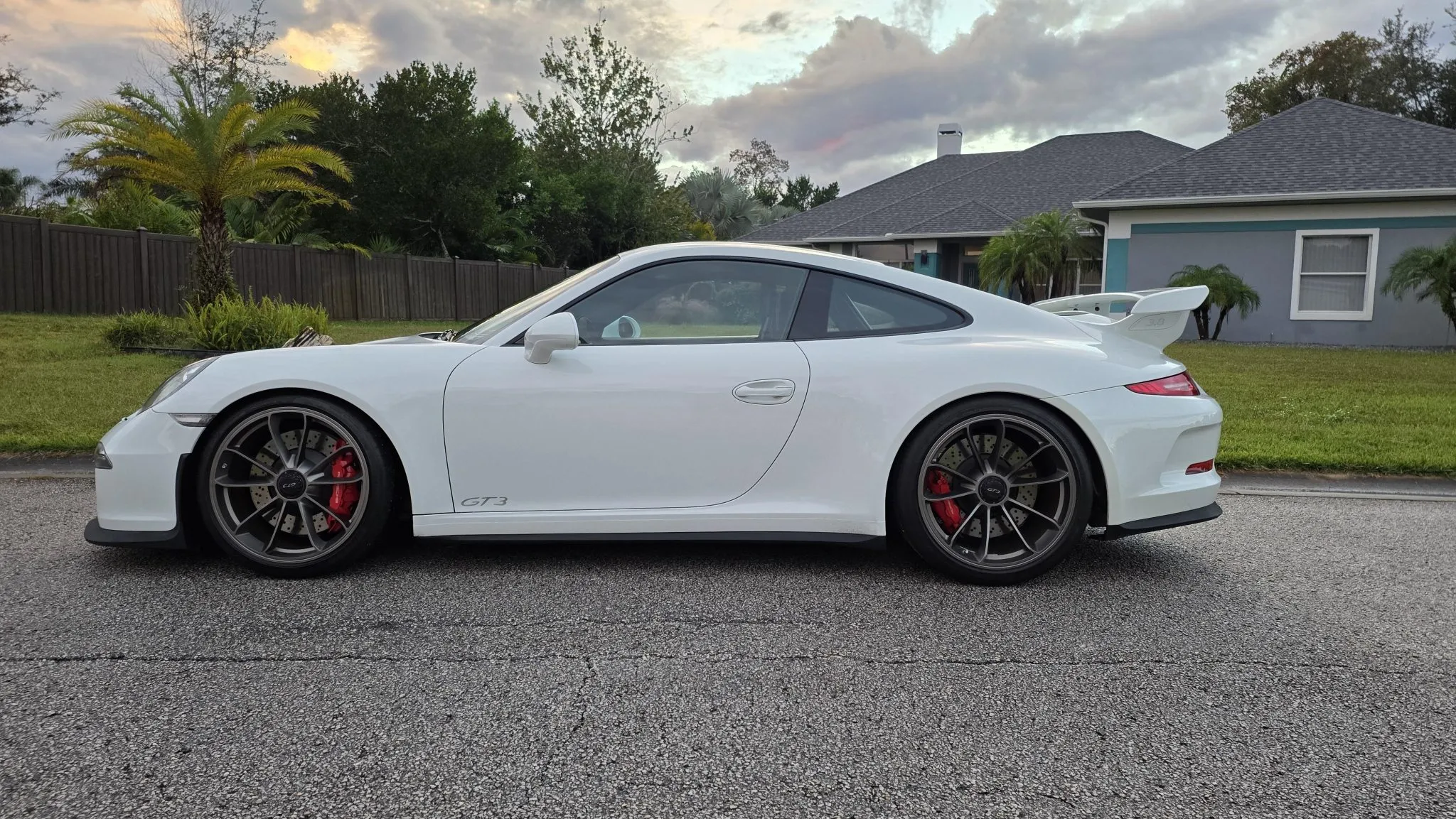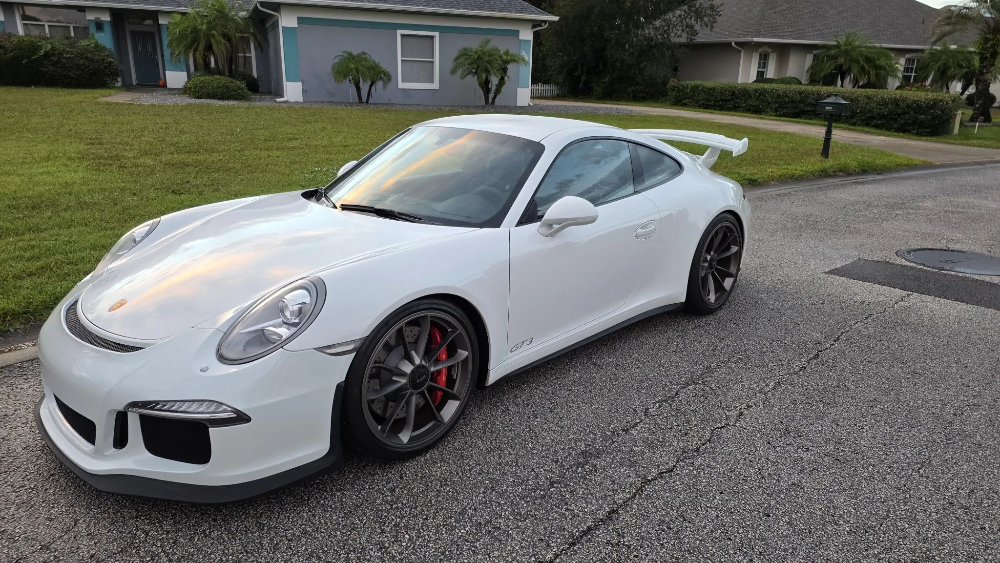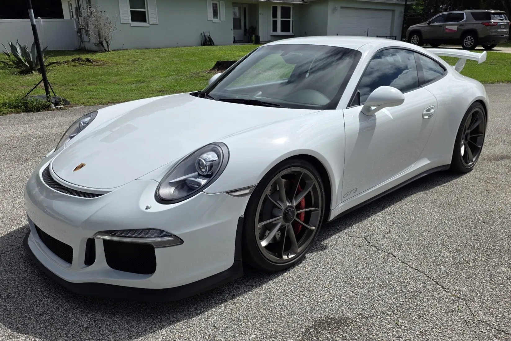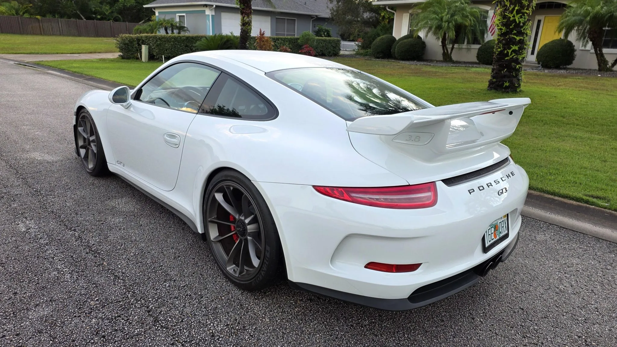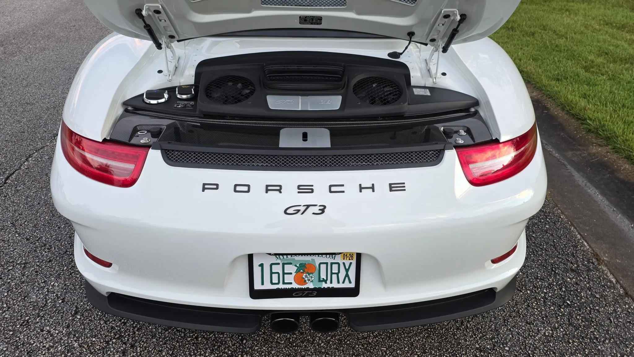 This 991.1 GT3 was purchased by the seller in 2025 and is now offered with the engine replacement invoice, a clean Carfax report, and a Florida title.