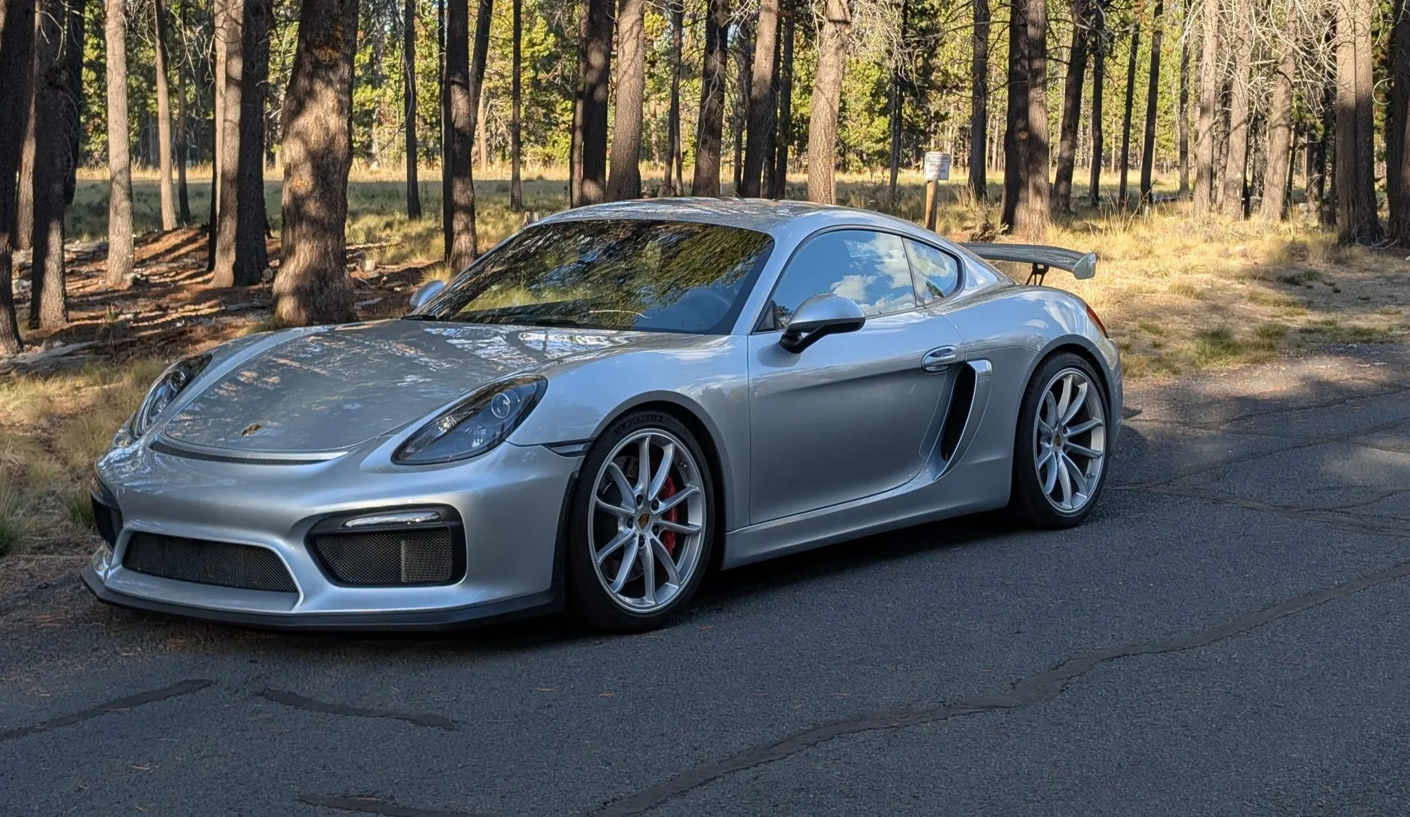This 981 Cayman GT4 is now offered with a window sticker, the owner’s manual, service records, spare parts, and a clean Oregon title in the seller’s name.