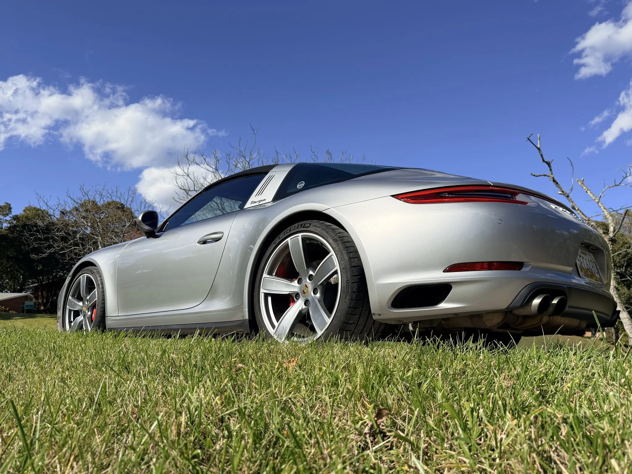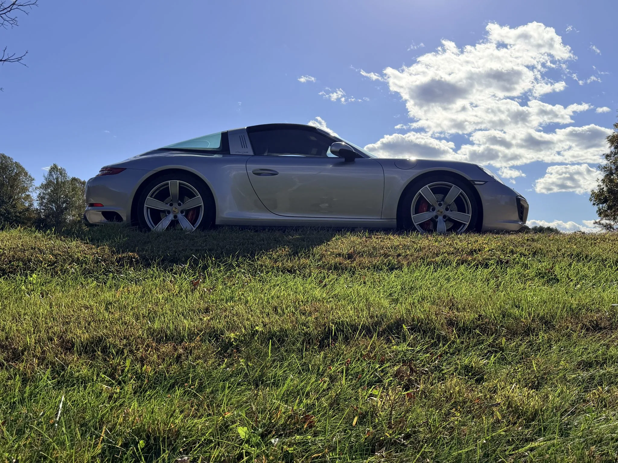 This 2017 Porsche 911 Targa 4S has 27k miles following registration history in Maryland, and it was optioned from the factory with the Sport Chrono Package and the Premium Package Plus. It is powered by a twin-turbocharged 3.0L flat-six that drives all four wheels through a seven-speed PDK dual-clutch transaxle and is finished in GT Silver Metallic over black leather upholstery.