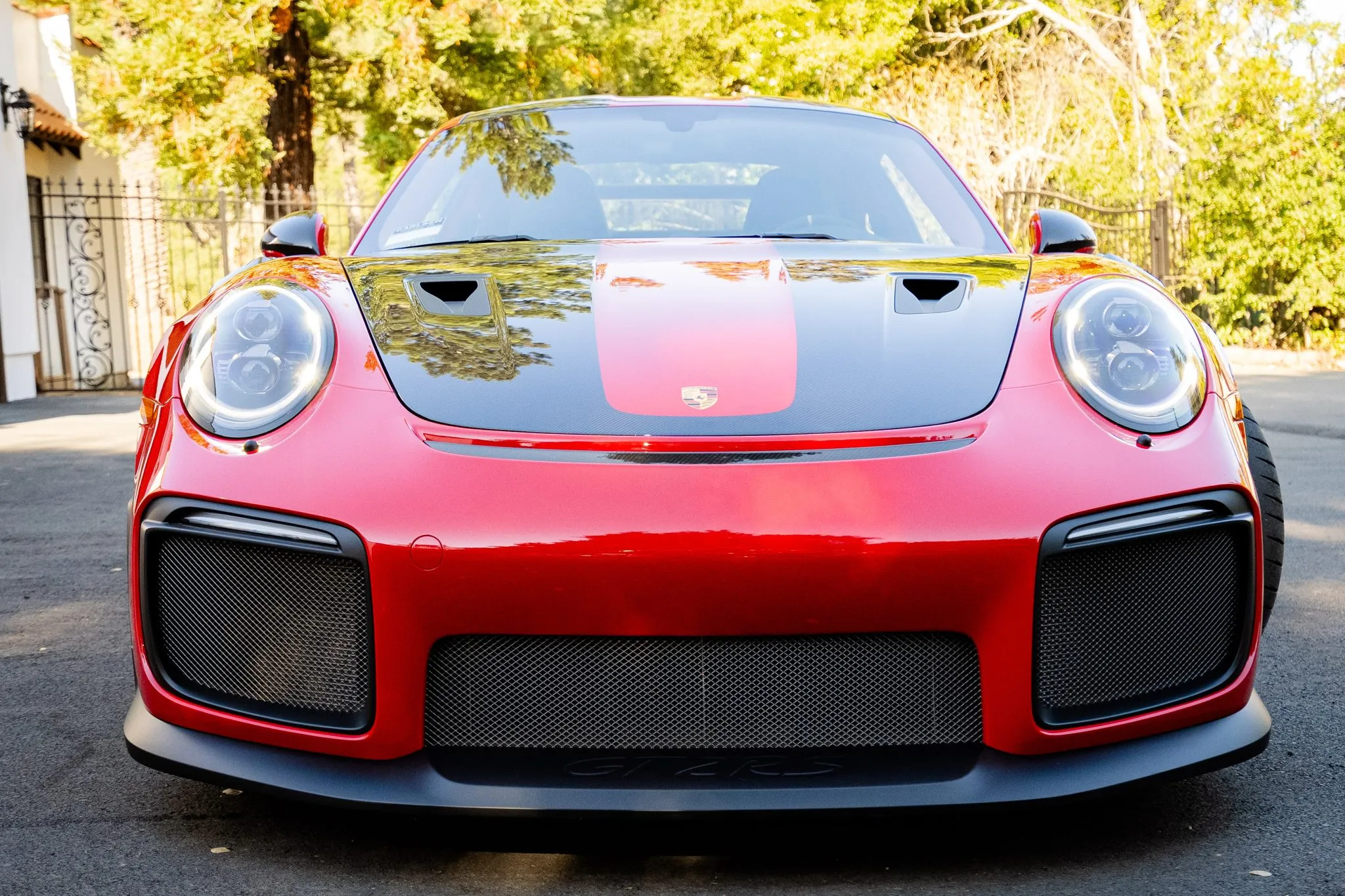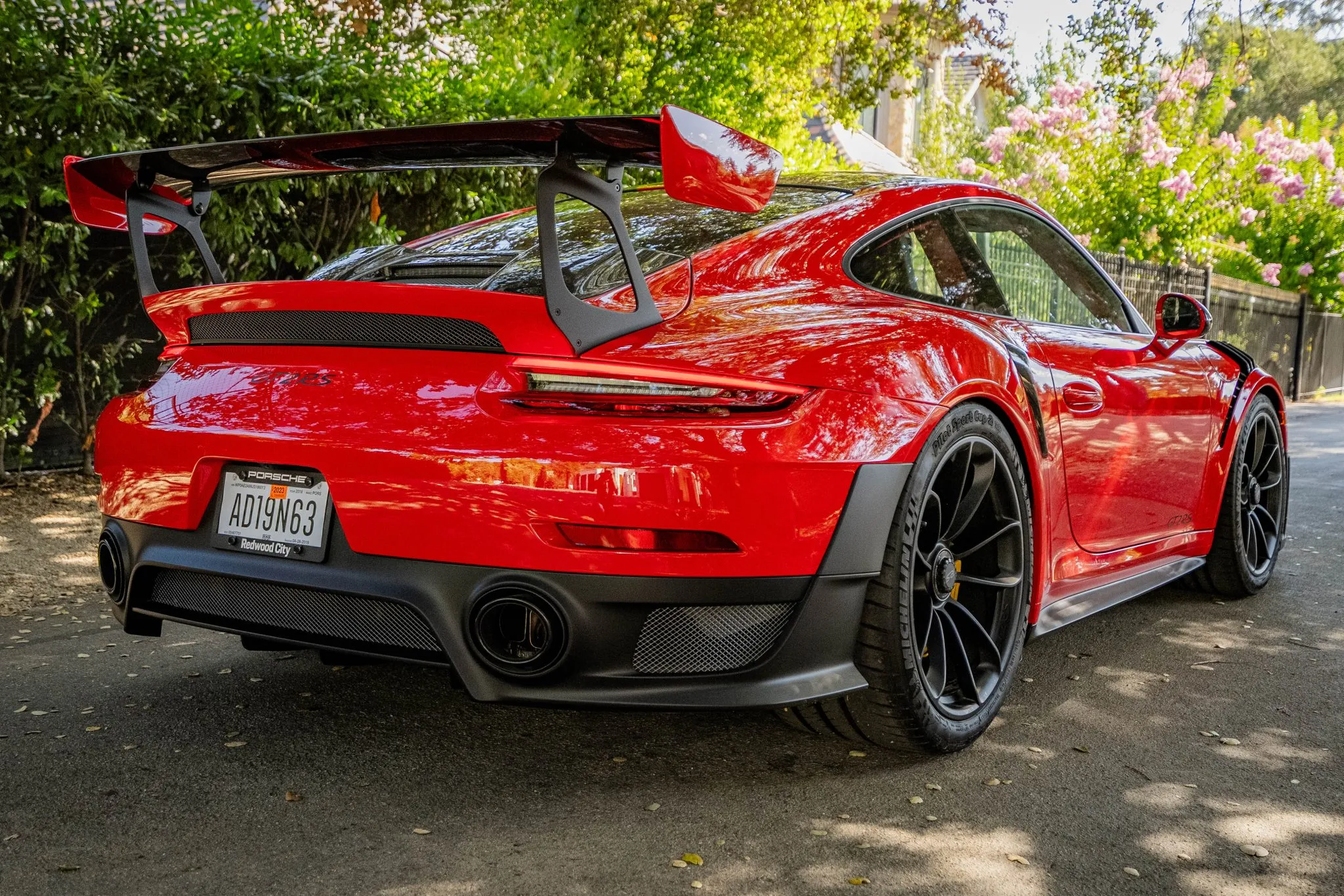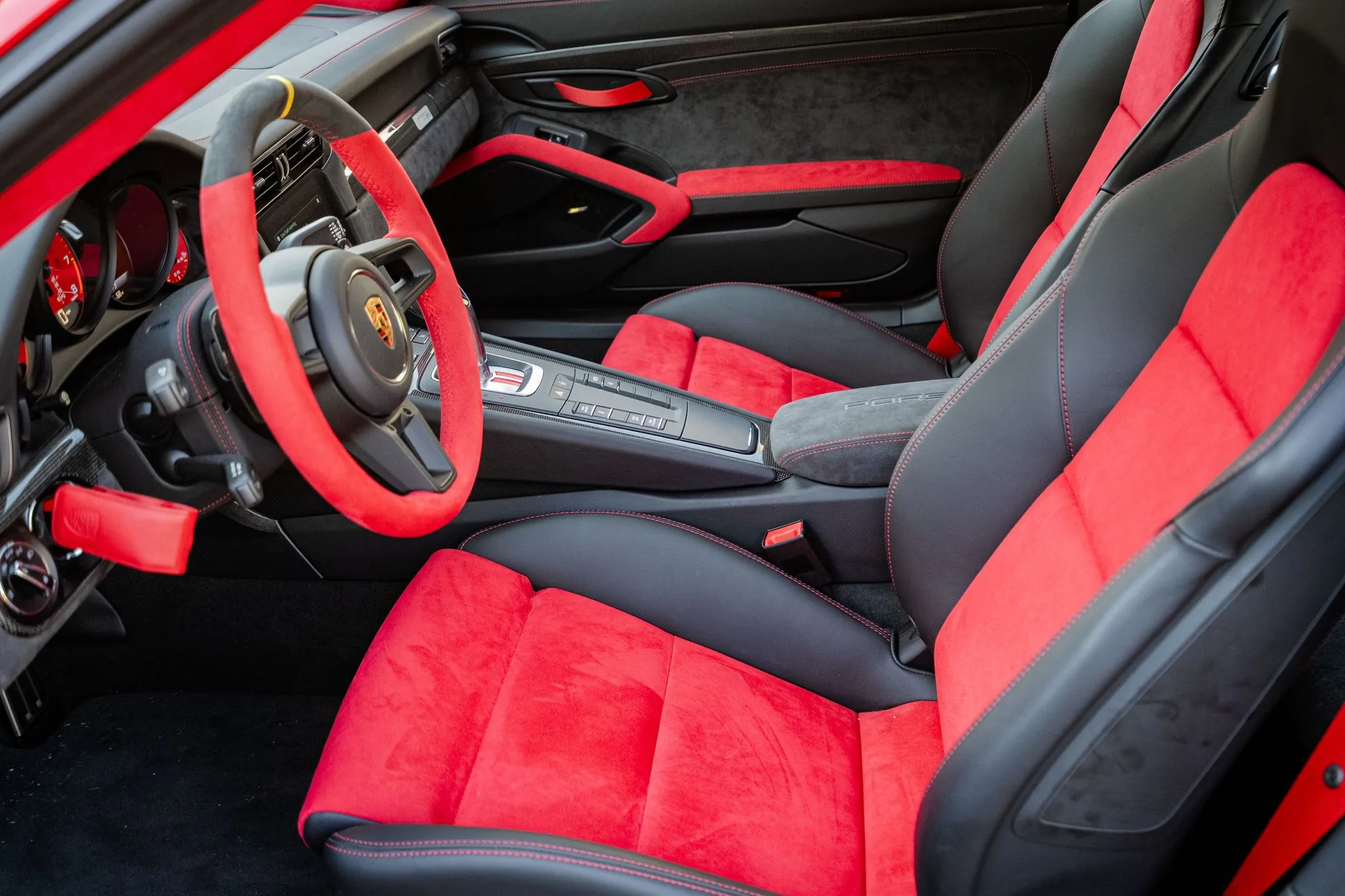This 2018 Porsche 911 GT2 RS is finished in Guards Red over Black leather and Red Alcantara and was purchased new by the seller.