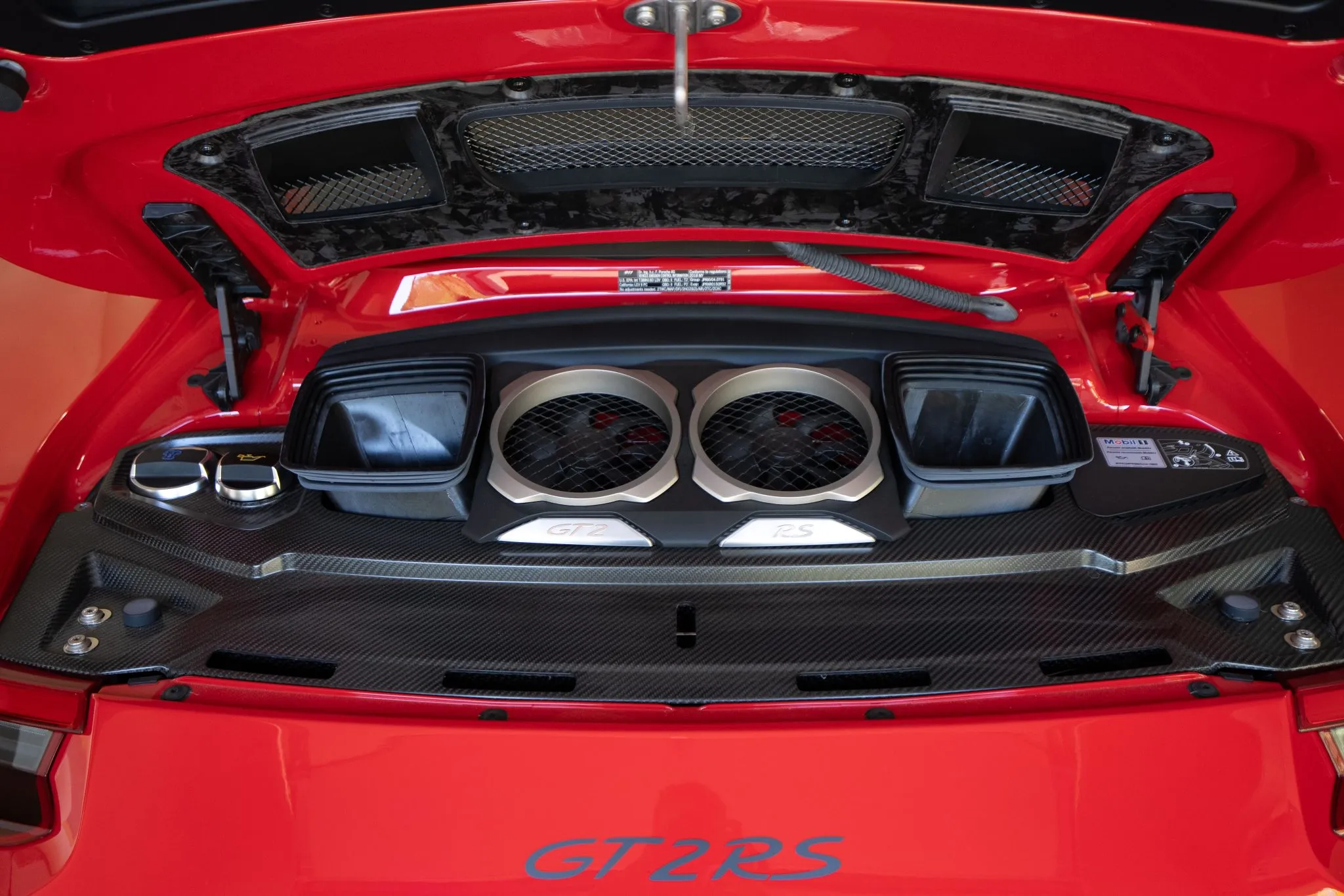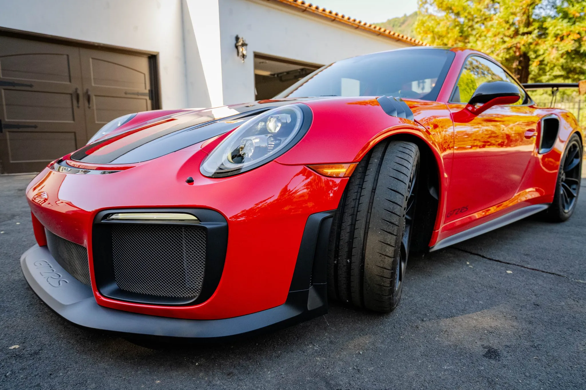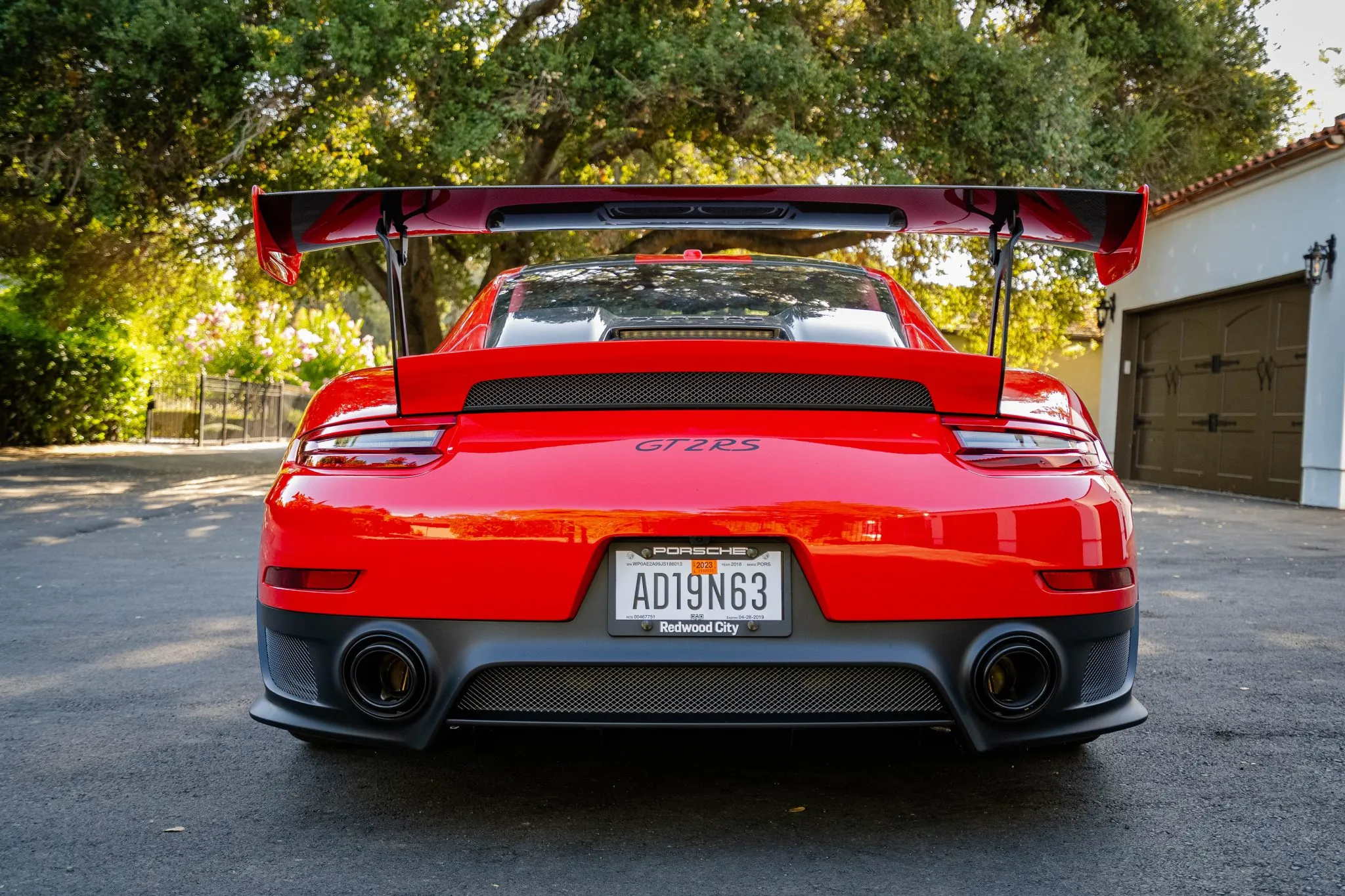 This 2018 Porsche 911 GT2 RS is finished in Guards Red over Black leather and Red Alcantara and was purchased new by the seller.