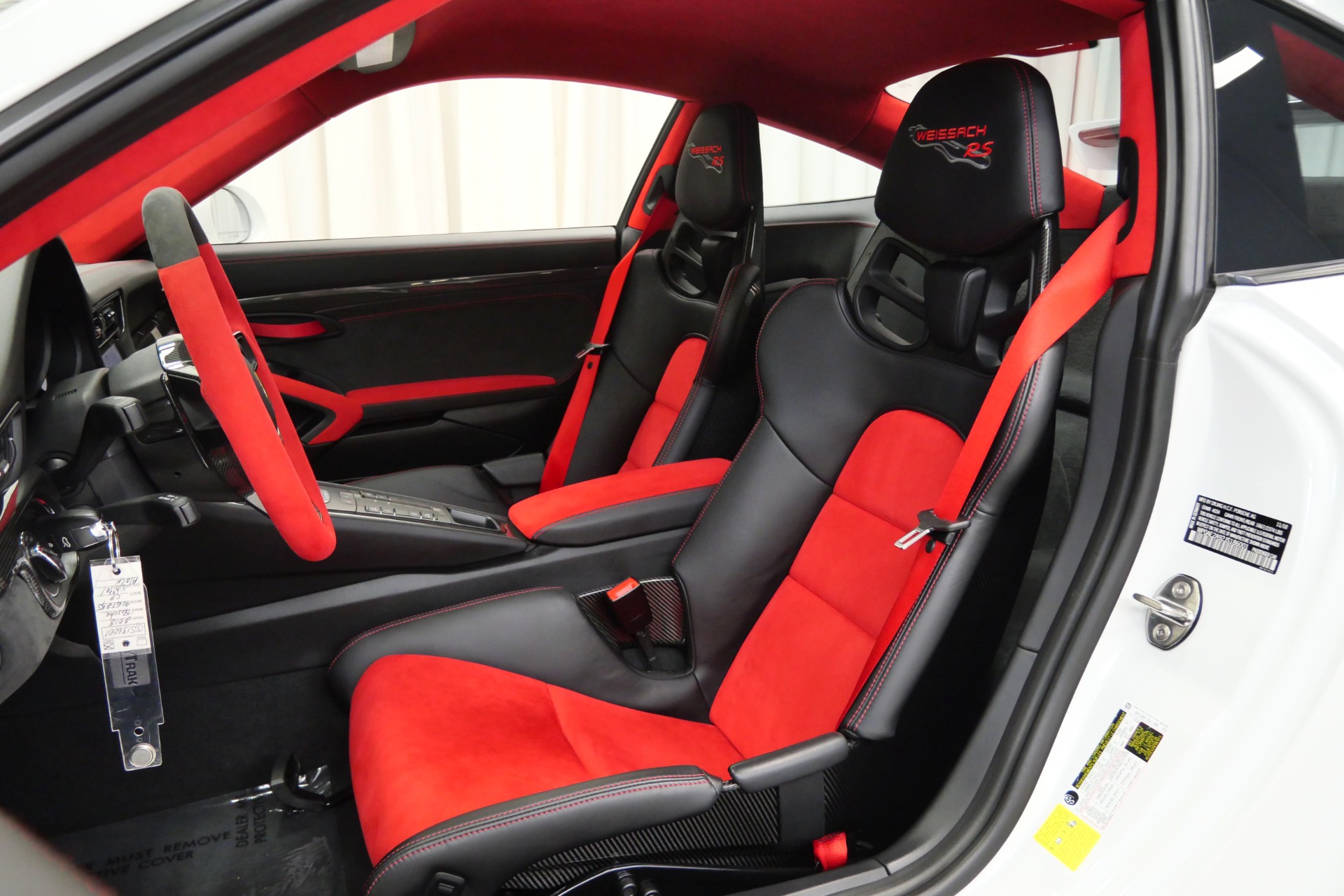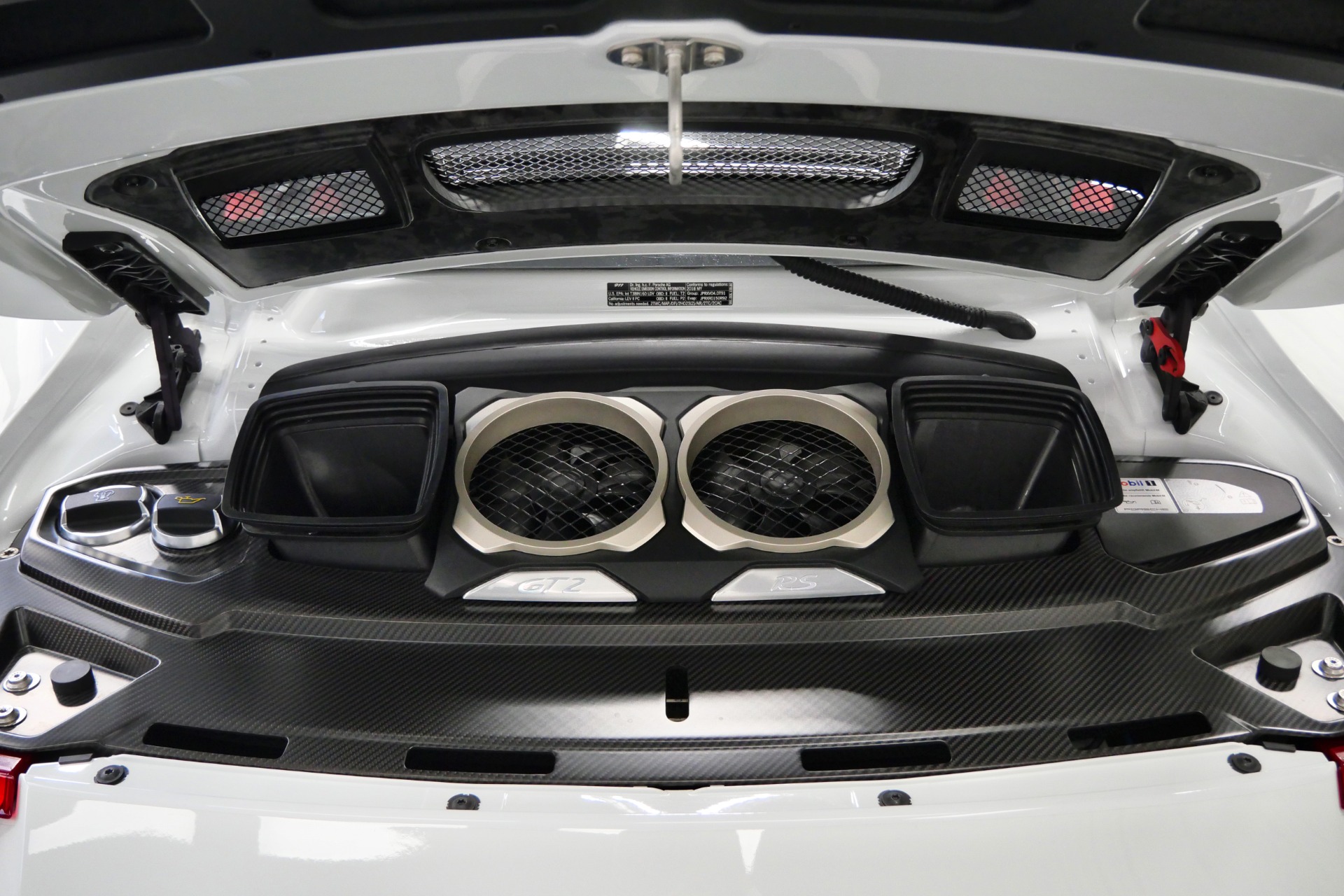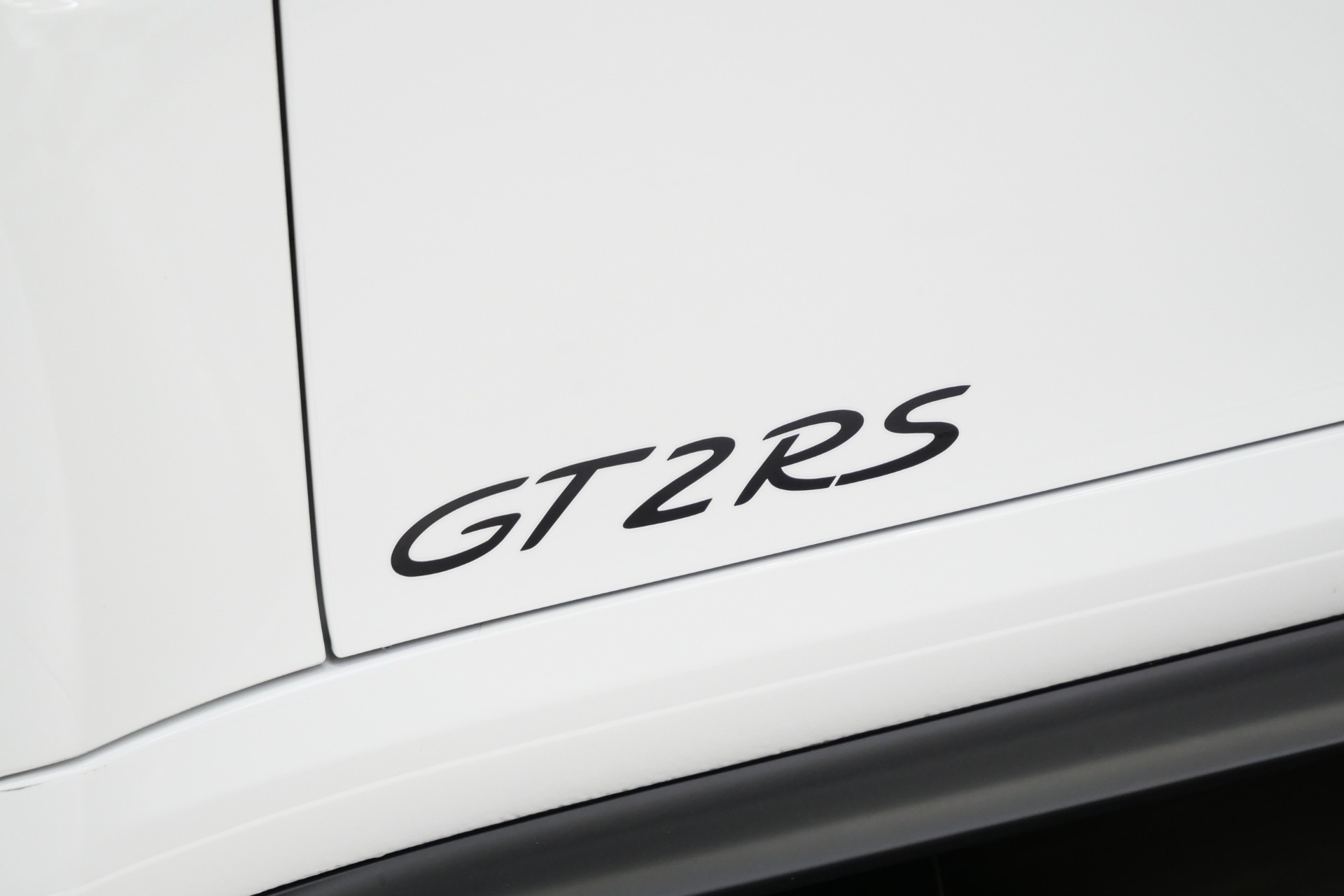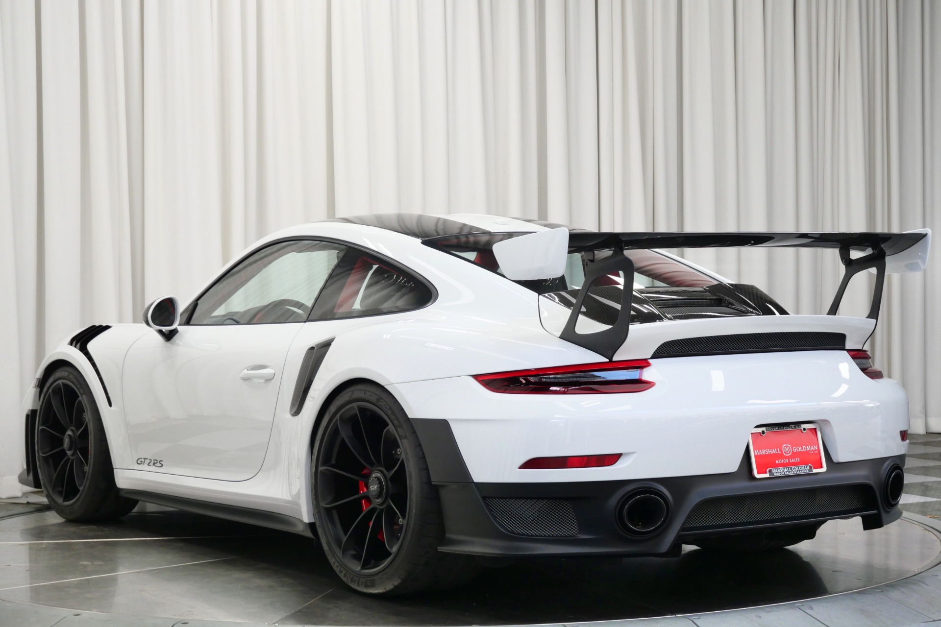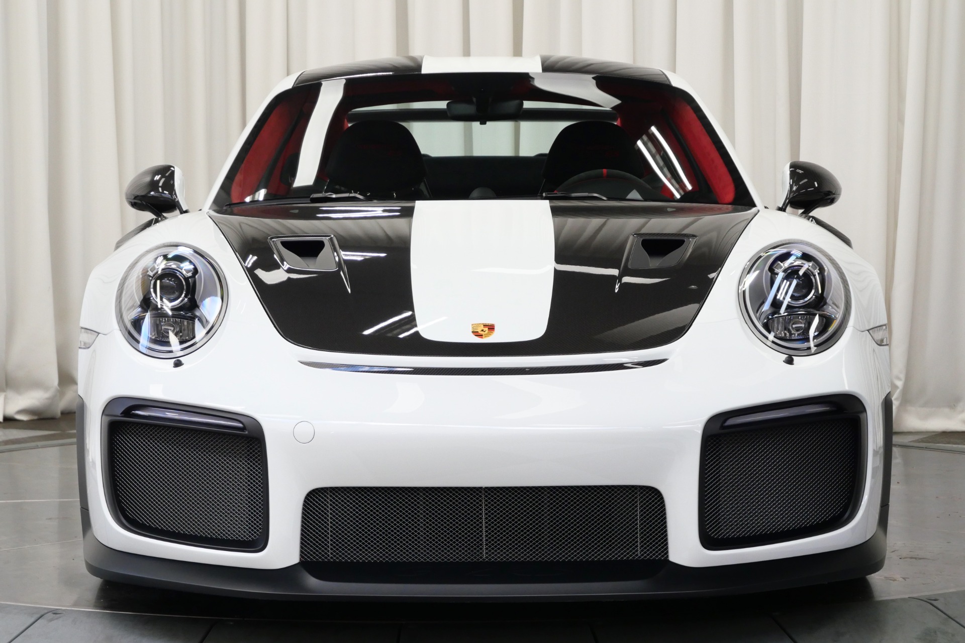 2018 Porsche 911 GT2 RS in White with Black leather interior and only 1,450 miles. This GT2 RS is loaded with: 3.8 Liter twin turbo flat six with 700 horsepower, 7 speed PDK transmission, 20/21 inch wheels in satin black, carbon ceramic brakes, Weissach package, front axle lift, carbon fiber mirror housings, mirror bases in high gloss black, headlight washers in gloss black, door handles in gloss black, window triangles in carbon fiber, leather interior in Black with Black and Red Alcantara, Porsche PCM with navigation, carbon fiber bucket seats, Bose audio system, seat belts in Guards Red, Sport Chrono package, Sport Chrono face in white, instrument dials in white, illuminated carbon fiber sill plates, steering wheel with red 12 o’clock marker, carbon fiber floor mats, battery charger and much more.