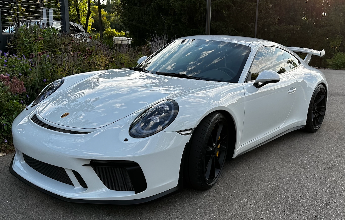 This 2018 Porsche 911 GT3 has 8k miles and was purchased by the seller as a Porsche Certified Pre-Owned vehicle in 2023, and it is powered by a 4.0-liter flat-six paired with a seven-speed PDK dual-clutch transaxle.