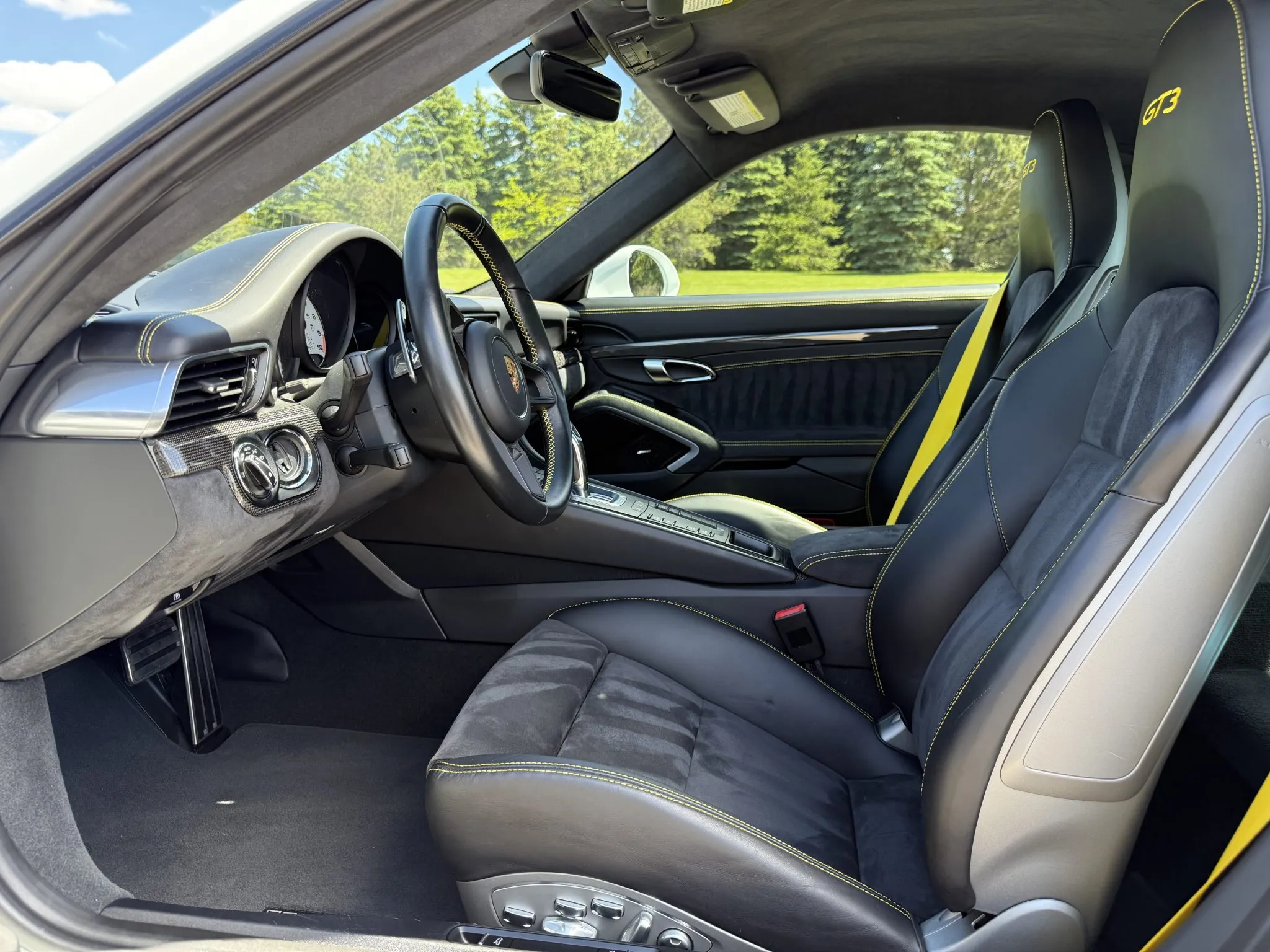 This 991.2 GT3 is now offered with a window sticker, the owner’s manual, service records, a car cover, two body-color key fobs, a clean Carfax report, and a Michigan title in the seller’s name.