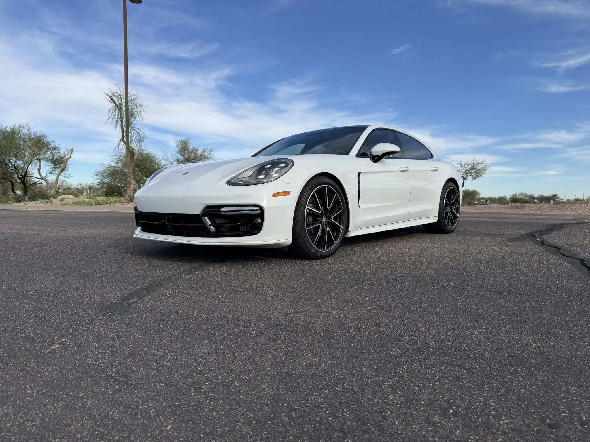 This 2018 Porsche Panamera 4S is powered by a twin-turbocharged 2.9-liter V6 that drives all four wheels through an eight-speed PDK dual-clutch automatic transmission and is finished in white over Chalk leather.