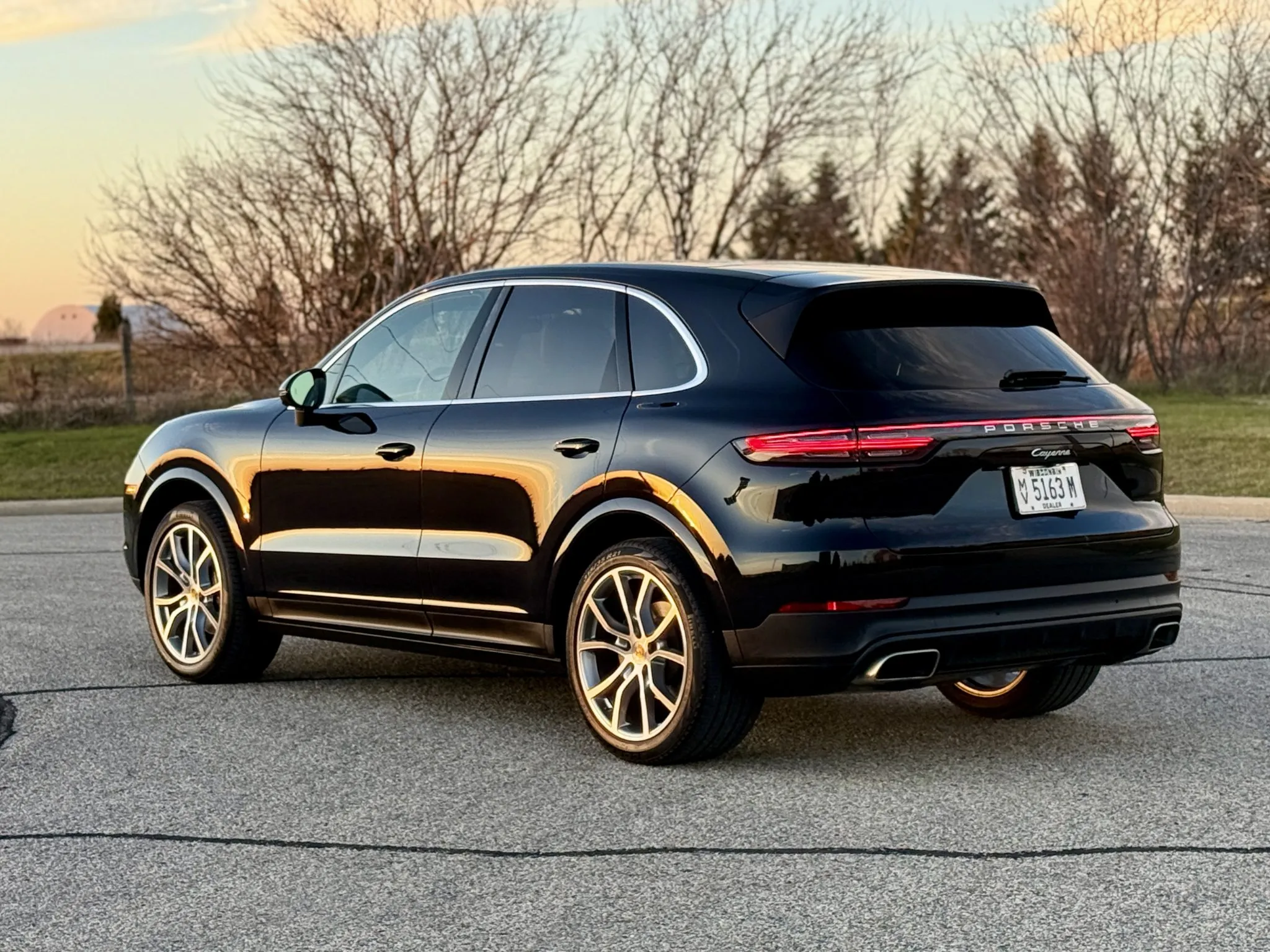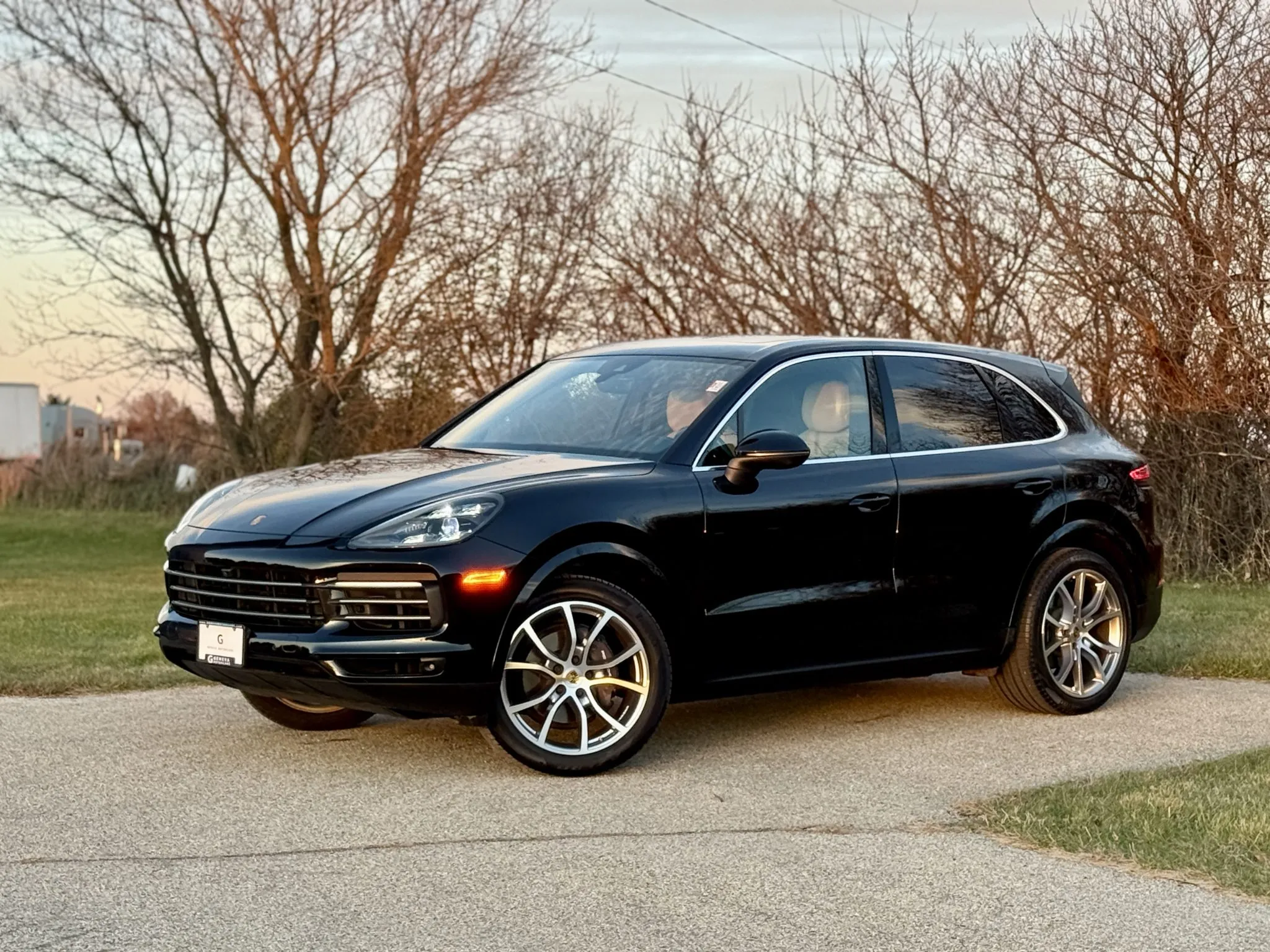 The truck is further equipped with 21″ Cayenne Exclusive Design alloy wheels, a panoramic sunroof, LED-Matrix Design headlights with PDLS+, ParkAssist, a surround-view camera, Night Vision Assist, a head-up display, heated and ventilated power-adjustable front seats, heated rear seats, Power Steering Plus, a Bose sound system, four-zone automatic climate control, Lane Change Assist, and touchscreen infotainment with navigation.