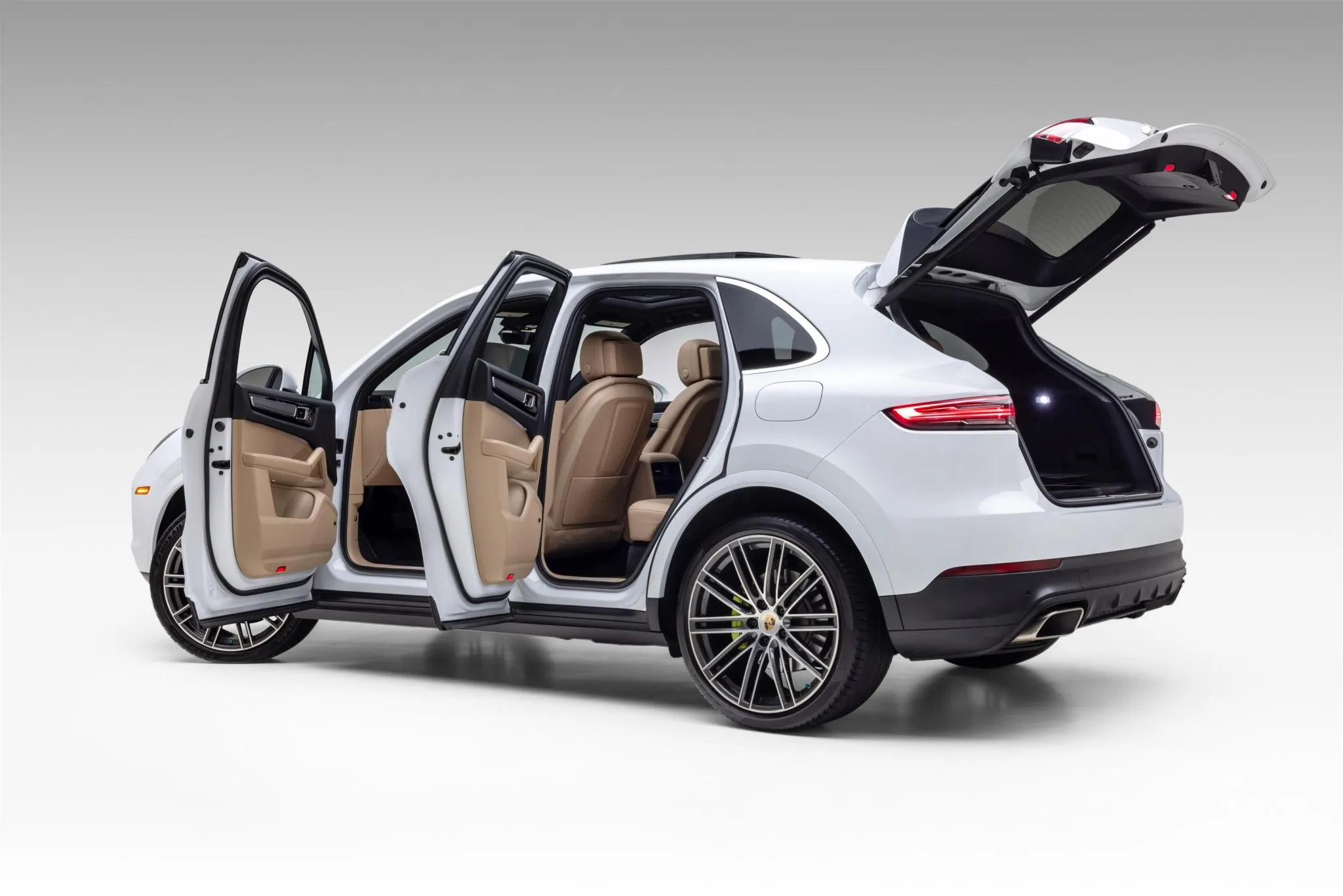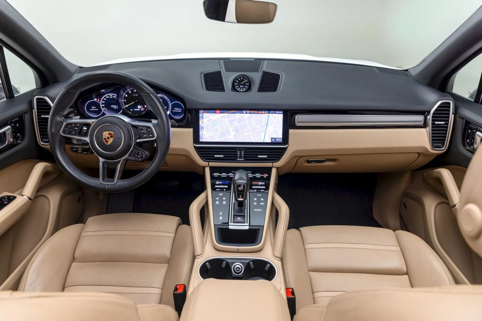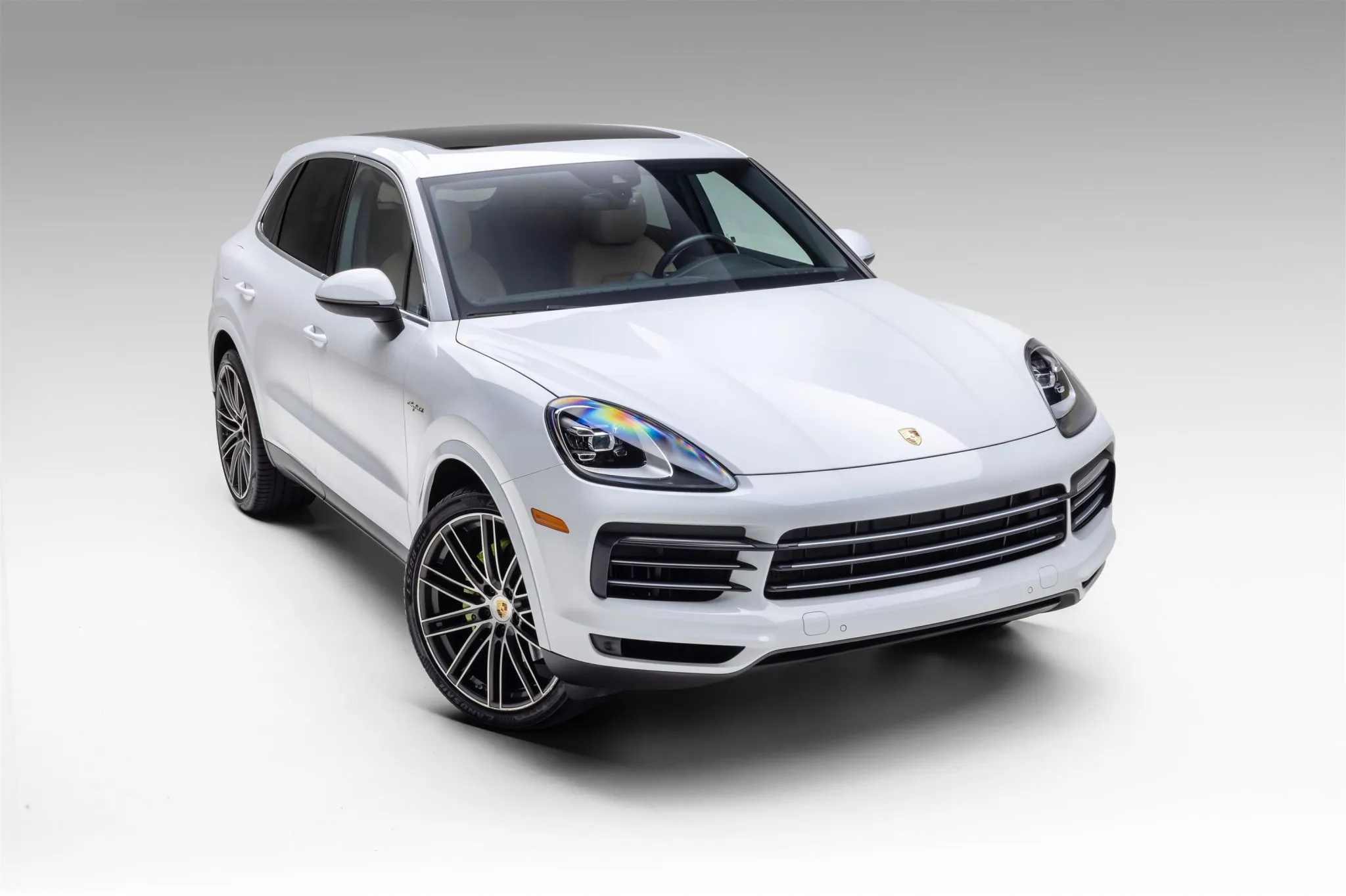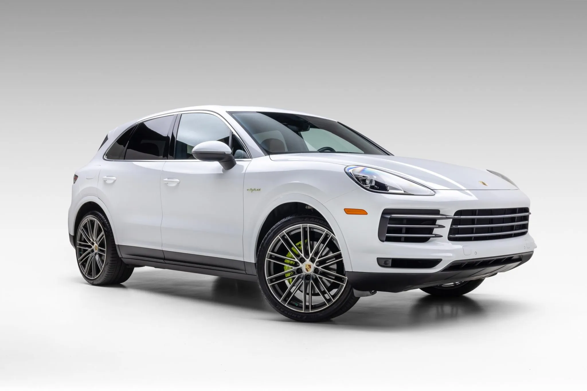 This 2019 Porsche Cayenne E-Hybrid has 49k miles following history in Louisiana, Georgia, and California, and is finished in Carrara White Metallic over Mojave Beige leather. Power is provided by a turbocharged 3.0-liter V6 with an electric motor that drives all four wheels through an eight-speed automatic transmission.