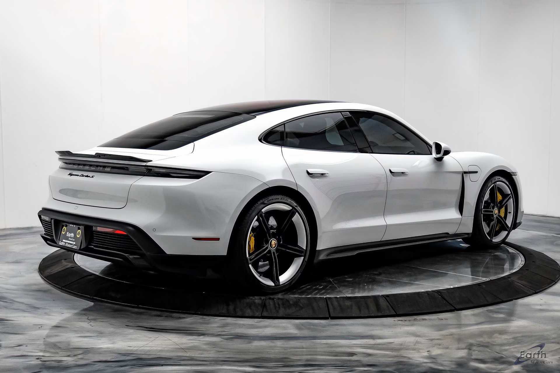Earth MotorCars is Proud to offer this amazing: 2020 Porsche Taycan Turbo S Pano Roof Mobile Charger Connect $189k MSRP! 25 Ft Charging Cable, 4-Wheel Disc Brakes, ABS brakes, Adaptive suspension, Air Conditioning, Apple CarPlay, Audio memory, Auto High-beam Headlights, Auto tilt-away steering wheel, Auto-dimming door mirrors, Auto-dimming Rear-View mirror, Automatic temperature control, Bumpers: body-color, Compass, Driver vanity mirror, Dual front impact airbags, Dual front side impact airbags, Exterior Parking Camera Rear, Fixed Panoramic Roof in Glass, Four wheel independent suspension, Front anti-roll bar, Front Bucket Seats, Front Center Armrest, Heated door mirrors, Illuminated entry, Knee airbag, Low tire pressure warning, Mobile Charger Connect, On-Board 150 kW/400V DC Charger, Outside temperature display, Overhead console, Passenger vanity mirror, Race-Tex Seat Trim, Radio data system, Rain sensing wipers, Rear window defroster, Remote keyless entry, Security system, Speed control, Speed-sensing steering, Spoiler, Sport steering wheel, Steering wheel memory, Steering wheel mounted audio controls, Traction control, Wheels: 21″ Mission E Design.
