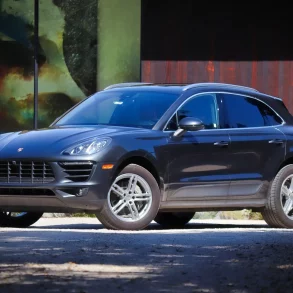 Inside, the cabin is appointed with Slate Grey and Chalk leather upholstery paired with Paldao wood trim inlays, Chalk seatbelts, and Porsche-crested headrests. Amenities include 14-way Power Seats with the Memory Package, a heated steering wheel, aluminum gear selector, Surround View, Ambient Lighting, BOSE Surround Sound, Lane Change Assist (LCA), and ventilated front seats.