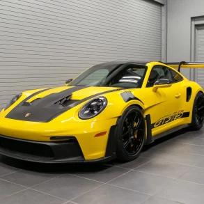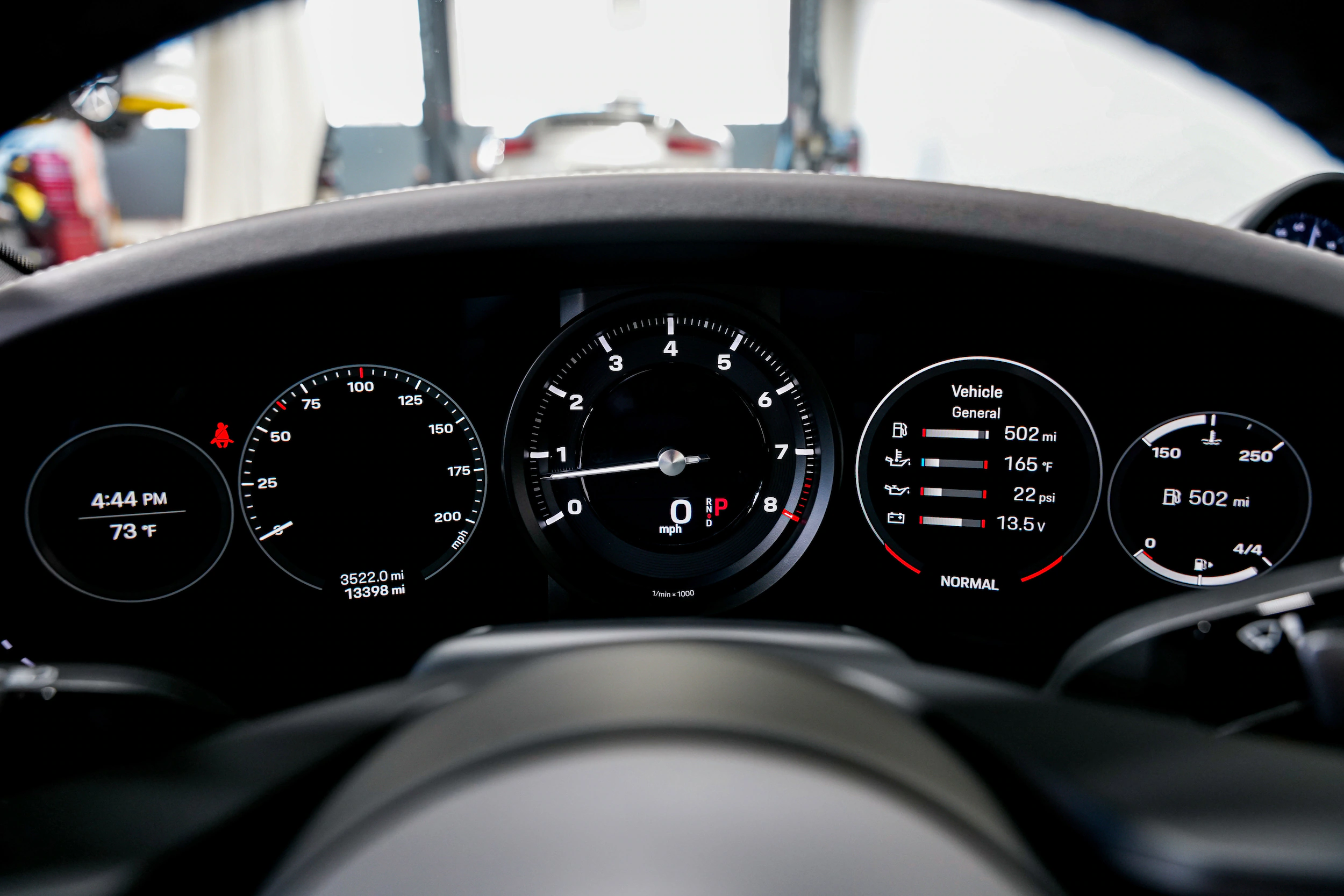 Optioned extensively, this example features Rear Axle Steering, the Sport Package with a Sport Exhaust System and PASM Sport Suspension lowered by 10mm, the Front Axle Lift System, Porsche InnoDrive with Adaptive Cruise Control (ACC) and Active Lane Keep (ALK), the Premium Package, and an electric slide/tilt sunroof. It rides on factory staggered 20″/21″ Carrera S wheels in silver with colored Porsche-crest center caps and Pirelli P Zero tires.