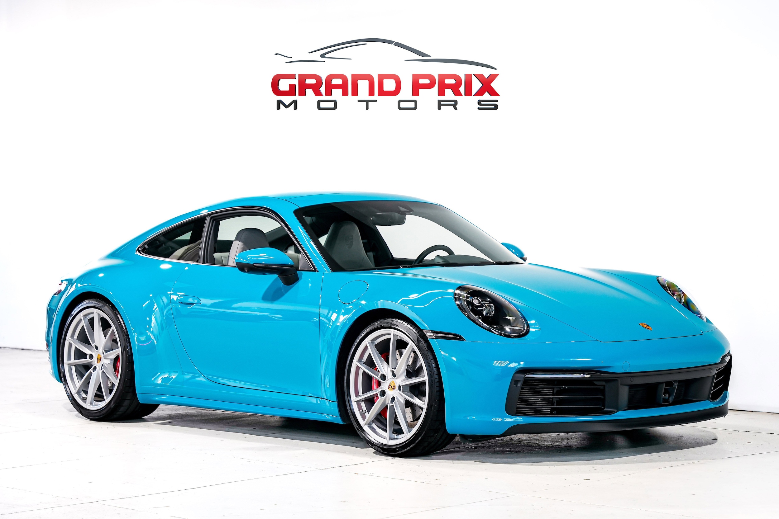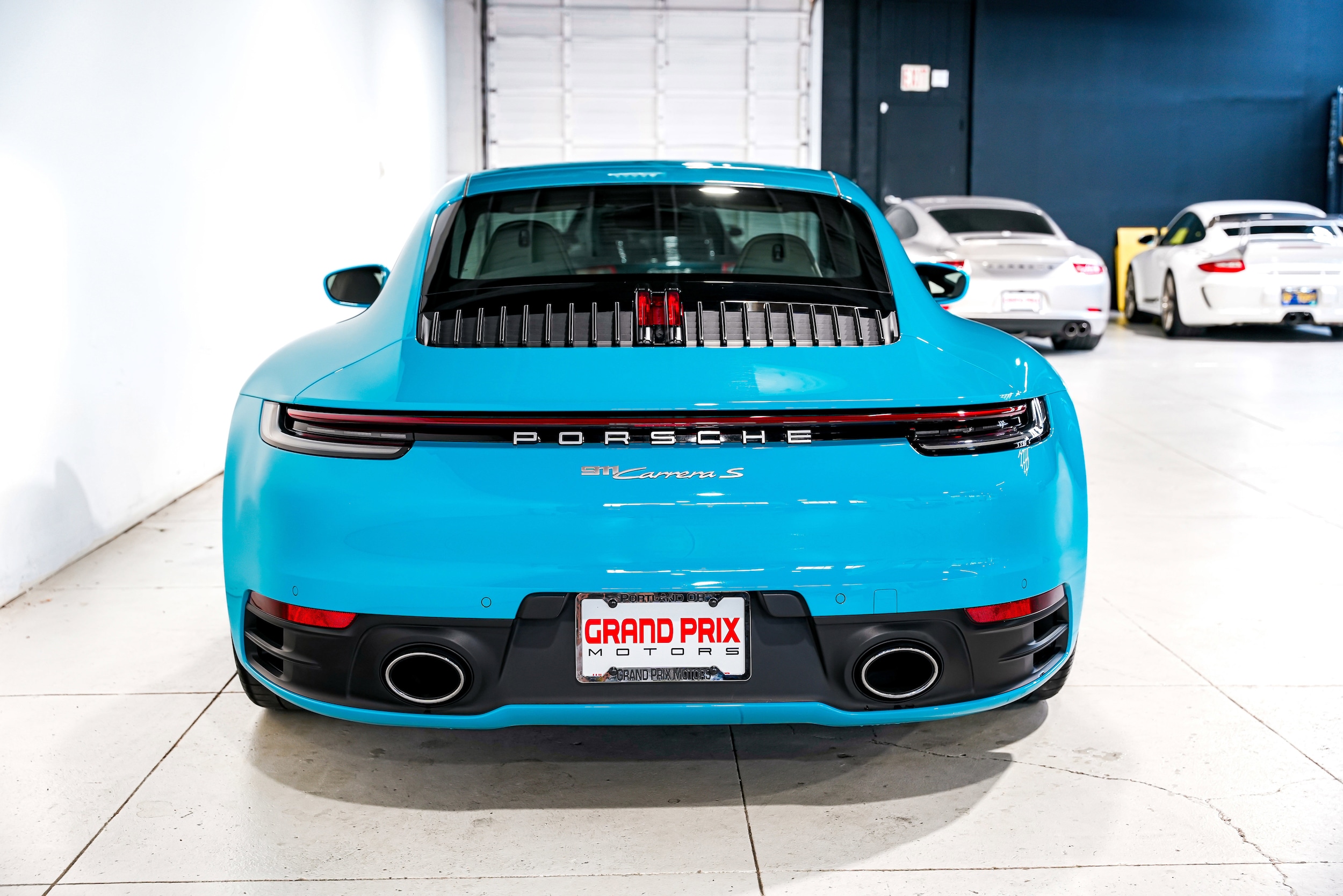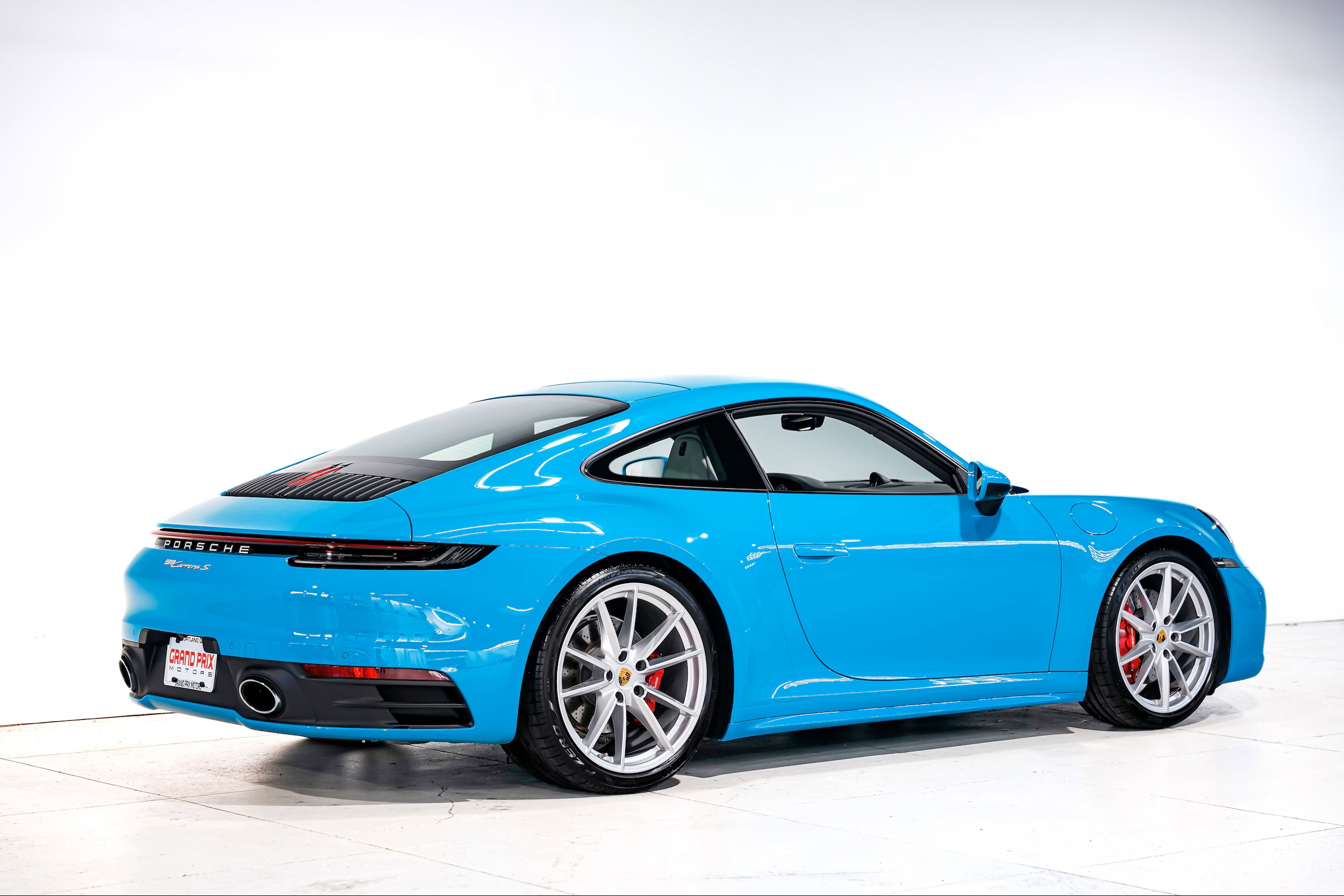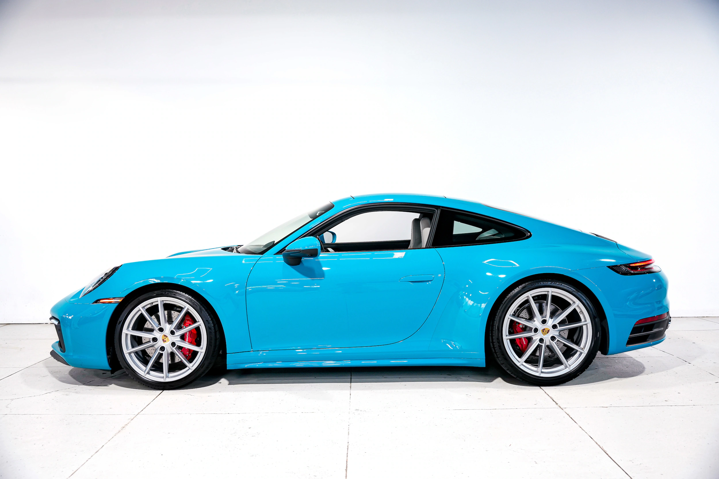 This 2021 Porsche 911 Carrera S Coupe comes finished in Miami Blue over Slate Grey and Chalk leather upholstery and is powered by a twin-turbocharged 3.0-liter flat-six producing 444 HP and 391 lb-ft of torque. Power is delivered to the rear wheels through an 8-speed Porsche Doppelkupplung (PDK) transmission.