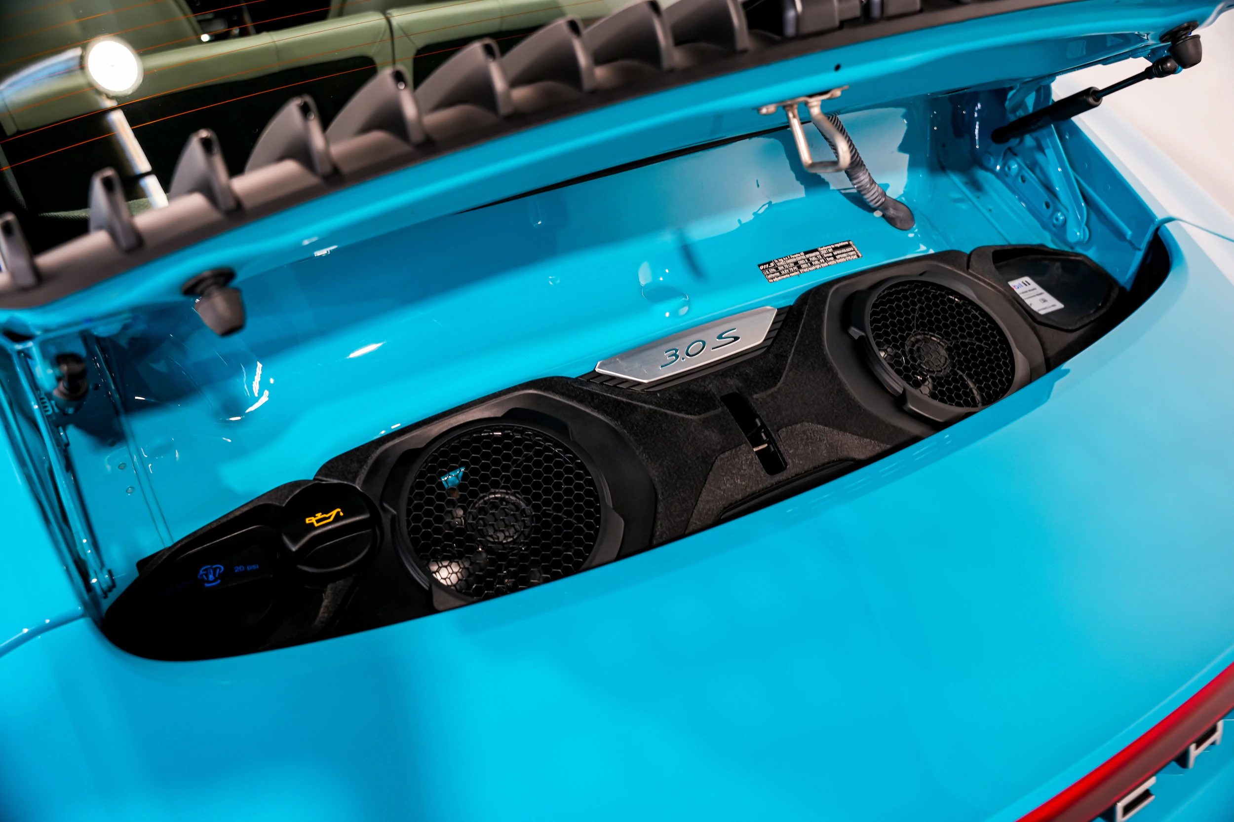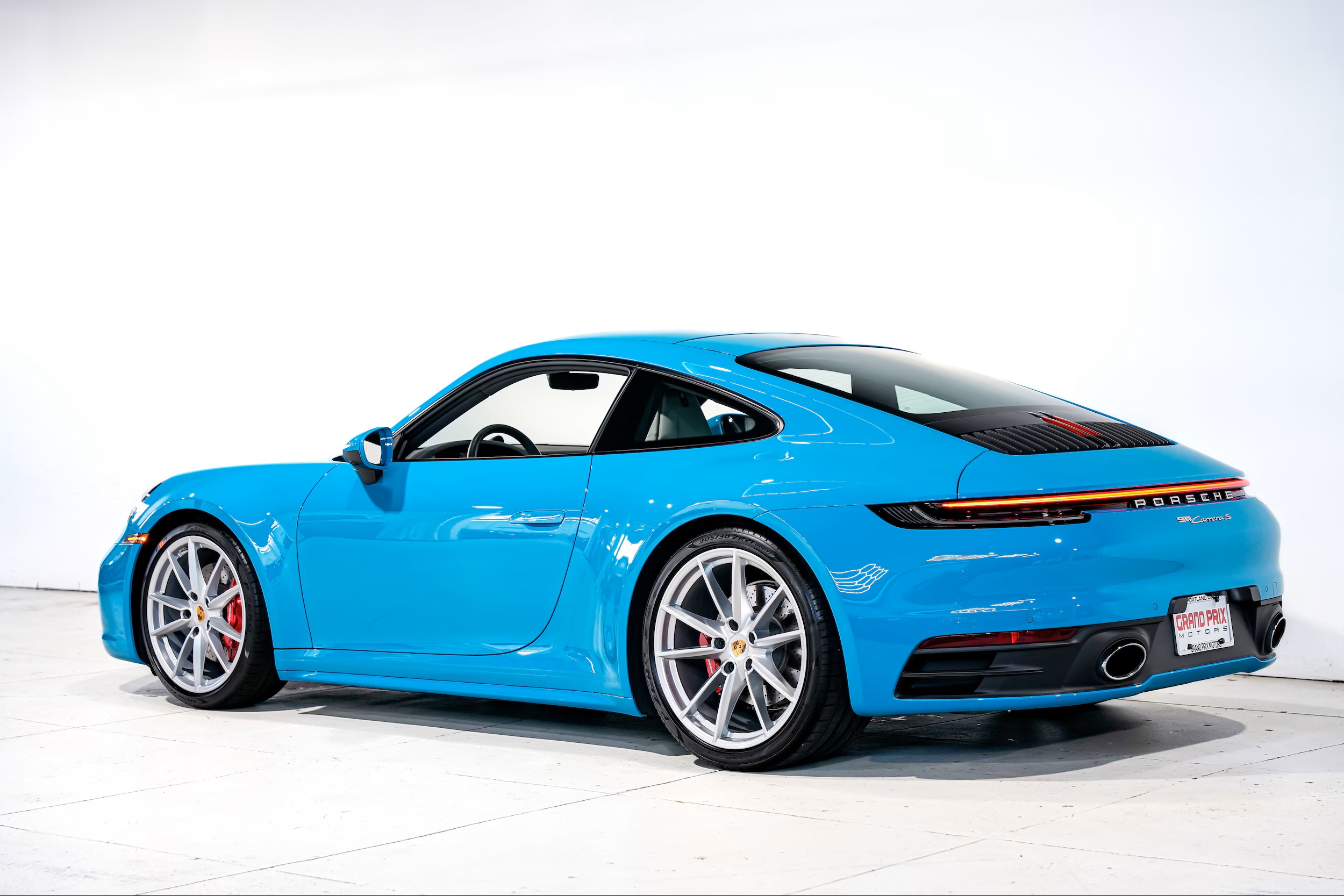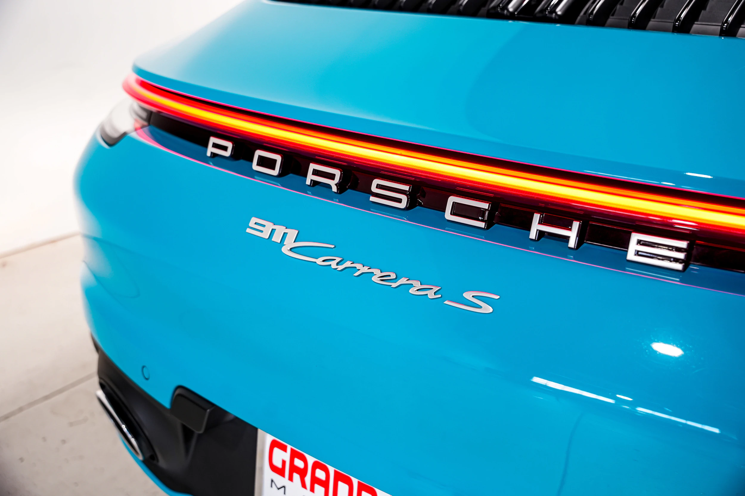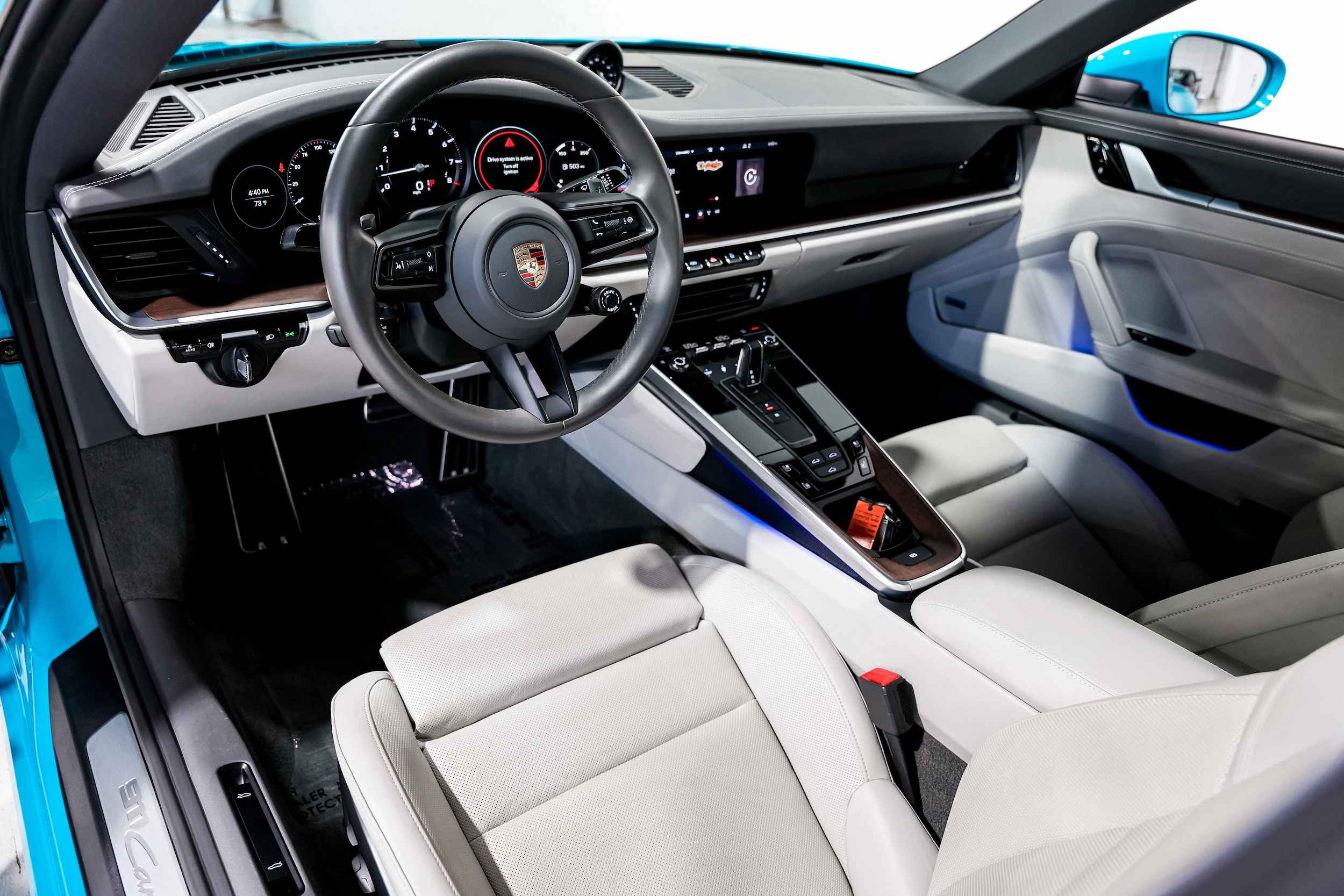 This 2021 Porsche 911 Carrera S Coupe comes finished in Miami Blue over Slate Grey and Chalk leather upholstery and is powered by a twin-turbocharged 3.0-liter flat-six producing 444 HP and 391 lb-ft of torque. Power is delivered to the rear wheels through an 8-speed Porsche Doppelkupplung (PDK) transmission.